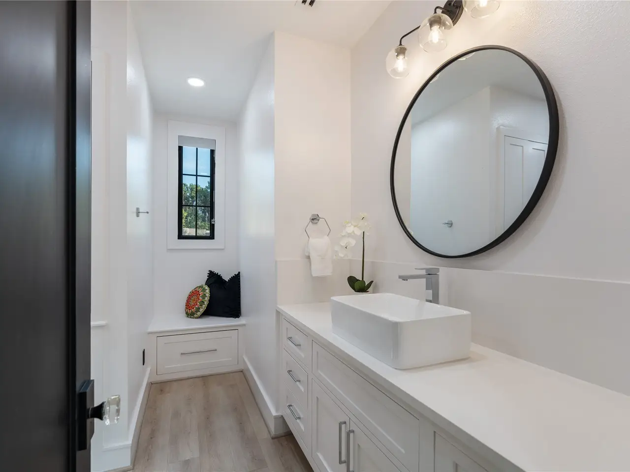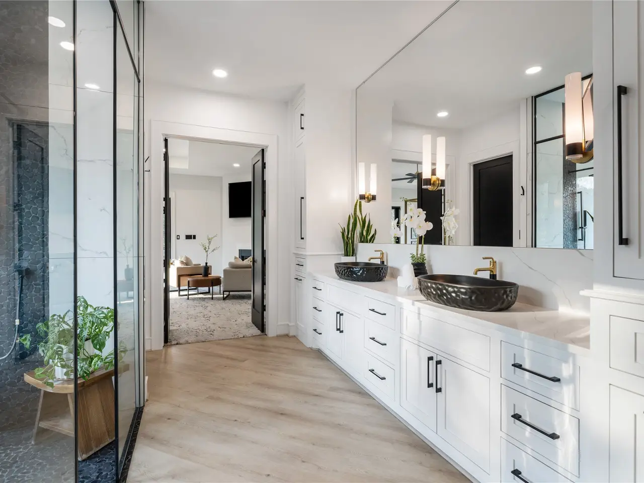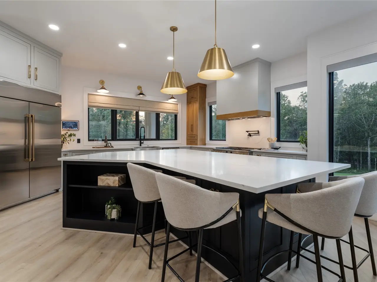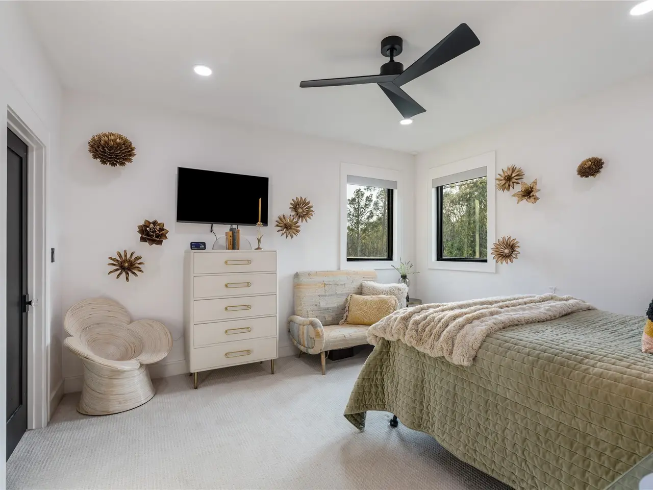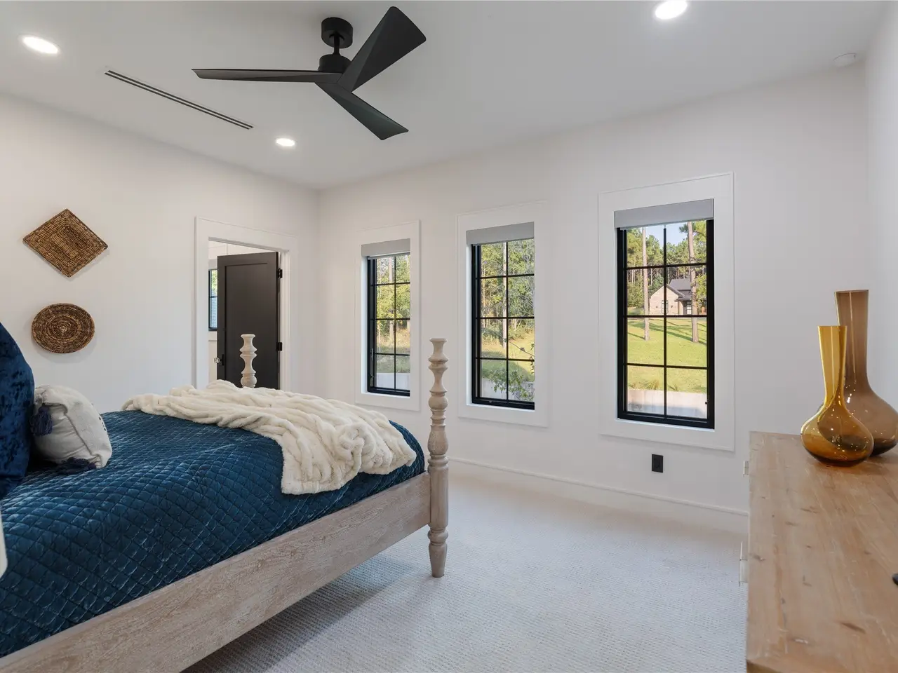 Step into a world of refined luxury, natural beauty, and architectural brilliance on 6.2 private, wooded acres. This custom estate welcomes you with an 11-ft glass pivot door, a dramatic chandelier, and soaring 26-ft ceilings. Floor-to-ceiling windows blur the line between indoors and out, offering breathtaking treetop views. The chef’s kitchen is a masterpiece—quartz countertops, Café commercial appliances, and a full butler’s pantry with ice maker and beverage fridge. The primary suite is your personal sanctuary, featuring a fireplace, a private wellness center, and disappearing glass doors that open to an infinity-edge pool. A sleek glass-partitioned office balances modern design with serenity. Enjoy a stocked pond, media room, two utility rooms, smart home technology, and a lighted custom staircase. Gas appliances, two private wells, and a whole-home water filtration system complete this extraordinary retreat. Every detail speaks luxury. Every moment feels like escape.