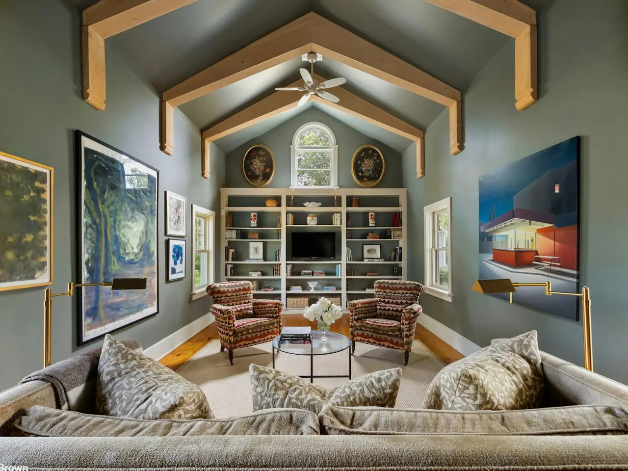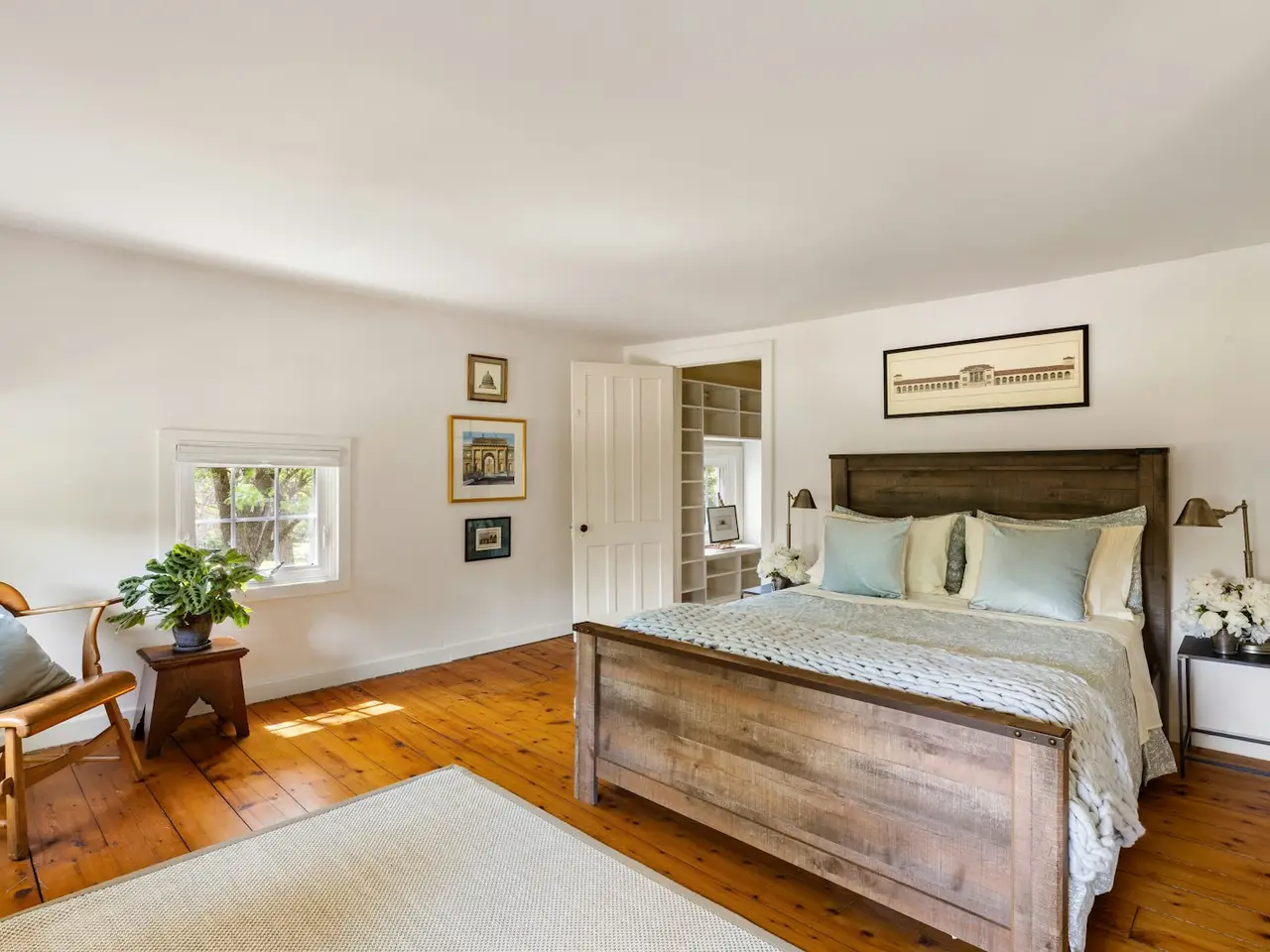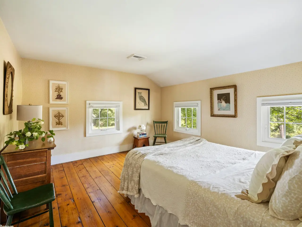 Hawkskill is a rare offering- a quintessential Hudson Valley farmhouse set far back off a country road amidst 40 serene acres and accessed by a long private tree lined driveway. In the front of the house, which stands on a rise framed out by stately trees, a bubbling brook winds its way through a meadow and off towards the Roeliff Jansen Kill. At the back of the house a large flagstone terrace -with lovely established plantings and millstone fountain- leads towards a gentle sloping lawn revealing an expansive and magical view out over a romantic eight acre private lake. The lake, meadows, stream and surrounding woods are rich with wildlife from turkey to deer, heron, owls and water birds of all kinds not to mention turtles, fish and the occasional fox sighting. Hawkskill is referred to as a Livingston tenant house, one of four in the area built by the Livingston family in 1859 as gifts to some of their more valued tenant farmers. The English Crown granted a large patent of land to Robert Livingston in 1684. This land grant became known as Livingston Manor and made the family the controlling manorial family in southern Columbia County for generations. By the mid-19th century when Hawkskill was built, the manor system was fading after tenant revolts and American expansionism westward, making a handsome home on a large tract of land an appropriate gift to a valued worker. The heart of the original home remains, with a welcoming front porch, center hall construction, lovely new paned windows to let the light stream in and beautiful wide plank pine floor boards. Upstairs are three sun filled bedrooms and two bathrooms renovated in a classic style. Downstairs the living room, with a wood burning fireplace and French doors out to the terrace, opens into a dining area that flows into the open plan country kitchen- making for a wonderful entertaining floor. A recent renovation to the ground floor addition is lined with windows and boasts a soaring cathedral ceiling with architectural wood beams, built in bookcases and media center, plus a third full bathroom. This space is currently used as a library/den but could certainly serve as a fourth, ground floor bedroom as well. A secret door off of the dining room leads to a large, full basement with an ample ceiling height and housing the updated systems for the house that includes central air conditioning throughout. Additionally there is an original barn structure, which has been updated to create a three bay garage with electronically controlled doors downstairs and a stair built to the second floor, providing additional storage or the space to create a charming guesthouse. Hawkskill is a peaceful retreat surrounded by rolling farmland and open spaces. The property is just minutes away from all that is on offer in neighboring Red Hook, Tivoli or Germantown, and equidistant to the trains at Hudson or Rhinebeck for easy access in and out of Manhattan.