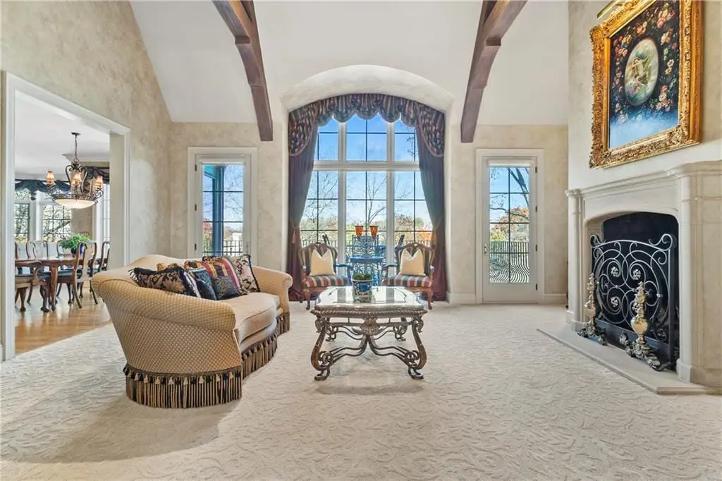 Stunning European-inspired home on Loch Lloyds iconic 18th hole. Located within the prestigious gated golf community, this elegantly appointed home offers panoramic views of the fairway and cascading waterfall. Just two doors down from the neighborhood pool and clubhouse and across the street from the driving range and brand new tennis/pickleball/fitness center unveiled summer 2025, this residence blends convenience, prestige, and resort-style living. From the moment you arrive, the storybook brick and stone faade accented by timeless European details sets the tone for what lies within. The grand two-story entry opens to a sophisticated sitting room w/ floor-to-ceiling windows framing golf course views. Architectural details aboundfrom solid core doors and intricate millwork to stained and leaded glass accents. Four unique fireplaces add warmth and character, including the dramatic vaulted living room with exposed wood trusses and a striking stone hearth. Designed for main-level living, the home offers a spacious primary suite w/ vaulted ceiling, marble floors, soaking tub, dual vanities, walk-in shower, and dual closets. Upstairs, a private suite w/ en suite bath and three walk-in closets provides ideal guest accommodations and seasonal storage. The chefs kitchen and adjoining hearth room feature granite counters, custom cabinetry, and a Denver-sourced brick fireplace. A screened porch w/ brick flooring leads to two stone terraces overlooking the golf course. Additional highlights: a formal dining room, wood-paneled library with coffered ceiling and marble fireplace imported from Italy, two powder baths, and laundry room. The lower level is an entertainers dream - a nod to classic club style with plaid accents, a custom bar, wine cellar, recreation area, two en suite bedrooms, a half bath, and a flex room. With refined craftsmanship, timeless architecture, and captivating golf course views, this is one of Loch Lloyds most distinguished homes.