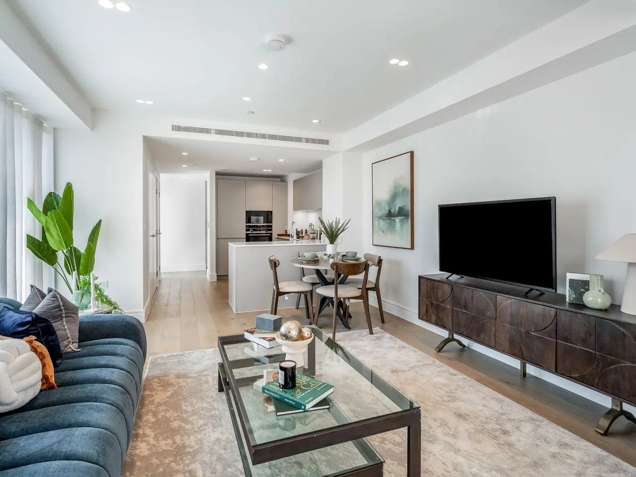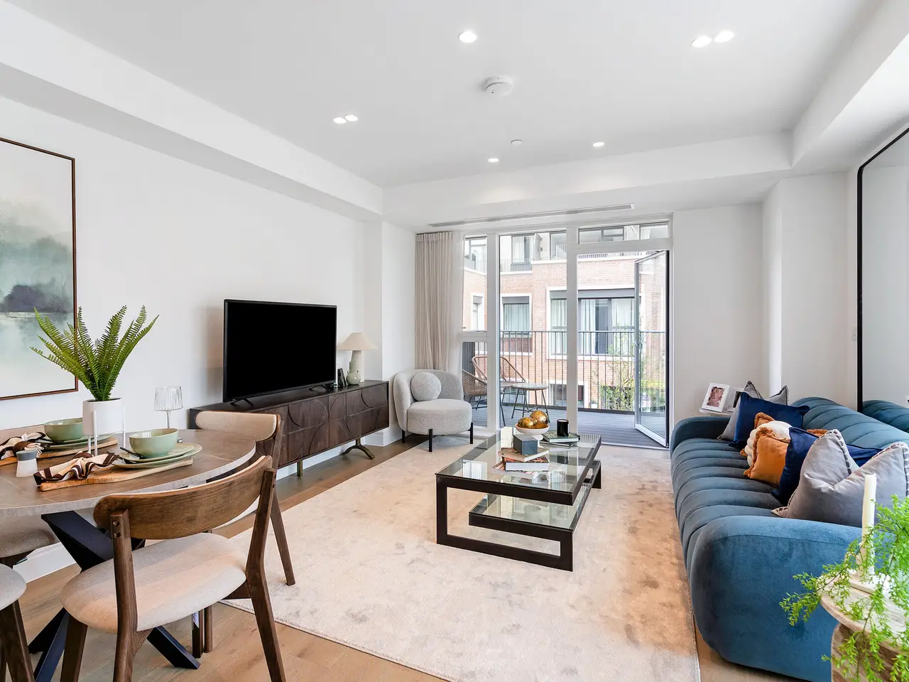 Welcome to Chiswick Green, where effortlessly sophisticated interiors by Millier meet the perfect blend of modern urban living in a beautiful green setting. Spilling onto the park at the heart of Chiswick, this contemporary collection of 1-, 2- and 3-bedroom apartments, penthouses and townhouses is arranged across four elegant buildings. This spacious two-bedroom apartment in Empire House spans 889 sq ft with a total balcony area of 65 sq ft. The thoughtfully designed layout features an open-plan living room and kitchen with access to a private balcony, plus two well-appointed bedrooms including a master bedroom with en-suite bathroom, and an additional family bathroom, offering comfortable modern living with excellent natural light throughout. Developed by Great Marlborough Estates, this award-winning development features apartments with elegant interior palettes complemented by high specifications of natural finishes and tactile detailing. Each home includes integrated Siemens appliances and private balconies or terraces. Residents benefit from a beautifully decorated entrance lobby with dedicated concierge service on the ground floor of Empire House, plus access to communal roof terraces. Four spacious penthouses with wraparound terraces sit atop Empire House, boasting sublime, uninterrupted views across London, including the City skyline and Canary Wharf. Two additional penthouses in Stoll House also feature private terraces and exacting design. The exclusive terrace of four contemporary family homes tucked behind Chiswick High Road provides flexible living over three storeys with private roof gardens, and parking is available for selected units. Perfectly positioned for connectivity, a short walk takes you to Chiswick Park Station (3-minute walk) for Underground services. Alternatively, choose Overground or Mainline trains from Gunnersbury Station (10-minute walk) or Chiswick Station (8-minute cycle). Enquire now to arrange a private viewing. Service Charge: estimated £4.88 per sq. ft. per annum Ground Rent: Peppercorn Tenure: 999 year leasehold