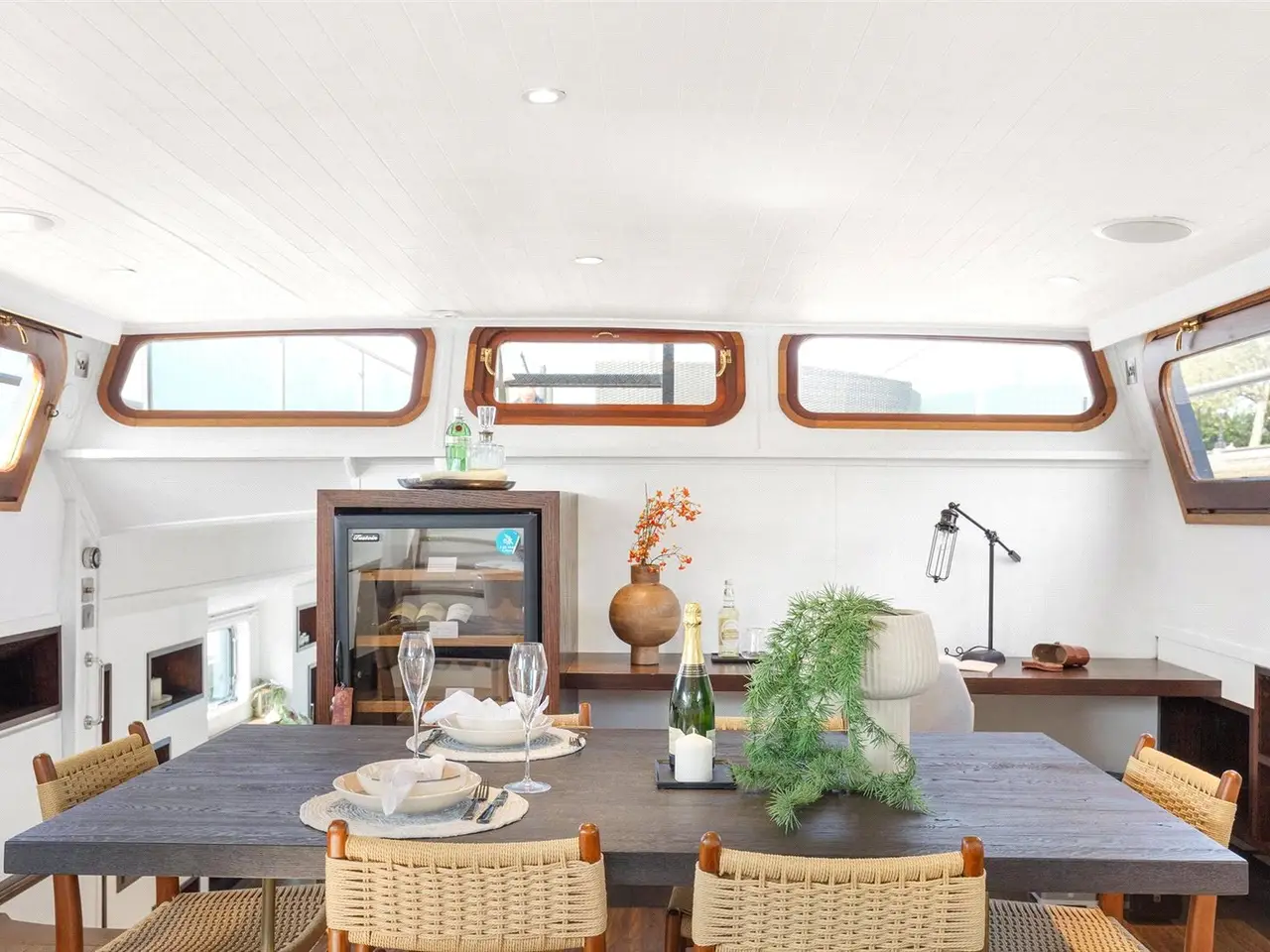 Live the dream on this incredible riverboat moored at the famous Cadogan Pier on the Chelsea Embankment by the stunning Albert Bridge.
