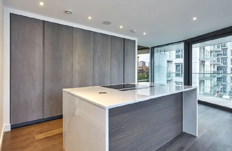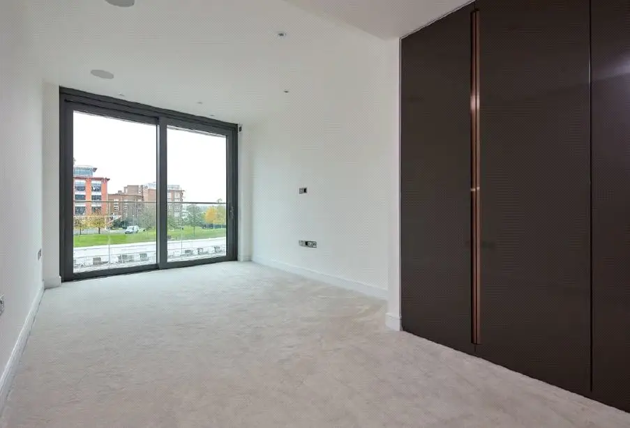 A luxurious two double bedroom, two bathroom apartment, with its own parking space, on a beautiful riverside location and unparalleled views of the river and landscaped gardens from a private balcony. Located on the 2nd floor of the sought after riverside development, Goldhurst House in Fulham Reach. Comprising fantastic open plan reception area with floor to ceiling windows leading on to a private balcony. Kitchen is fully integrated. Master bedroom has an ensuite and both bedrooms benefit from fitted wardrobes. Owners can further benefit from air conditioning, underfloor heating, wood flooring, guest cloakroom, 24-hour concierge, swimming pool, gym, sauna, spa, cinema, snooker room, wine cellar, virtual golf, and an additional storage room. Shops, bars and restaurants are within the development, which is situated within easy reach of Central London and walking distance to Hammersmith Underground station, which has the Circle, District, Piccadilly and Hammersmith and City lines. Has its own parking space. • Two double bedrooms, two bathrooms (one en suite) • Private balcony with river and garden views • Own parking space • Air conditioning and underfloor heating • 24/7 concierge, cinema room, virtual golf, snooker room • Swimming pool, gym, sauna, spa, wine cellar • Excellent location • Lease: 993 years