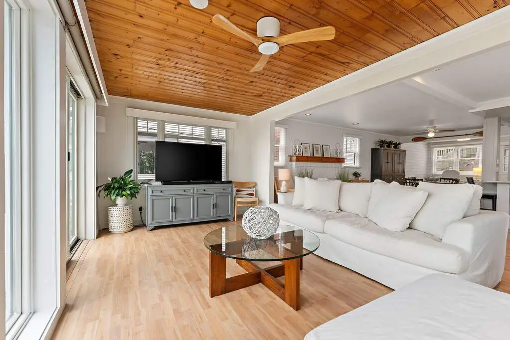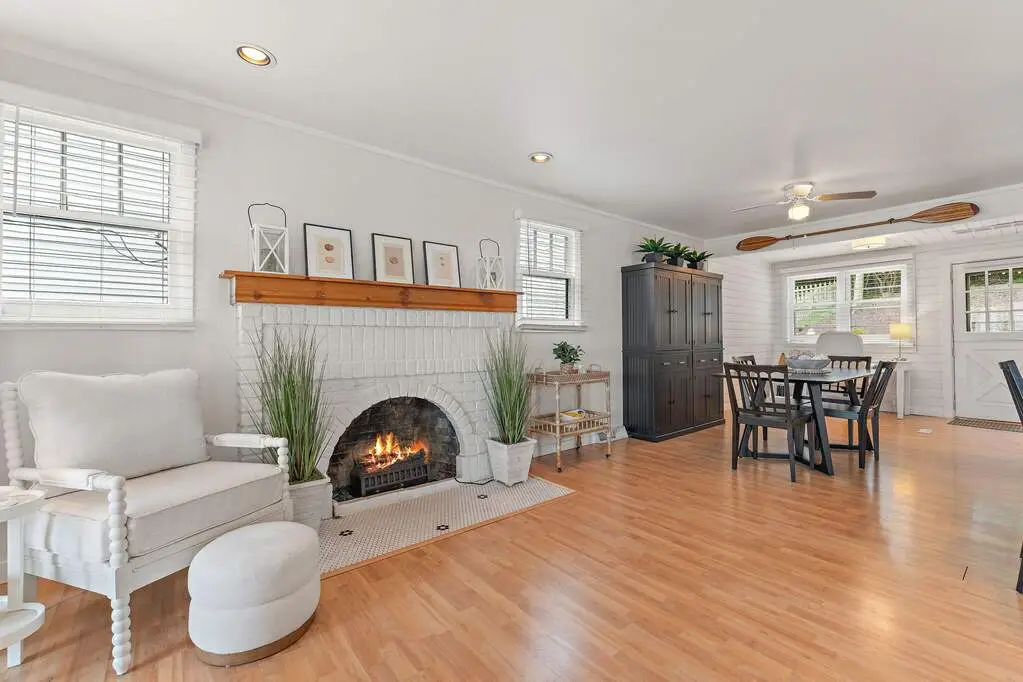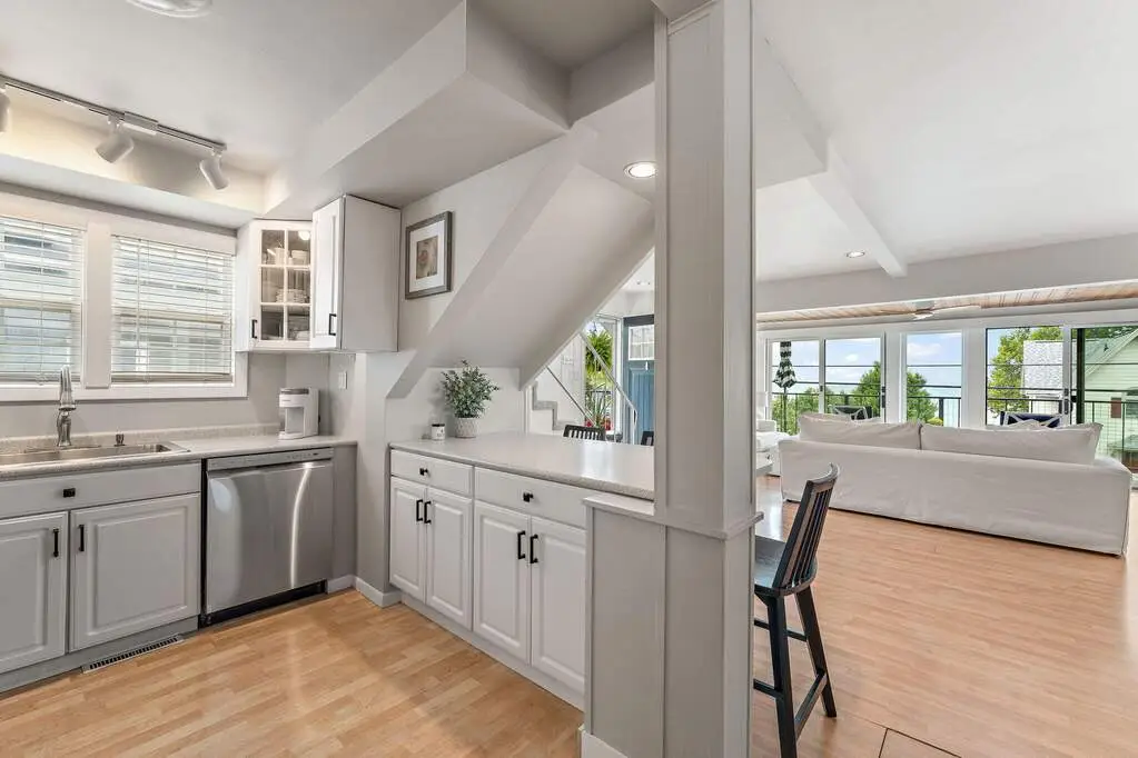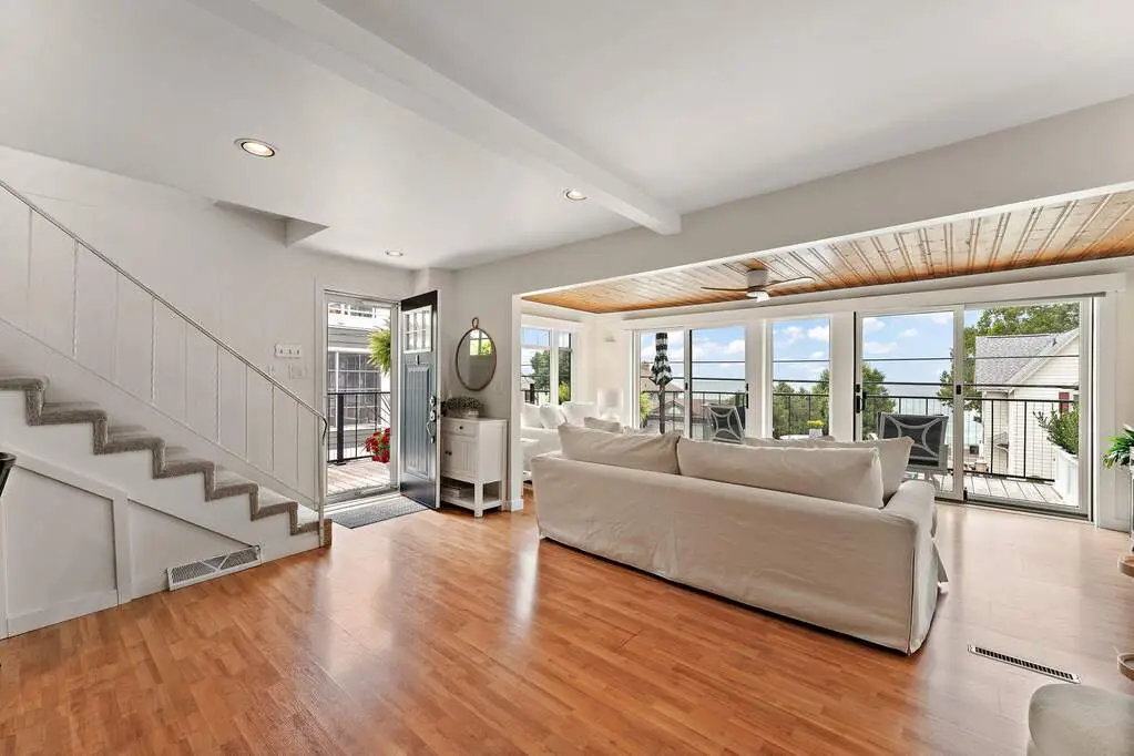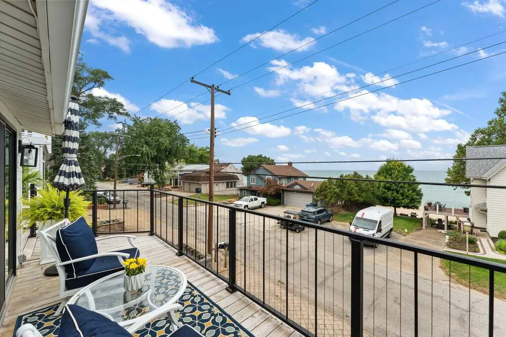 Welcome to lakeside living at Stop 20 on Lake Shore Drive, where every day feels like a weekend getaway! Perched on the hillside with sweeping views of Lake Michigan, this cottage-style retreat is designed for both comfort and charm.Inside, you'll find shiplap-accented walls in the home office, an open-concept layout connecting the Living, Dining, and Kitchen spaces, and LG stainless steel appliance package with a Breakfast Bar perfect for morning coffee before heading off to the beach. The Living Area steals the show with its brick fireplace w/ electric insert, beautiful wood mantel, and double sliding glass doors that lead you directly out to a newly renovated wraparound deck - your front-row seat to breathtaking sunsets and the refreshing lake breeze overlooking Lake Shore Drive.This home offers a main-level full bath and 4 cozy Bedrooms upstairs, and an additional 3/4 bath with a Washer/Dryer. Outside, a new front retaining wall provides rare off-street parking for up to four cars, while the tiered backyard patio creates multiple spaces for entertaining, relaxing, or giving pets their own play area. With a 40x150 lot and a rare hillside backyard, this home combines lakeside charm with everyday functionality. Whether it's sipping wine on the deck, entertaining under the stars, or simply enjoying life along Lake Michigan's shoreline - this is the beach cottage you've been waiting and dreaming of!