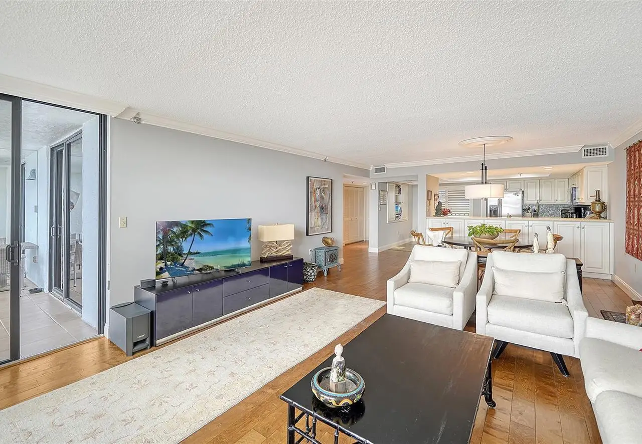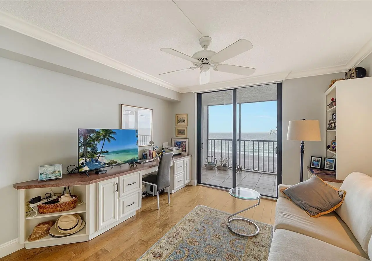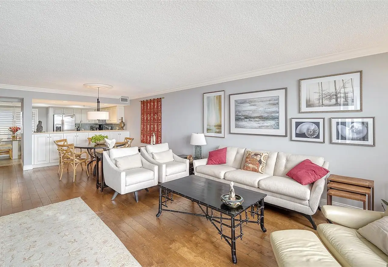 Direct Gulf and Bay Views on Longboat Key. Enjoy stunning Gulf and Bay views from this 2-bedroom, 2-bath residence at The Castillian, a pet-friendly beachfront community on beautiful Longboat Key. The open, eat-in kitchen flows seamlessly into the living and dining areas - perfect for entertaining or relaxing by the sea. The living room, primary suite, and guest bedroom - all featuring rich wood flooring - open onto a spacious screened beachfront lanai, where you can take in spectacular sunsets and gentle Gulf breezes. The Castillian offers two well-maintained buildings, each with just 30 units and rare underground parking. Recent updates include new roofs on both buildings as well as new landscaping. Community amenities include a heated beachfront pool and hot tub, outdoor grilling area, tennis court with pickleball, and private beach access with incredible sunset views. Ideally located mid-island, The Castillian is just minutes from Sarasota's world-class shopping, fine dining, cultural attractions, and the Sarasota-Bradenton Airport. The owner has already relocated, so this inviting home is vacant and ready for you to make it your own.