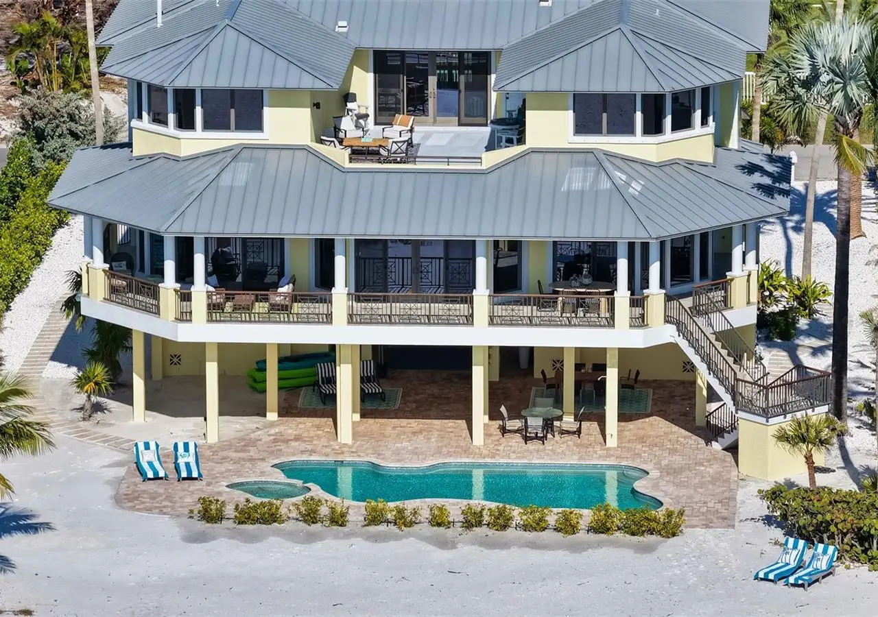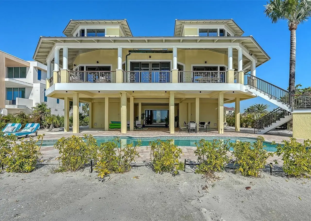 Welcome to Paradise! Experience the ultimate in Longboat Key and Gulf-front luxury with this spectacular nearly 6,000 sq. ft. beachfront estate on Longboat Key. Perfectly positioned on a pristine stretch of white-sand shoreline, this gorgeous beach home offers unobstructed, panoramic views of the Gulf of America from nearly every room in the home. Also featuring over 3,000 sq. ft of under-roof outdoor relaxation and entertainment space. Designed for family gatherings and beach front fun, this is the perfect beach home for tranquil coastal living. This beach home features 6 bedrooms, 6.5 bathrooms, a den and a family room, as well as a stunning 24' x 24' rooftop sun deck. Built in 2002, this waterfront beauty offers many unique details like the Mahogany front door, elevator to all 3 levels, all new exterior paint and interior paint, and best of all three expansive levels of outdoor living space, each capturing the beauty of daily sunsets and unobstructed Gulf and beach views. At the heart of your beachfront oasis is a newly refurbished resort-style pool and new paver patio, framed by swaying palms and endless water views. Just steps beyond the pool is access to your 97' of private beach frontage leading directly to the soft sand and crystal-blue Gulf waters. The main level Owner's suite is large, with direct and unobstructed Gulf and beach views. The kitchen is spacious and open, with top-of-the-line appliances and direct Gulf and beach views to enjoy while you cook. The guest bedroom suites are all spacious, with ensuite bathrooms and great Gulf and beach views from every bedroom. Whether you're seeking a serene retreat or an entertainer's dream, this exceptional Longboat Key residence delivers unparalleled beauty, privacy, and a front-row seat to Florida's most breathtaking coastline. Hurry up and get here, the views are spectacular!