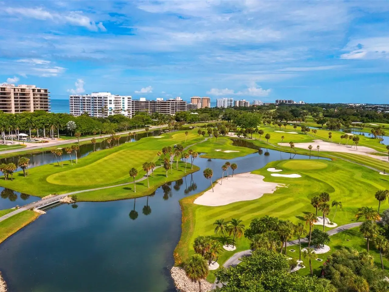 PENTHOUSE. Delight in scenic views of Sarasota Bay in this custom-designed, rare 4 bedroom, 4.5 bathroom in the gated resort-style Tangerine Bay community on the southernmost tip of Longboat Key. The residence is only minutes from St. Armand's Circle, across the street from the Longboat Key Club, and a short driving distance to the Bay Isles Beach Club and vibrant downtown Sarasota. Filled with abundant natural light, the spacious condominium features soaring ceilings, a great room with gas fireplace, marble foyer and gallery for displaying artwork, and private gated courtyard. All bedrooms are ensuite. New sliding glass doors in the primary suite and new glass window in the great room open to a tiled terrace where you can start your day with a cup of coffee while watching the sunrise over the lagoon and Bay. An additional west-facing terrace upstairs boats golf course and sunset views. The well-equipped kitchen includes stone counters, breakfast bar, large pantry and morning room. There is also a fully enclosed two-car garage with plenty of storage space as well as two AC units in the condominium. The Tangerine Bay Club community boasts beautifully manicured walking paths, amid newly planted tropical greenery as well as many amenities, including a pool with waterfalls, fitness center, a tennis/pickleball court, plus a day boat dock and fishing pier on the Bay. Residents have the option of joining the Beach Club (normally reserved for only Bay Isles residents) on the Gulf of America.