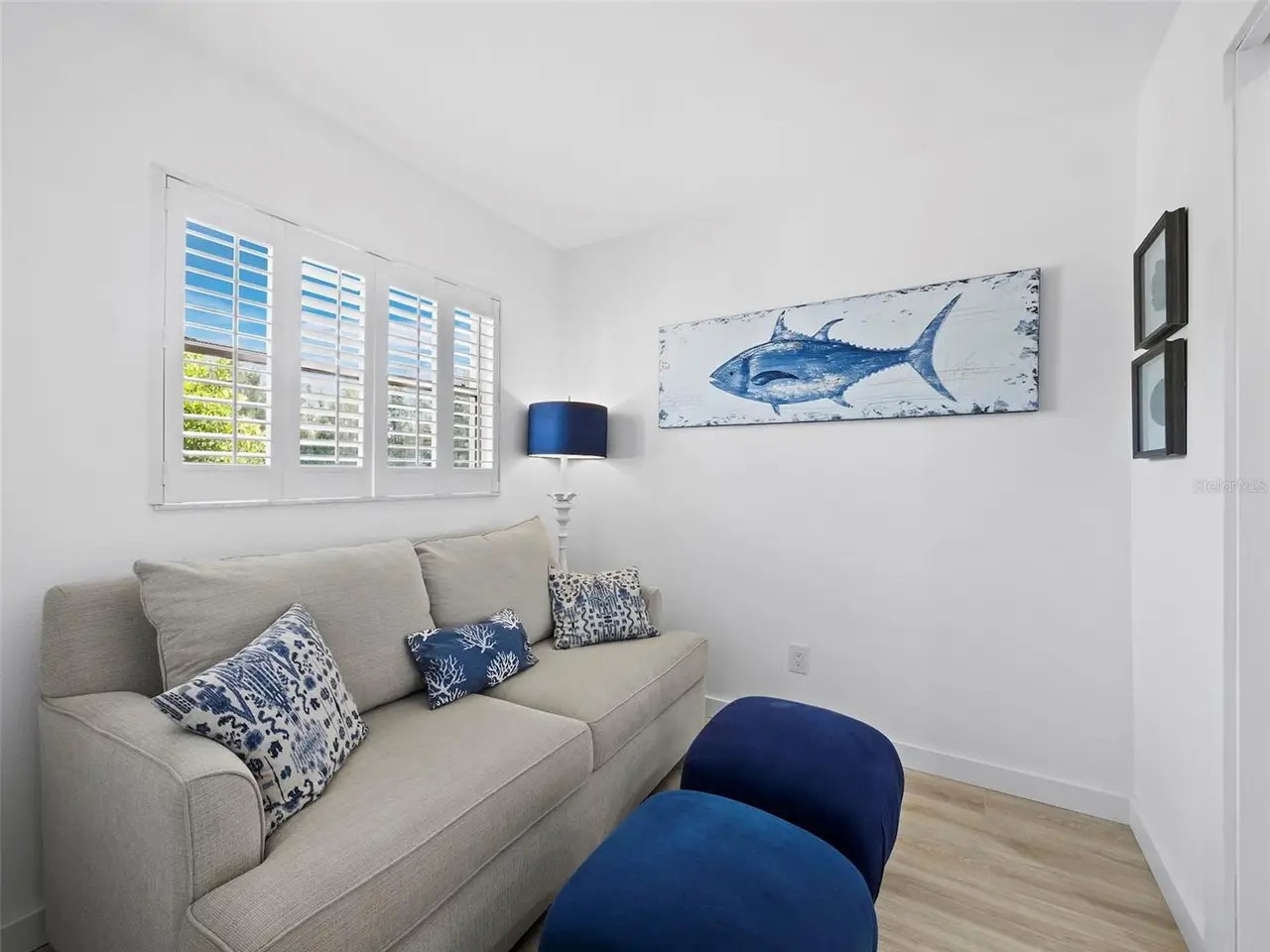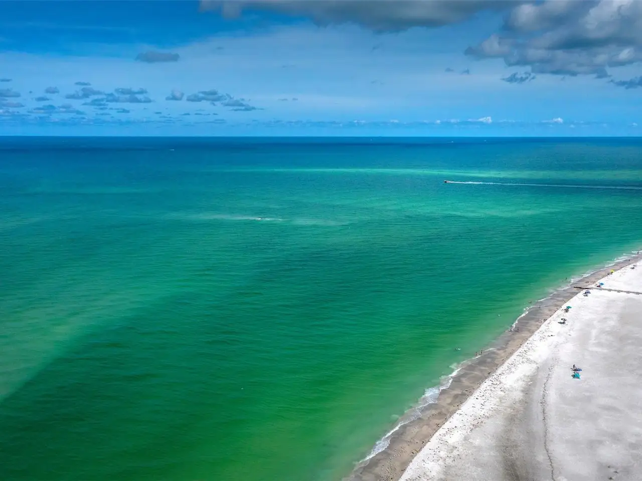 Experience elevated coastal living in this beautifully renovated, second-floor beachfront condominium, offering sweeping Gulf views and the tranquility that comes with a higher vantage point. Nestled within the intimate, gated community of Sea Pines on the serene north end of Longboat Key, this end-unit residence effortlessly blends updated sophistication with the soothing rhythm of the sea. This light and airy floor plan features two bedrooms, two full baths, and a flexible den that easily converts to a third sleeping area for guests. Designed with a relaxed, coastal aesthetic, the interior showcases neutral flooring and paint tones, stylish plumbing fixtures, updated lighting, plantation shutters, and solid surface countertops throughout. The kitchen is a true showpiece, offering Gulf views, modern cabinetry, sleek open shelving, shiplap accent walls, a statement tile backsplash, premium GE Cafe appliances, and a large pantry perfect for any home chef. The primary suite is a peaceful retreat with views of the Gulf and community pool, a generous walk-in closet, and a spa-style en-suite featuring a spacious walk-in shower. Step outside from either the living area or the primary suite onto a 26-foot screened lanai ideal for morning coffee, al fresco dining, or simply unwinding to the sound of waves and the sight of spectacular sunsets. The guest suite offers its own en-suite bath and large walk-in closet, providing comfort and privacy for visitors. A full-size, side-by-side washer and dryer add everyday convenience. Sea Pines is a boutique complex of just 28 residences, offering a relaxed and secure lifestyle with gated entry. Amenities include a heated pool with lounging and dining areas, a private beach access path, tropical landscaping, outdoor grilling stations, and a pet-friendly atmosphere with strong rental potential. Don't miss this rare opportunity.