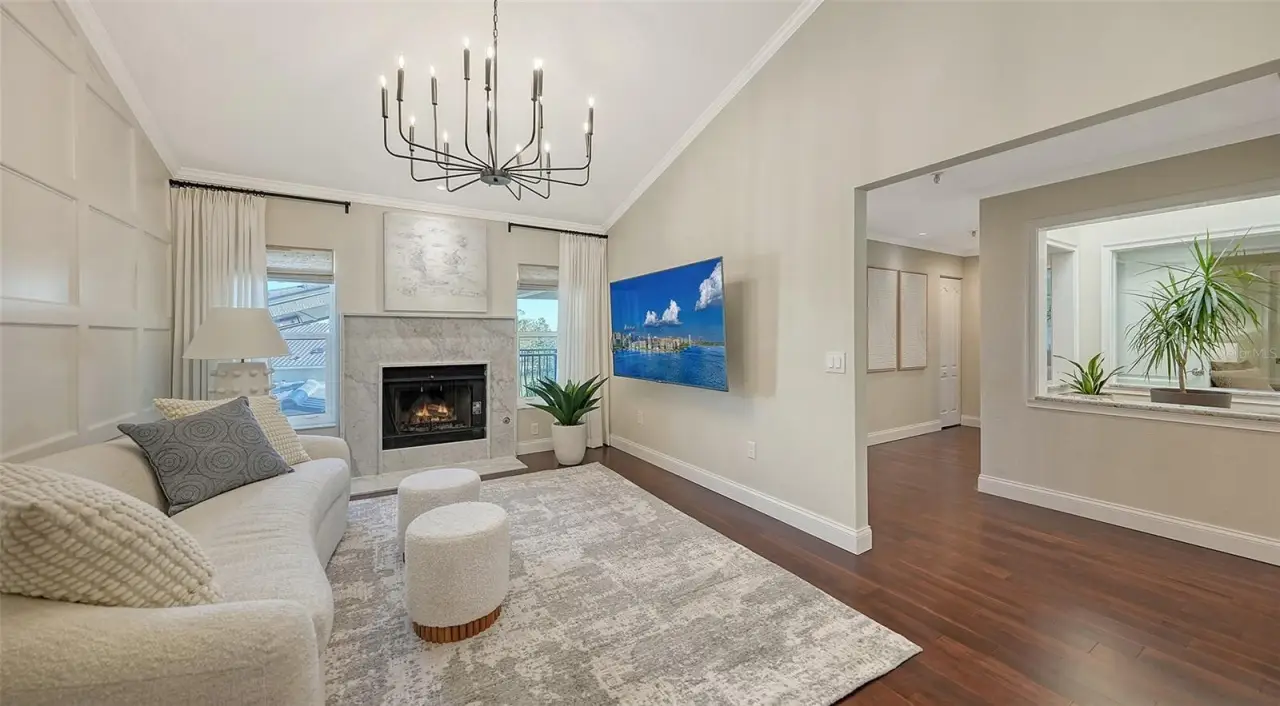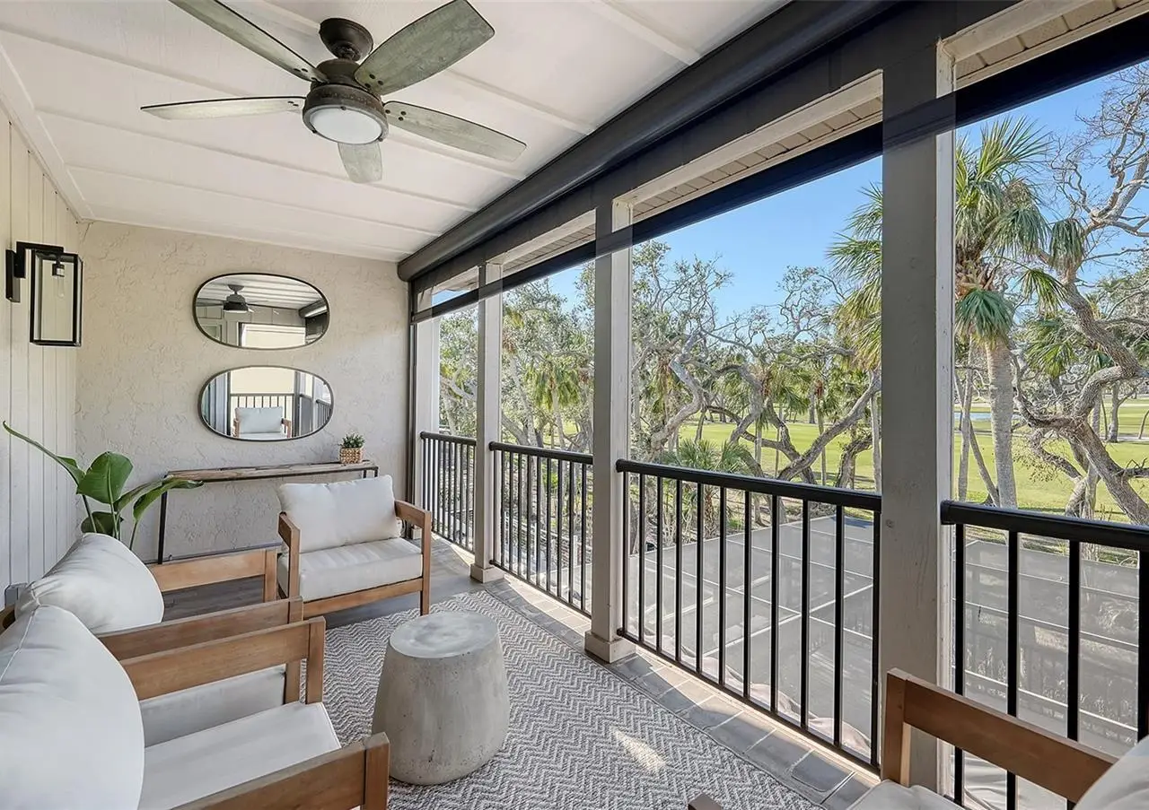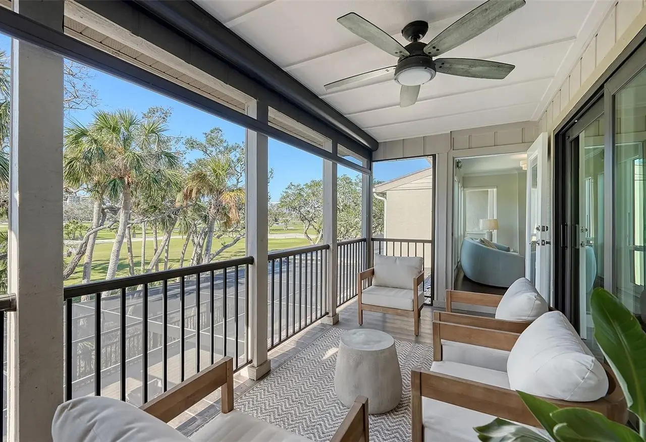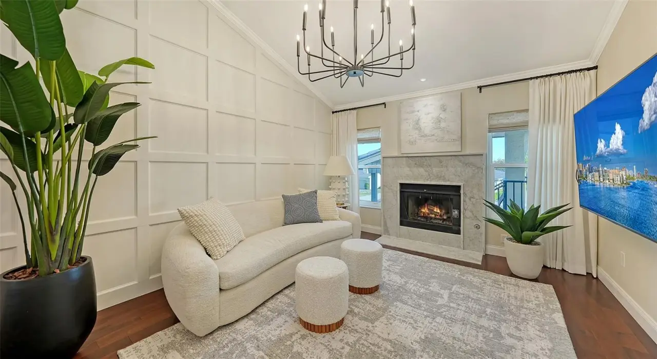 Discover this exquisitely renovated, fully furnished 3-bedroom, 2-bath home in the friendly 'Harbour Oaks' section of the prestigious Bay Isles community on Longboat Key. With just under 2,000 square feet of living space, this residence perfectly combines luxury, comfort, and convenience. This home has been meticulously designed with high-end finishes by an interior designer, offering a sophisticated aesthetic throughout, featuring custom wood paneling, recessed lighting, engineered wood floors, Stark wool carpet in the primary bedroom, and custom draperies. The 2020 upgraded kitchen features premium stainless-steel appliances and an induction range. Additional thoughtful design elements include cove lighting in the dining room and a wood-burning fireplace with custom Carrera Marble surround. The lanai with a motorized no-see-um bug screen overlooks the Longboat Key Club Harbourside Golf Course, providing breathtaking and comfortable sunset views framed by beautiful trees and lush greenery. For safety, durability and financial peace of mind, this gorgeous second floor residence features recently upgraded high-impact sliders and windows, plus community-wide new roofing and siding. Located in the gated Bay Isles community with 24/7 security, this home is within walking or biking distance to the private and newly renovated Bay Isles Beach Club, the Longboat Key Club Moorings Marina and Portofino restaurant, the Longboat Key Club Pickleball and Tennis Courts, Publix, CVS, as well as to the new Longboat Key St. Regis, which offers exceptional dining options and the vibrant St. Regis Monkey Bar, now open to the public. This remarkable turn-key property with a beautiful community pool and spa offers a rare opportunity to embrace the unparalleled Longboat Key lifestyle. Don't miss the chance to make it your own.