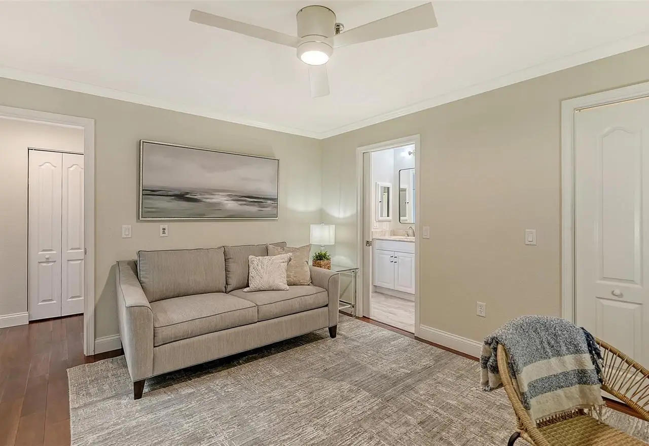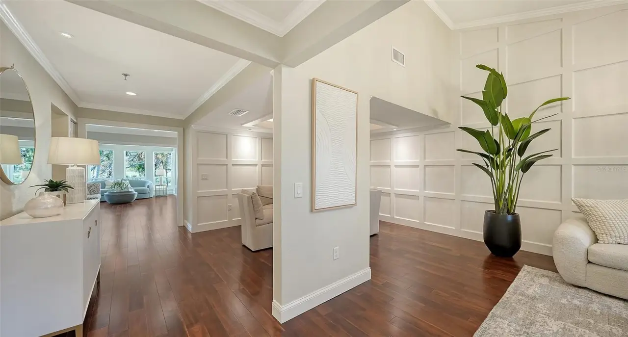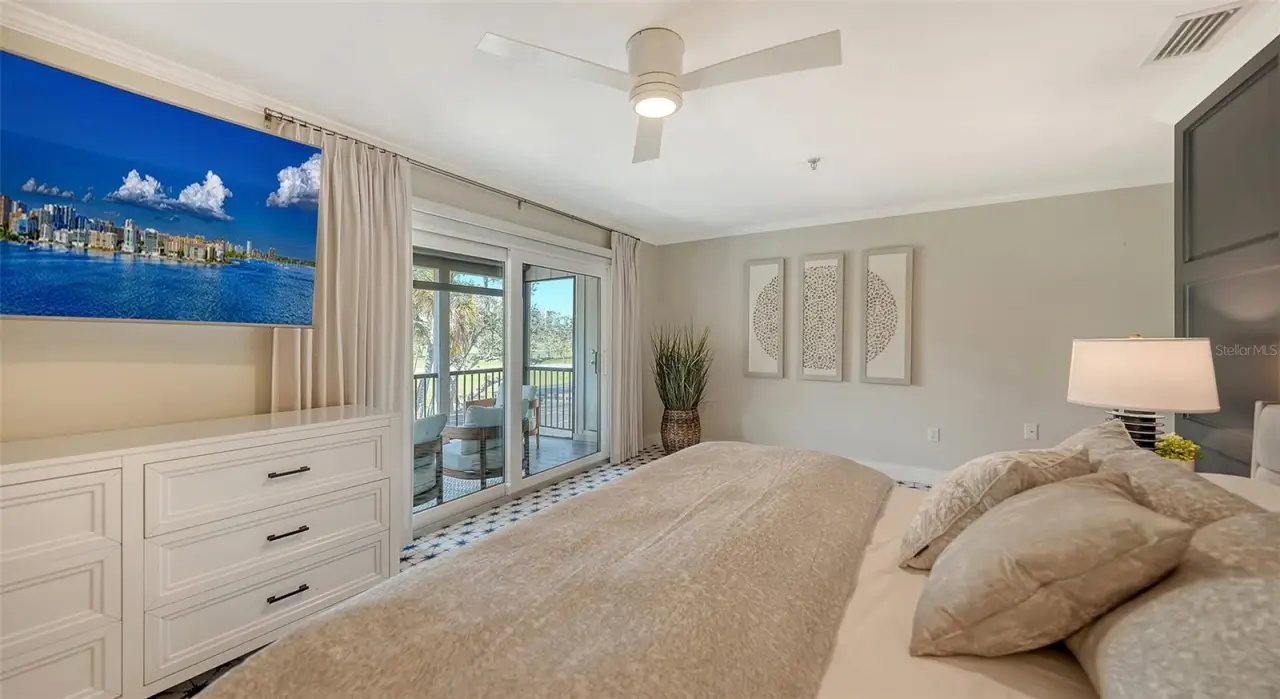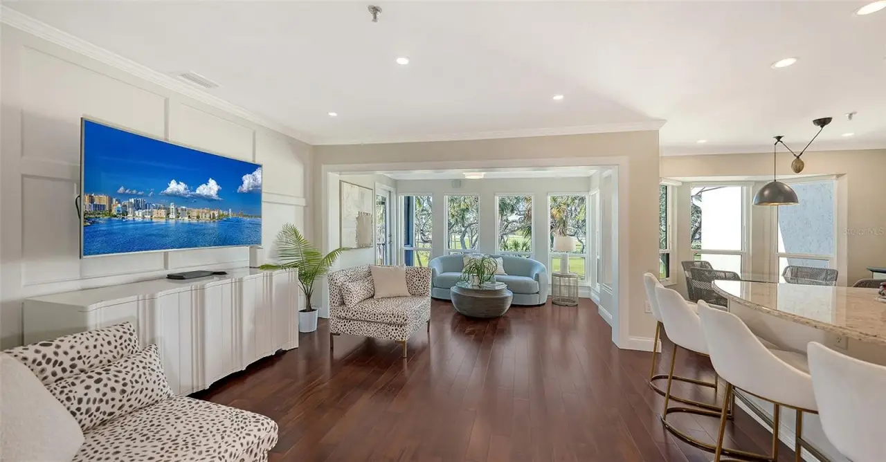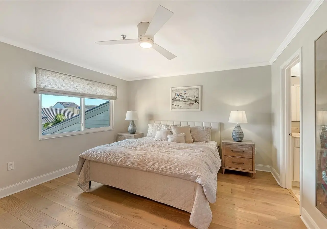 Discover this exquisitely renovated, fully furnished 3-bedroom, 2-bath home in the friendly 'Harbour Oaks' section of the prestigious Bay Isles community on Longboat Key. With just under 2,000 square feet of living space, this residence perfectly combines luxury, comfort, and convenience. This home has been meticulously designed with high-end finishes by an interior designer, offering a sophisticated aesthetic throughout, featuring custom wood paneling, recessed lighting, engineered wood floors, Stark wool carpet in the primary bedroom, and custom draperies. The 2020 upgraded kitchen features premium stainless-steel appliances and an induction range. Additional thoughtful design elements include cove lighting in the dining room and a wood-burning fireplace with custom Carrera Marble surround. The lanai with a motorized no-see-um bug screen overlooks the Longboat Key Club Harbourside Golf Course, providing breathtaking and comfortable sunset views framed by beautiful trees and lush greenery. For safety, durability and financial peace of mind, this gorgeous second floor residence features recently upgraded high-impact sliders and windows, plus community-wide new roofing and siding. Located in the gated Bay Isles community with 24/7 security, this home is within walking or biking distance to the private and newly renovated Bay Isles Beach Club, the Longboat Key Club Moorings Marina and Portofino restaurant, the Longboat Key Club Pickleball and Tennis Courts, Publix, CVS, as well as to the new Longboat Key St. Regis, which offers exceptional dining options and the vibrant St. Regis Monkey Bar, now open to the public. This remarkable turn-key property with a beautiful community pool and spa offers a rare opportunity to embrace the unparalleled Longboat Key lifestyle. Don't miss the chance to make it your own.
