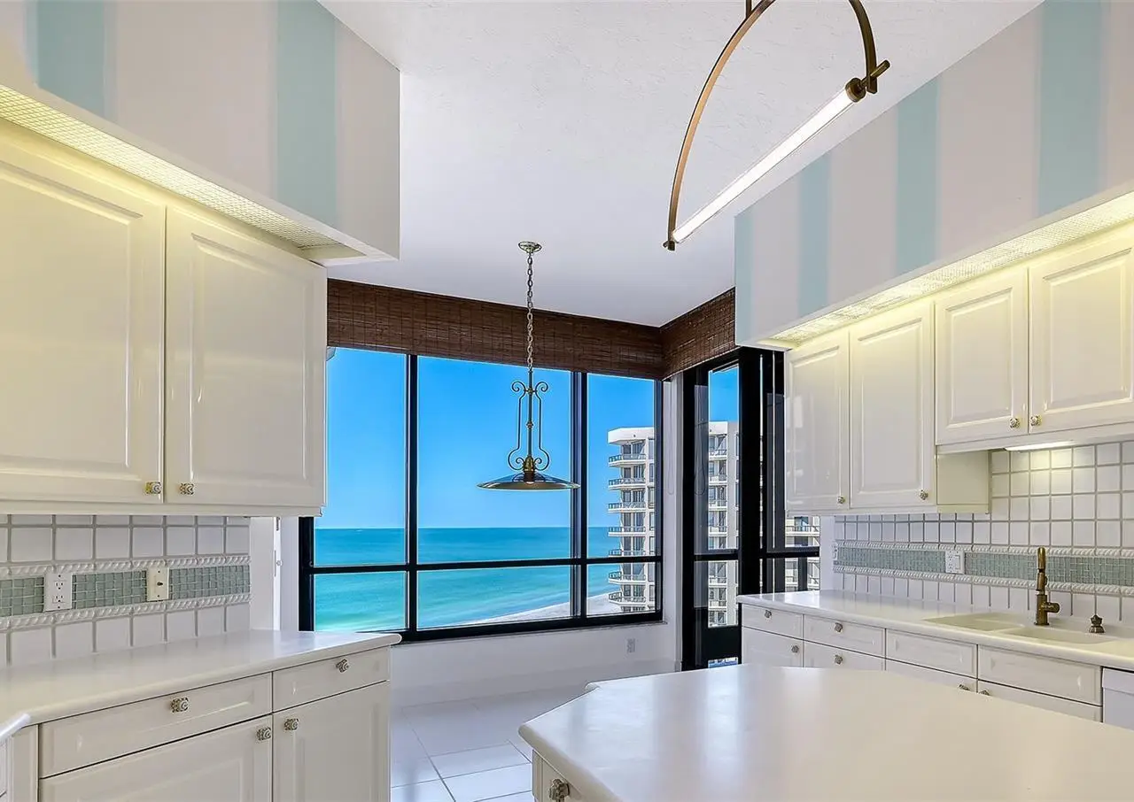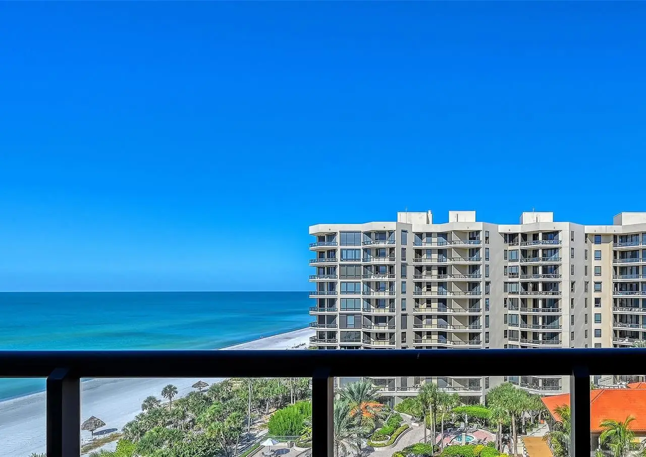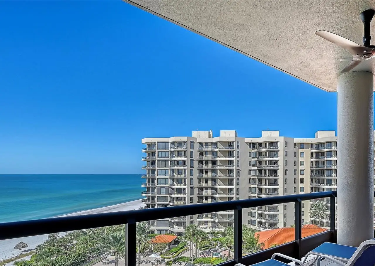 Experience unparalleled coastal elegance at The Water Club on Longboat Key, a premier gated beachfront community spanning 16 acres of lushly landscaped grounds. This eighth-floor Brighton residence offers three bedrooms, panoramic Gulf, beach, and bay views, and two expansive terraces, ideal for sunsets and entertaining. A semi-private elevator opens directly into a grand foyer with floor-to-ceiling windows overlooking Sarasota Bay and the city skyline. Ten-foot ceilings, extensive glass walls, and storm protection shutters enhance both comfort and sophistication. The primary suite features a private terrace, den, dual bathrooms, and walk-in closet, while a split-bedroom layout ensures privacy for two generous guest suites with en-suite baths. The gourmet kitchen offers ample storage and a breakfast area with stunning water views. Residents enjoy resort-style amenities including a 17,000 sq. ft. clubhouse, fitness center, spa, heated lap pool and hot tub, four Har-Tru tennis courts, concierge services, billiards room, ballroom, library, firepit, and grilling areas, along with under-building parking, climate-controlled storage, on-site management, and 24-hour security. Located at the south end of Longboat Key, enjoy close proximity to Longboat Key Club golf, Publix shopping, St. Armands Circle, downtown Sarasota, and Sarasota International Airport. Pet-friendly and impeccably maintained, this residence offers the pinnacle of coastal luxury living.