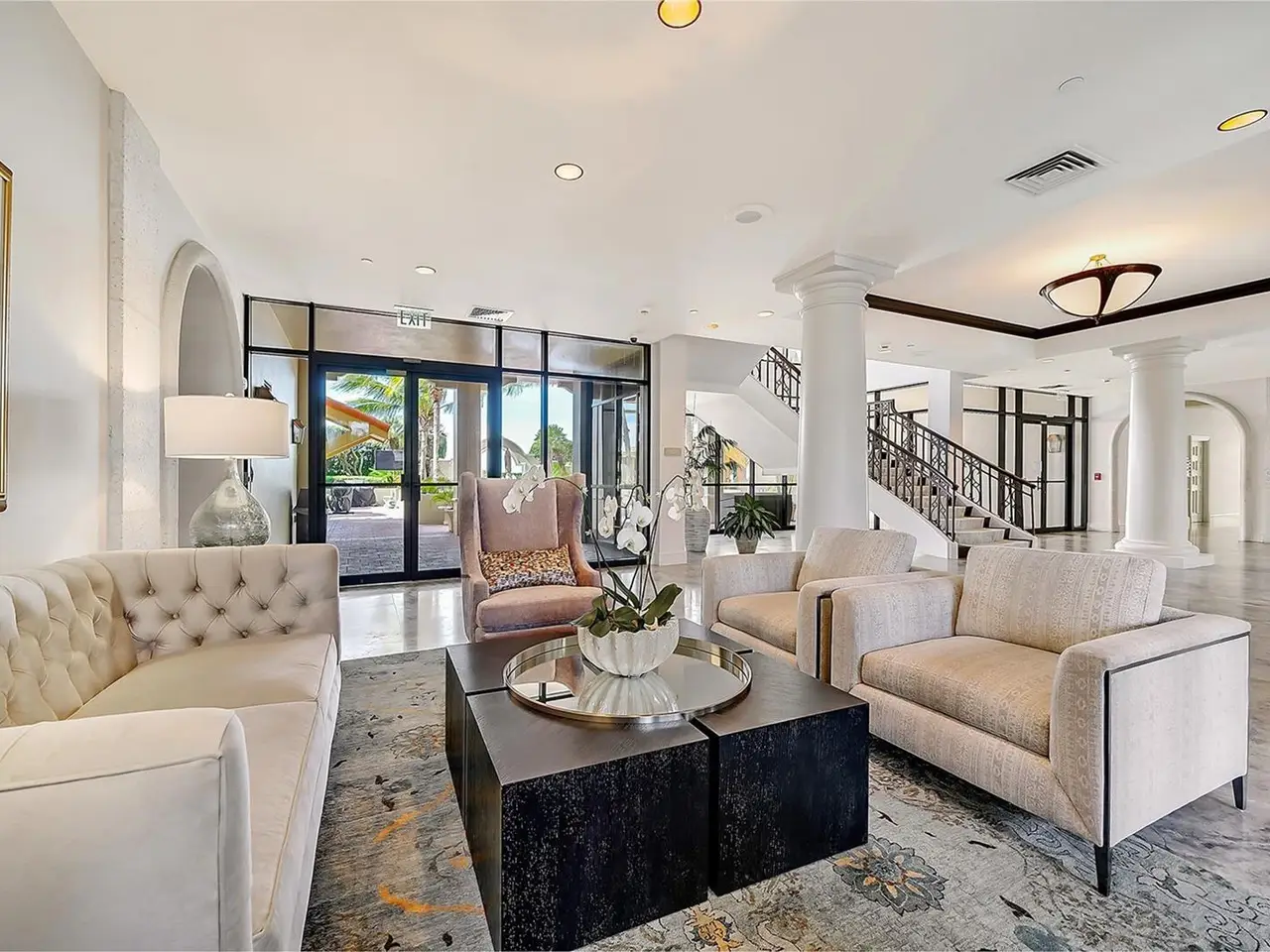 Elevator opening into impressive foyer
