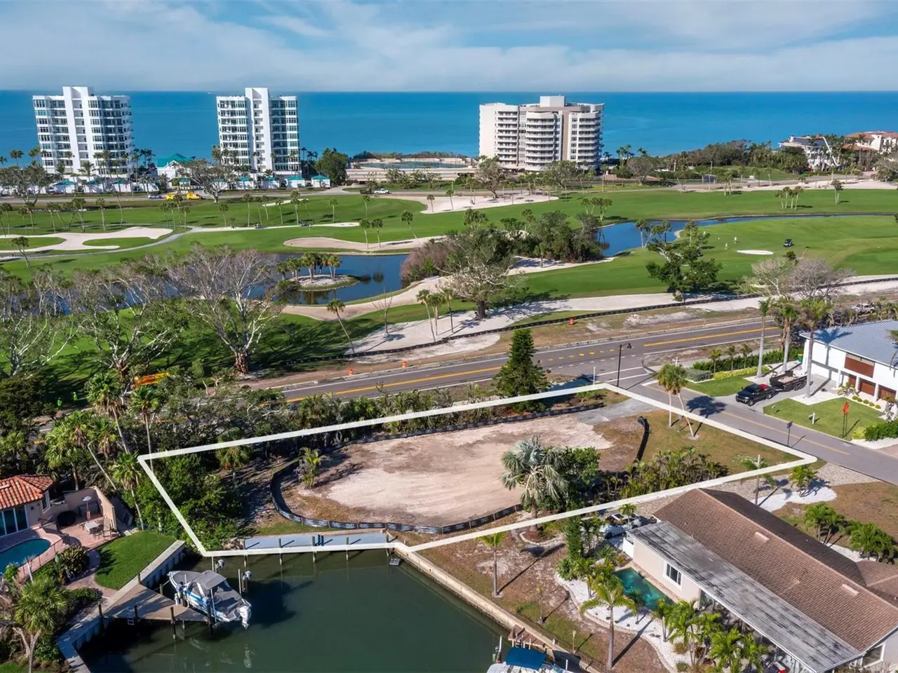 PRICED BELOW RECENT APPRAISAL; OVERSIZED corner lot ready to build substantial water front home with seawall, composite dock, eastern views down the canal and over to Sarasota Bay and western views to Longboat Key Club golf course and over to Gulf of Mexico.