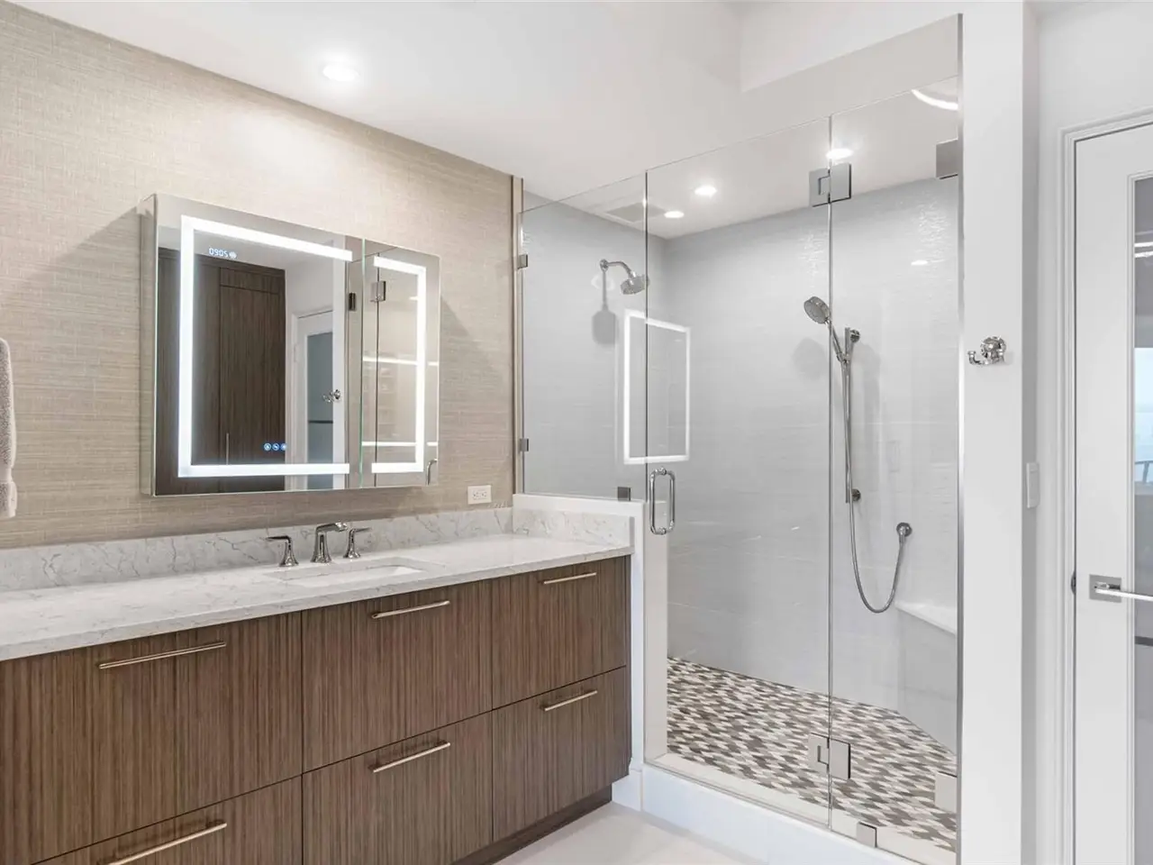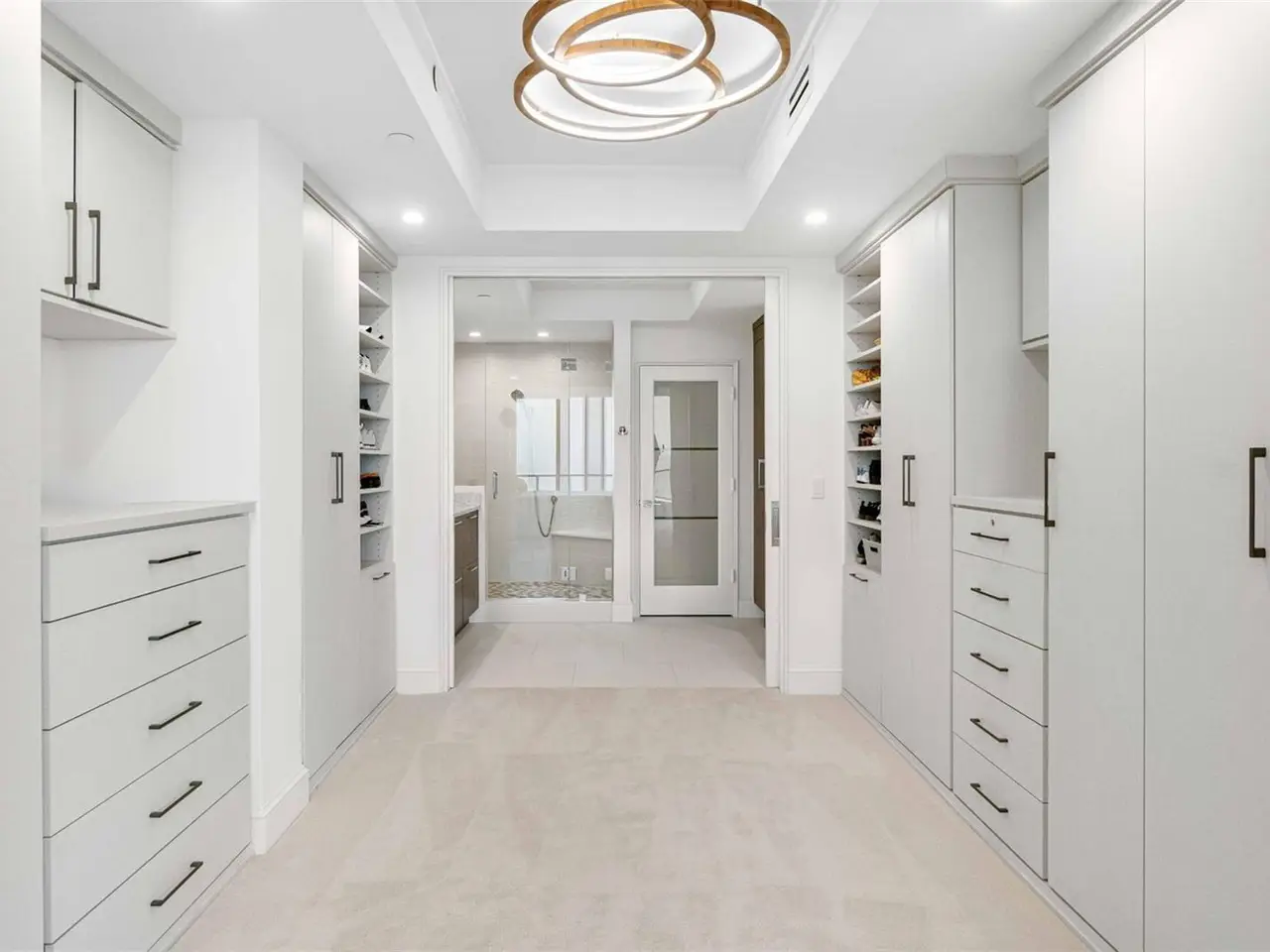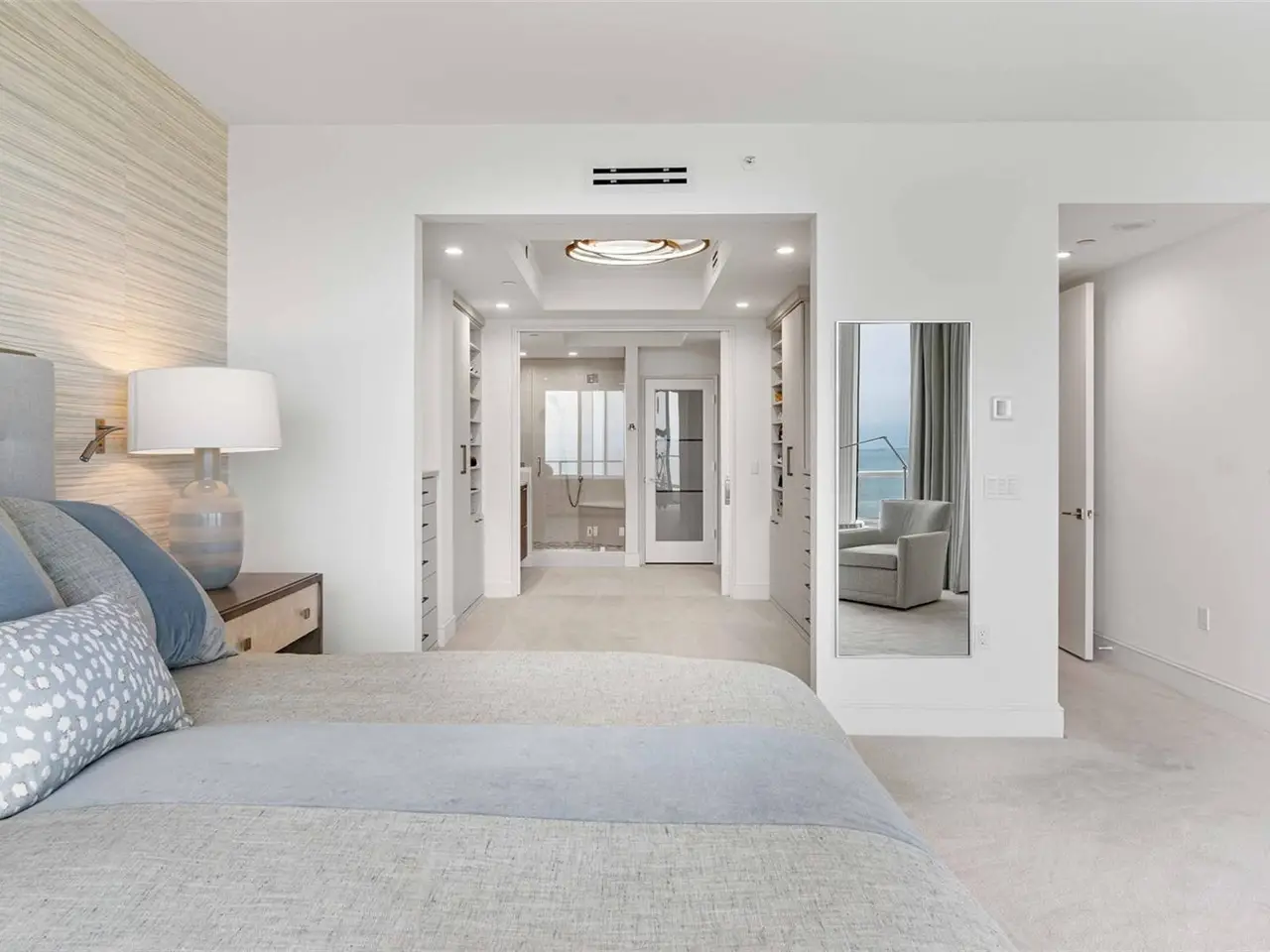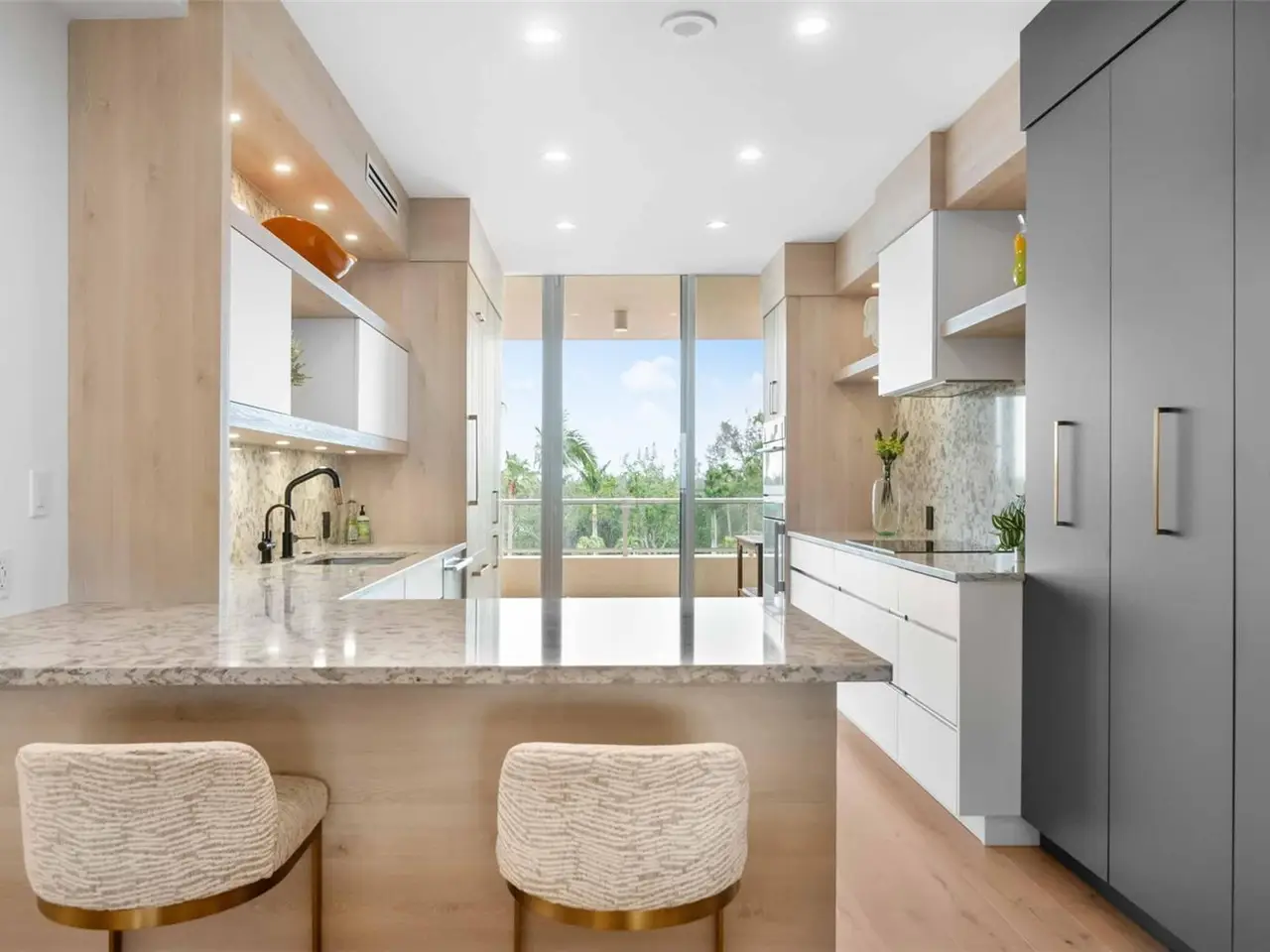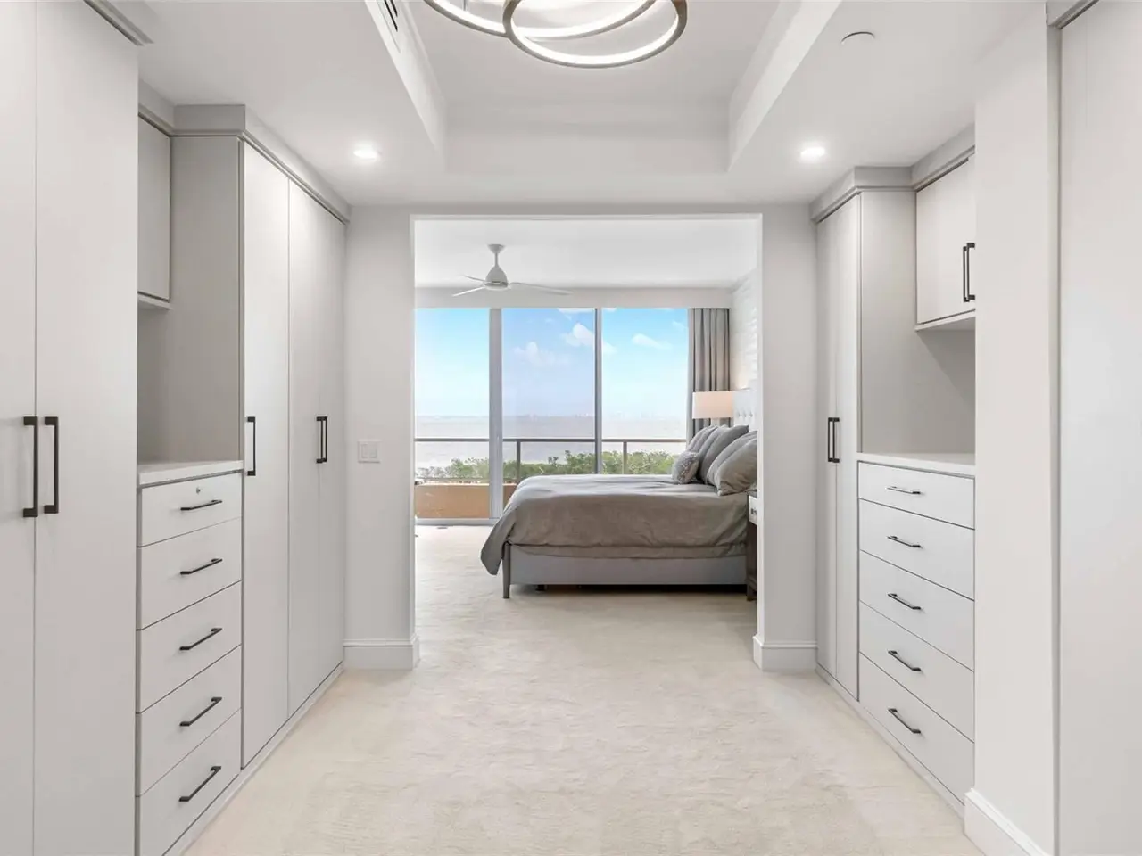 Be wowed by the $800,000 renovation of this stunning Cayman unit in coveted building 3 of the desirable gated Grand Bay community in Bay Isles on Longboat Key. Savor the mesmerizing full Sarasota Bay views, highlighted by boats arriving in the Marina, the manicured grounds of the Longboat Key Club Blue course 9th hole, and downtown Sarasota in the distance. Discerning buyers will appreciate the quality, attention to detail and expense evident in this must-see renovation by Renovation SRQ. Demolished to the studs in 2021, this re-designed home offers an open floor plan, where kitchen and dining areas flowing seamlessly. The new design, coupled with artful use of captivating color choices, creates a wonderful, soothing space on trend with modern lifestyle. Included in the renovation are hardwood composite floors in all rooms (aside from bedrooms); a relocated kitchen with new cabinetry, counters, back splash, Thermador appliances, plumbing/piping/ and electric wiring; a new Wet Bar with sink/fridge and freezer; Lutron Caseta lighting with cove lighting in the dining room, gorgeous lighting fixtures and lighting scenes throughout. Lutron Shades on East side of the unit and black out shades in the primary bedroom provide privacy and comfort throughout the day. The stylish dressing area in the primary bedroom has been substantially enlarged and intelligently outfitted with new cabinetry, opening into a spacious bath, with dual vanities, shower and filtered outside light. Extra sound-absorbing insulation was installed in the walls abutting neighbors. The 3rd bedroom presently is used as the office/den with glass doors and privacy shades. Balcony doors were completely rebuilt with new screens that slide easily and seal tightly. New beautiful contemporary floor tiles were installed on both balconies. One parking space is conveniently located next to elevator access and has no neighboring car. This 2nd floor unit allows for easy access for pets and to the street. Residents of Grand Bay are invited to enjoy an exciting host of amenities, including 24/7 guard gates as you enter both Bay Isles and Grand Bay, a clubhouse, two community pools and spas, a large fitness center with saunas and Har-Tru tennis courts. Enjoy the conveniences of Bay Isles, with its miles of walking paths, and nearby shopping. And relax at the private, gated Bay Isles Beach Club directly on the Gulf of Mexico, with its locker rooms, barbecues, volleyball nets, covered picnic areas and an expanse of sandy white beach shared only with other Bay Isles owners. Do not miss this opportunity --begin your Longboat lifestyle today.