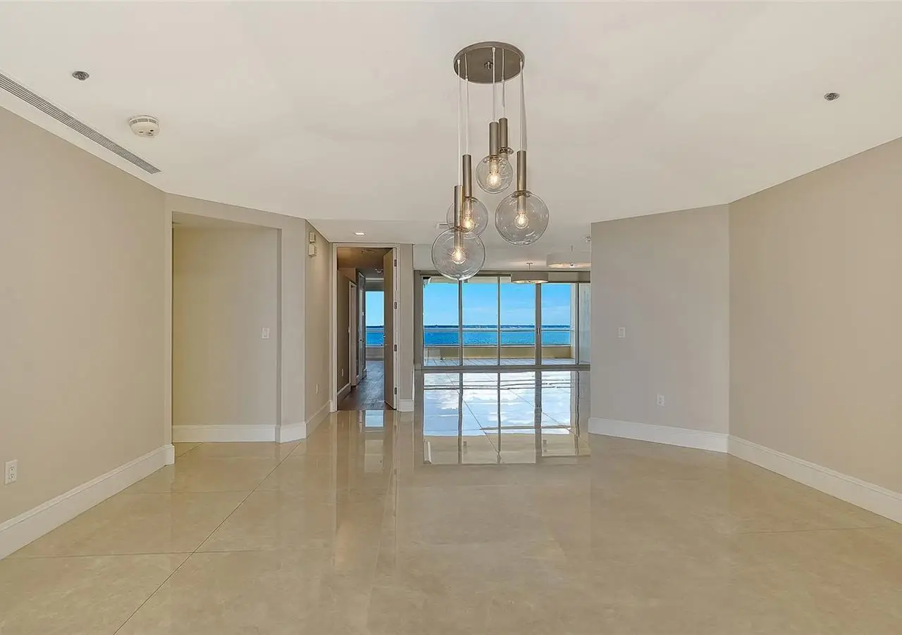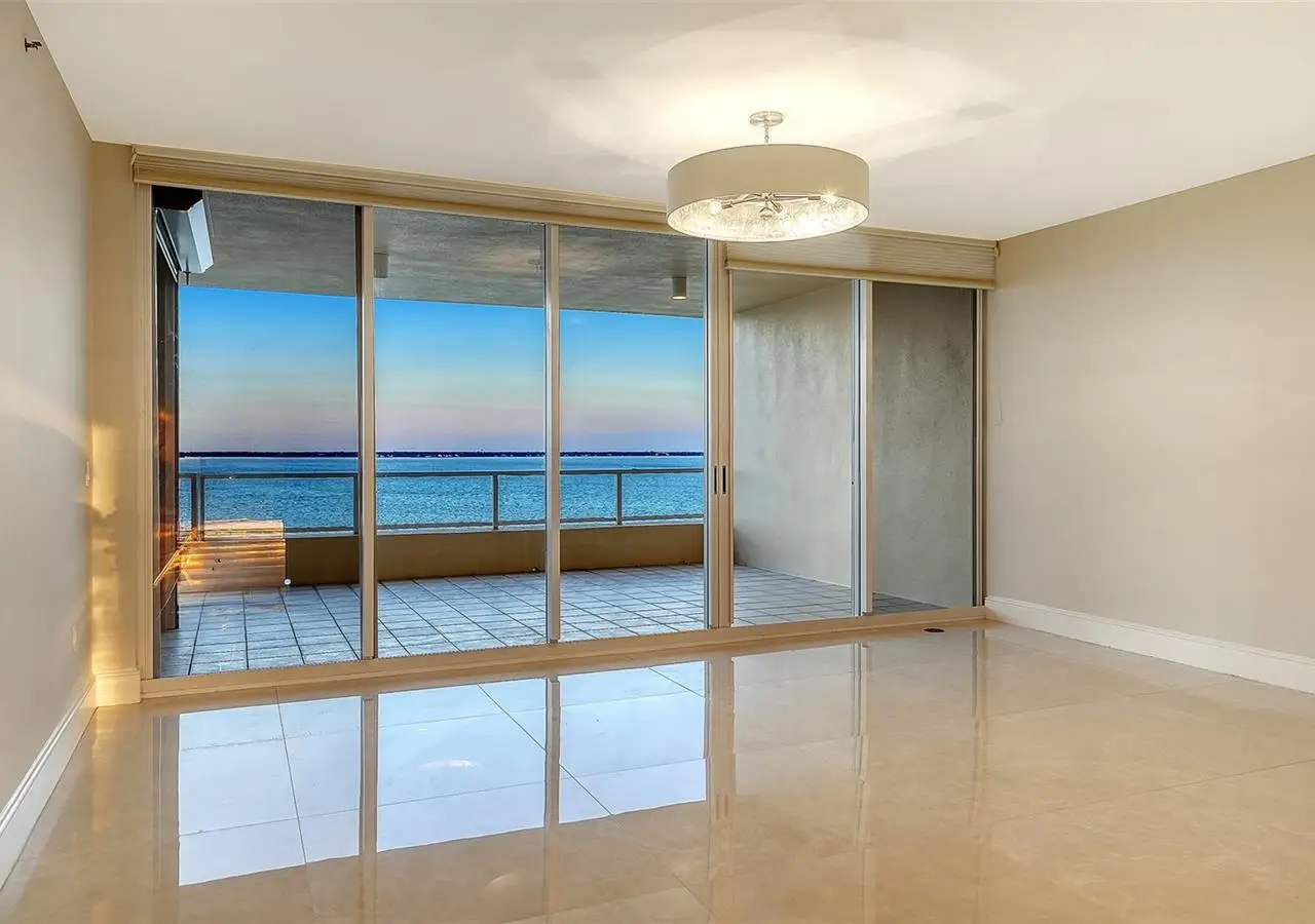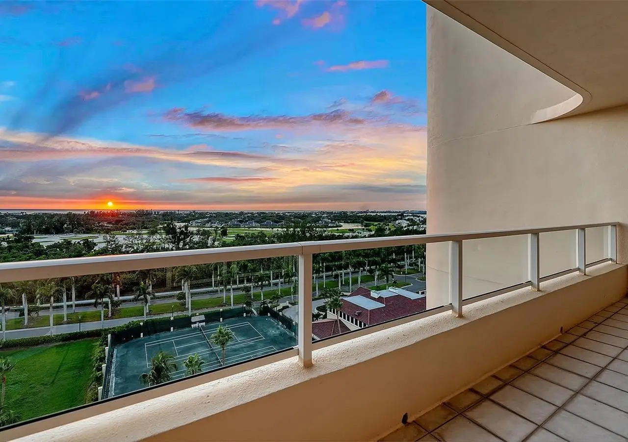 Welcome to Grand Bay. Experience the essence of refined coastal living, where breathtaking panoramic water and city views take center stage. Awaken to the sunrise over Sarasota Bay’s skyline with limitless views of the bay and golf course, and unwind with stunning sunsets over the Gulf, an ever-changing display of beauty from every room. Perfectly situated on the 8th floor, this elegant home welcomes you through a private-access, controlled elevator leading to a stunning foyer framed by contemporary glass double doors. The Cayman open floor plan immediately reveals sweeping vistas, while large porcelain tile flooring flows seamlessly through the living areas and onto two outdoor terraces ideal for quiet relaxation. The stunning updated kitchen features two-toned cabinetry, Wolf and Sub-Zero appliances, under-cabinet lighting, quartz countertops, and an inviting breakfast bar. An adjacent eat-in area with floor-to-ceiling sliders opens to a private covered terrace, a perfect setting for entertaining guests and boundless vistas. The primary suite is a lavish retreat, complete with white oak floors, two walk-in closets and a spa-inspired bath showcasing, a soaking tub, glass shower, and dual vanities. The guest suite offers private terrace access for stunning sunset views, complemented by white oak floors and an en-suite bath. Discover versatility with a den/office that doubles as an occasional guest room, providing privacy with elegant pocket doors that separate it from the formal dining room, and a 3rd full bath just steps away. A well thought out conversion has added a built-in office area adding functionality to round out the interior. Residents enjoy various first-rate amenities, including 24-hour guard gates, a clubhouse, two community pools and spas, a large fitness center with saunas, and tennis courts. Stroll the neighborhood’s scenic walking paths or enjoy deeded access to the exclusive gated Bay Isles Beach Club offering locker rooms, barbecues, volleyball nets, covered picnic areas and a sandy white beach. Located behind the Bay Isles secure gates, this secluded neighborhood rests on the rolling greens of the Longboat Key Club’s golf course. Grand Bay residents find it hard to leave this special community. This residence truly captures the best refined Bay and beach lifestyle – sophisticated, exclusive, and ready to be enjoyed.