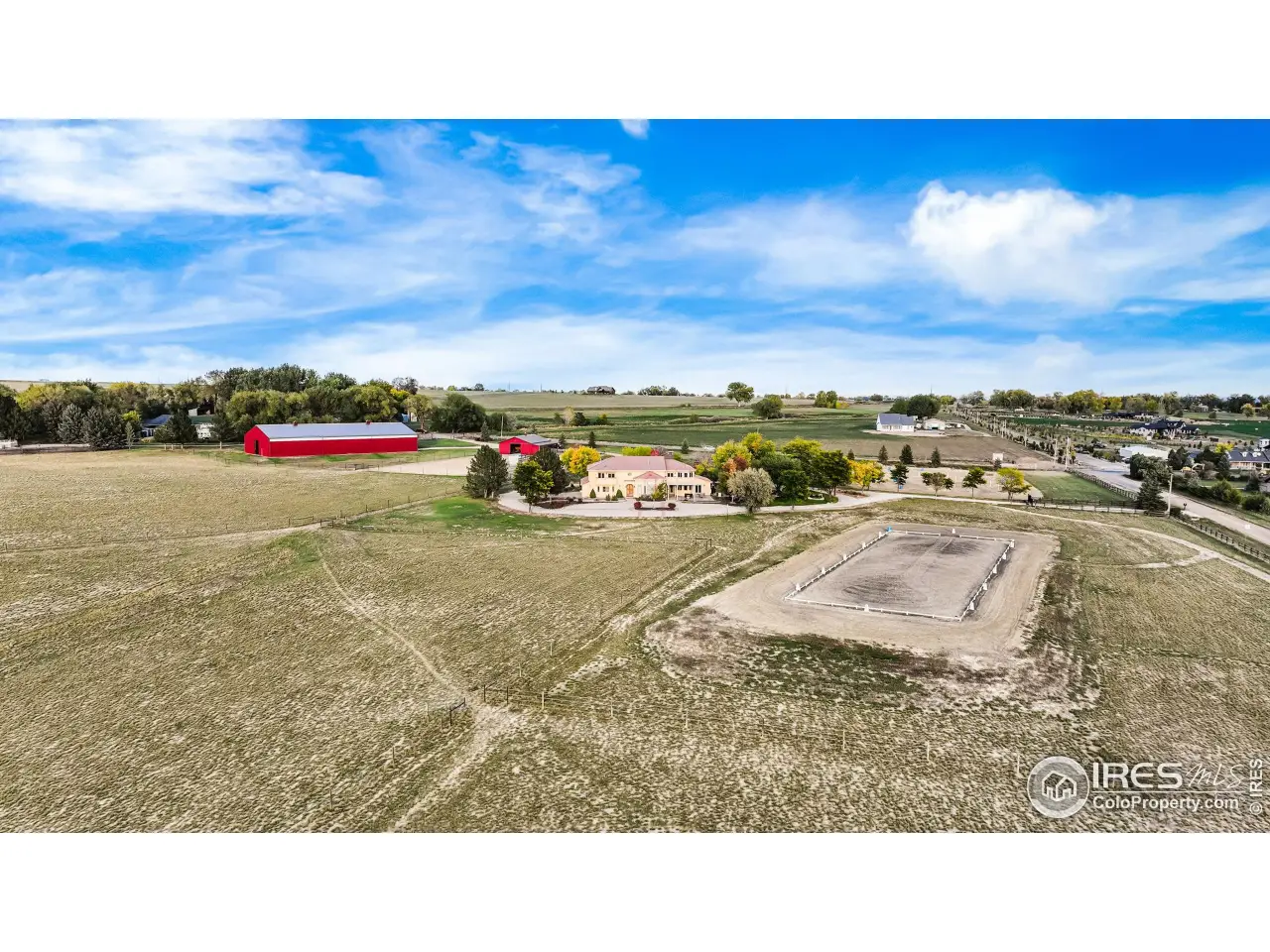 Set behind private gated entrance, this 35-acre equestrian estate perfectly captures the essence of Colorado living & mountain charm with stunning views. Originally built in 1988 & remodeled in 2015, home offers over 5,500 sf. Hand-scraped hardwood & tile flooring throughout-no carpet. Chef's kitchen w/custom soft-close cabs, granite counters, dual sinks, walk-in pantry w/wine frig & microwave, breakfast area & dining space w/bar seating & built-ins. Premium appliances-Wolf range w/pot filler, Miele side-by-side frig & dishwasher, KitchenAid under-cabinet drawers. Living room has soaring ceilings & stone fireplace while the foyer welcomes guests through arched wooden doors w/3 closets & 1/2 bath. Main-floor primary has 2 walk-ins, fireplace, arched ceilings, lit bookcases & luxurious bath w/custom cabs, dual vanities, large shower & private Toto washlet room. Upstairs, the 2nd primary has bay window, private balcony w/mountain views, walk-in & full bath. Adjacent bdrm opens to library w/antique gas fireplace & hidden behind built-in bookcase is secret wine room. Spacious office w/custom cabs & private balcony. 3-car garage w/220V power. Equestrian facilities include 75x145 indoor riding arena with lights, mirrors, premium footing & 14' overhead doors; 36x48 horse barn w/7 stalls (four active), concrete center aisle, sliding doors, covered overhangs, attached pipe runs & heated electric waterers. 3 large paddocks w/heated waterers adjoin barn area, 3 fenced pastures of approx 8 acres each. 20x60 meter outdoor riding arena w/sand & rubber footing, cross-country galloping track, & obstacle course-creating a true equestrian paradise for horse & rider alike. Zoned within the Left Hand Water District & equipped w/2 split leach fields & 1,500-gal septic tank, this estate delivers both luxury & practicality. Whether you're a serious equestrian, hobbyist, or simply seeking serene retreat surrounded by Colorado's natural beauty, this home offers unparalleled lifestyle.