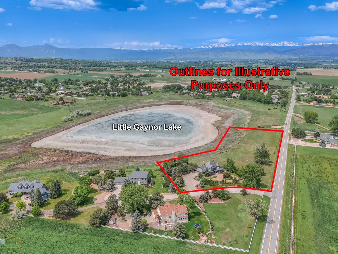 Seller is offering $30,000 for Loan Buydown and Closing Costs! This Exceptional Custom Home with Captivating Views is situated on Four Acres overlooking Little Gaynor Lake. Designed to feature the amazing views from all the living spaces and primary suite, you'll sense the quality and warmth of this home from the minute you arrive. Covered porches encircle the home and provide seamless indoor/ outdoor living. With unobstructed views of the foothills and the back range, every hour of the day has a changing panorama that leads up to amazing sunsets over the white capped peaks. Solid cherry floors flow throughout the entire home and its appealing floor plan. The spacious kitchen with quality appliances anchors the main level and is open to a light and bright family room and separate dining room, all with views and access directly to the covered porches and decks. A private office and cozy living room with a fireplace and abundant windows complete the main floor living areas. Upstairs, the captivating primary suite offers views to the West and North, a separate dressing room, fully remodeled bath with a huge walk-in shower, and ample closet space. A classic style study/ library features custom finishes and will want to make you want to sit down, relax, and enjoy the quiet. Don't miss the secret bookcase door that opens to one of the secondary bedrooms, which has its own small balcony over looking the lake. The large unfinished basement has a separate exterior entrance and offers valuable space for multiple potential uses. Beautiful mature landscaping surrounds this home, including a fully fenced garden area and shed for gardening enthusiasts. Bordering Open Space, this truly is a unique, special home and setting.