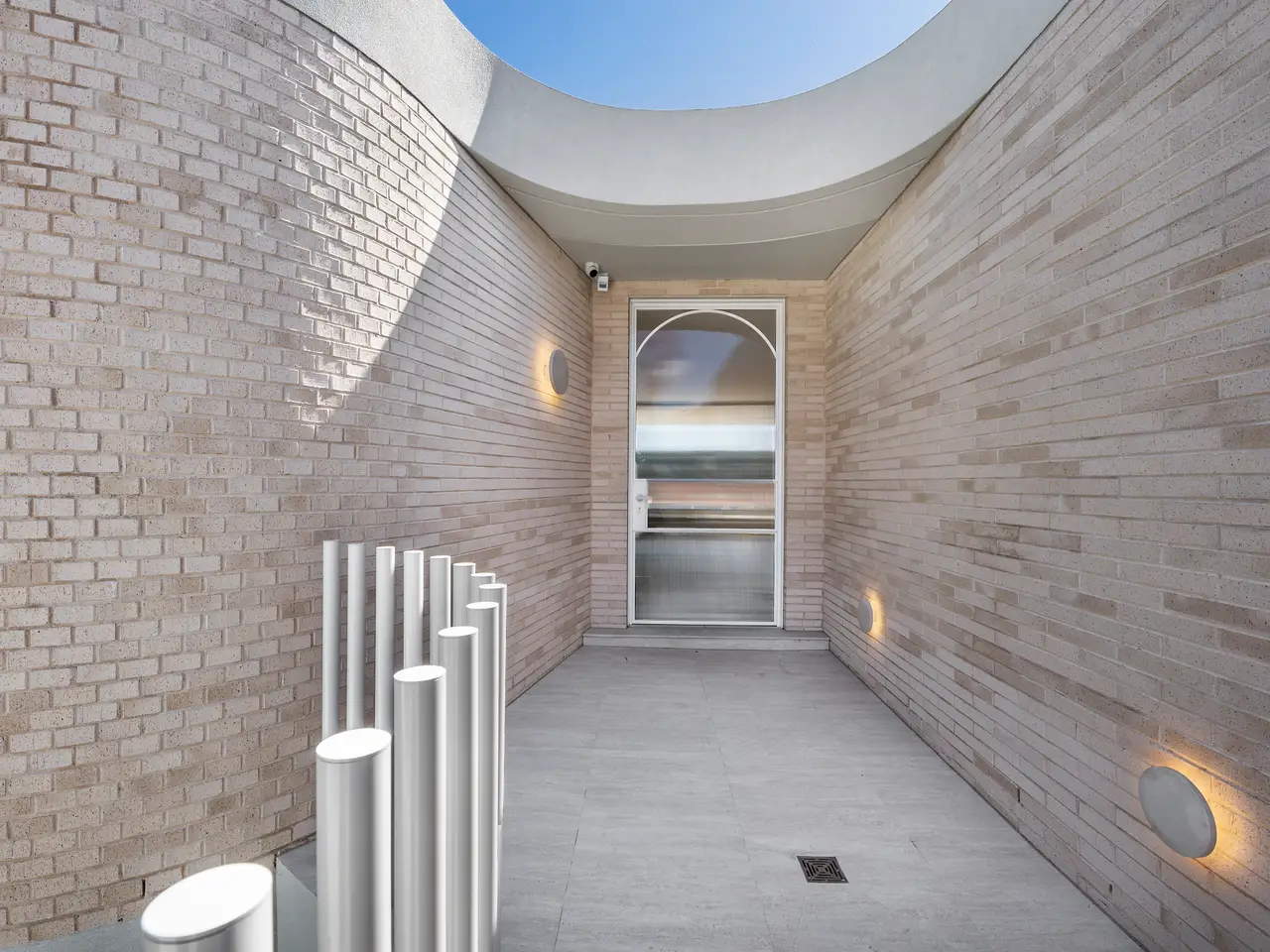 Poised above the calm waters of Woodford Bay, Maison Ronde is a triumph of architectural artistry by Stefan Lombardo. Curved walls, layered light, and natural textures of travertine, marble and oak define interiors of sculptural elegance. Murano glass lighting glows across sweeping spaces that open to serene water vistas, creating a home that feels both grounded and transcendent, meticulously constructed for those who see beauty in precision and calm in design. Every curve, garden contour and outdoor perspective has been composed with the same care as its interiors, uniting architecture and landscape into one cohesive masterpiece, set within a prestigious bay setting. - Elevated 20m frontage with panoramic Woodford Bay outlooks - Handmade Spanish brick façade with sculptural curved form - Italian travertine, marble and solid oak throughout interiors - Murano glass lighting, solid brass fittings and bespoke joinery - Expansive living with dual fireplaces enhanced by soaring ceilings - Gourmet gas kitchen with Miele appliances and butler's kitchen - Opulent verde marble bar with brass accents and Vintec wine fridge - Alfresco dining terrace, heated mosaic pool and sculpted gardens - Designer bathrooms with travertine, marble and fluted glass - Five chic bedrooms plus study configured as an optional sixth - Separate home wellness studio with private ensuite bathroom - Cobblestone drive to double garage with Tesla Gen-3 charger - Tranquil laneway for direct access to Woodford Bay waterfront