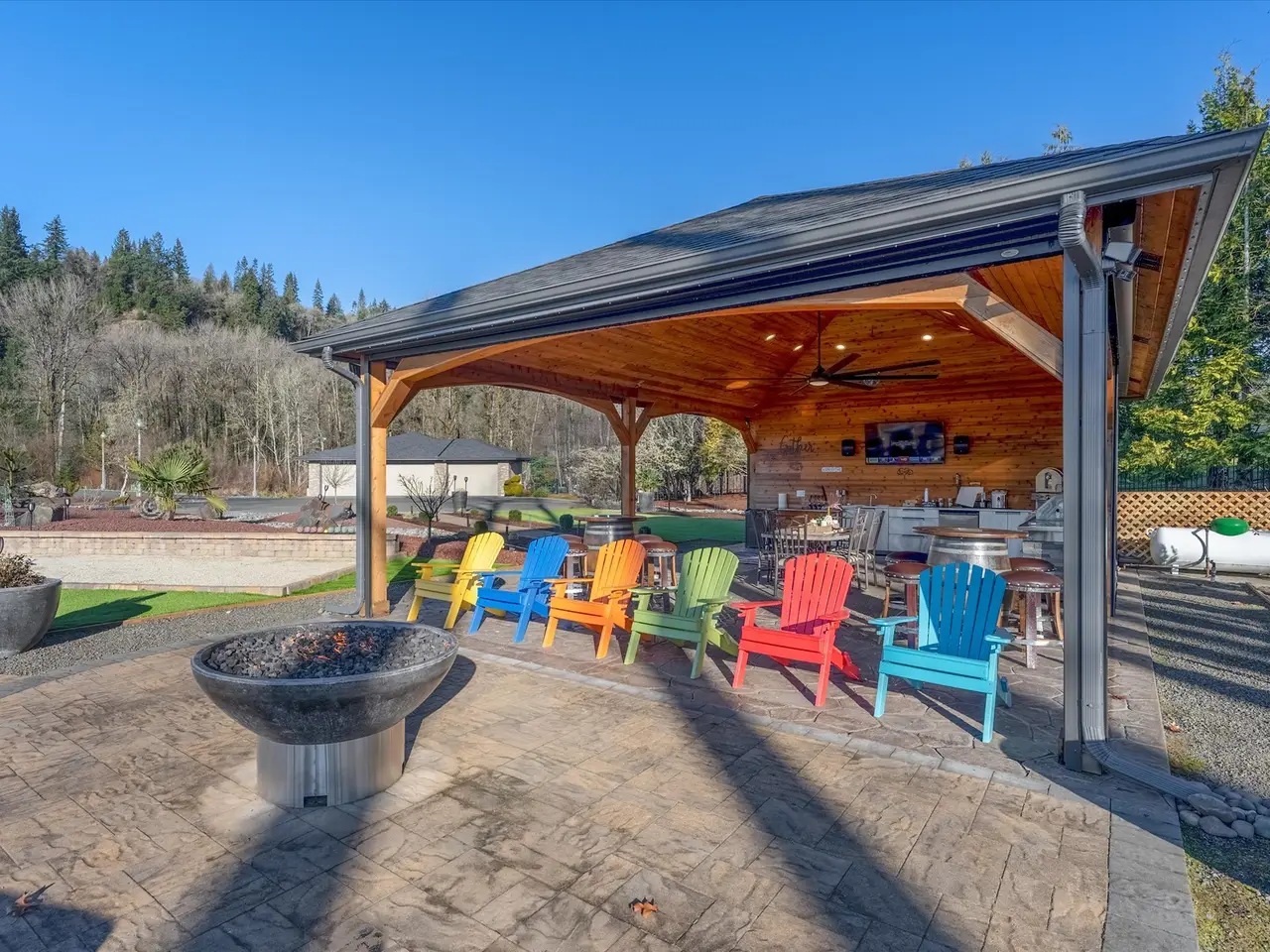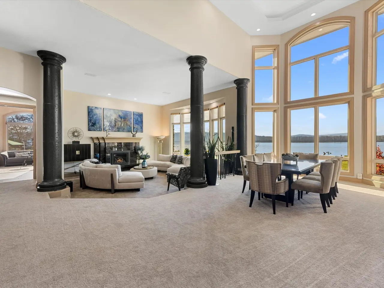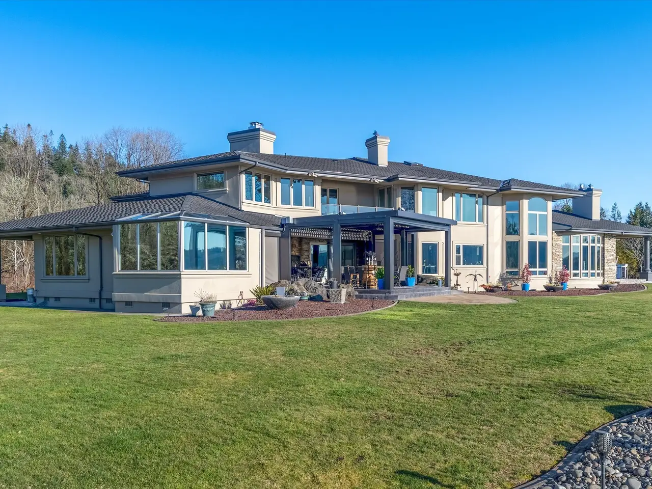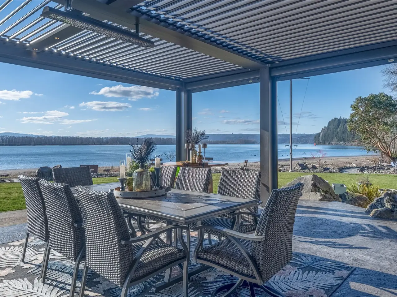 Stunning waterfront estate offers an unparalleled lifestyle, with 16 acres of privacy surrounded by water on three sides. Over 1,000 feet of sandy Columbia River beach and breathtaking views from nearly every room in the 7,280 sq ft home. Picturesque boardwalk leads to the 80-ft long boat dock, ideal for water adventures. Completely remodeled open kitchen is a chef’s dream with 3 ovens, quartz counters, and so much more. River front gazebo is perfect for hosting large gatherings with a full kitchen and the option to enclose-complete with playground, gas fire pit and more. 4 bedrooms, office, 2 versatile flex rooms and 5 bathrooms. Primary suite is an oasis of comfort you'll never want to leave. Garage parking for at least 10 cars and an RV.