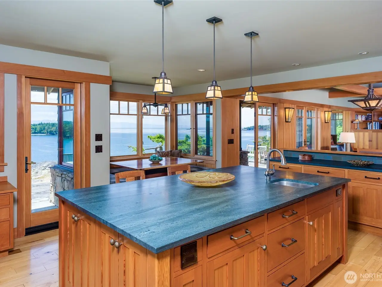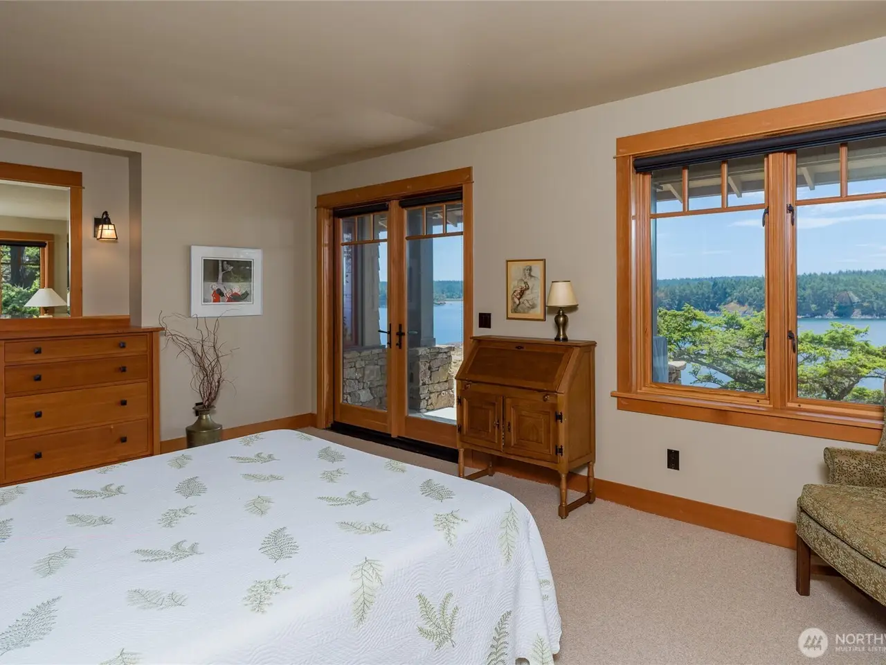 LOPEZ ISLAND LUXURY A rare blend of privacy, distinction & breathtaking views. This custom NW Craftsman sits on 27 waterfront ac overlooking MacKaye Harbor to Vancouver Is & OLympic Mtns. Designed for southern vistas, the 3BD/3BA home features madrona floors, banks of windows & clear fir cabinetry & finishes. Great Room centers on a stone fireplace with built-ins & view daybed. A chef's kitchen offers slate counters, double ovens, Wolf cooktop & breakfast nook. Two ensuite primary bedrooms with walk-in closets, one with covered deck. French doors open to sunny stone patio & eagle-eye views. Detached garage with studio above. Seasonal creek winds thru mature woods & pasture. Large shop/garage, fenced garden, fruit trees, chicken house & more.