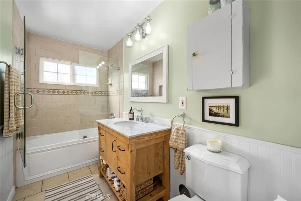 Downstairs primary bedroom with remodeled bath