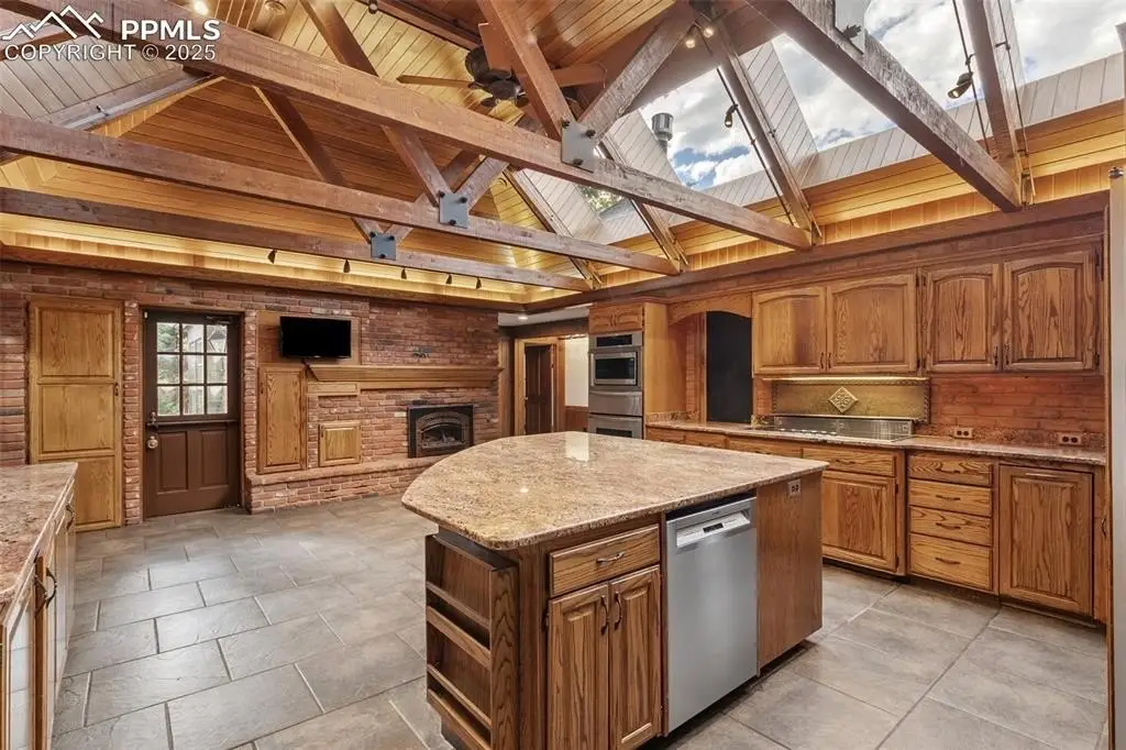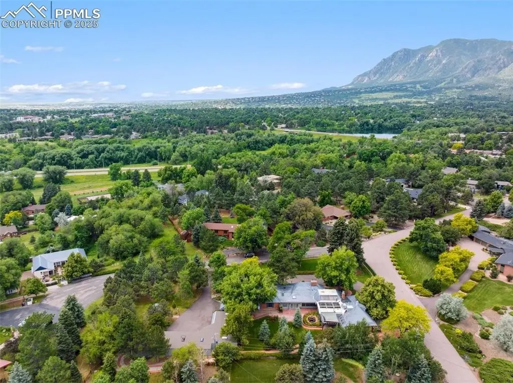 Welcome to this Broadmoor estate, nestled on 1.25 beautifully landscaped acres in one of Colorado Springs’ most prestigious neighborhoods. Boasting an impressive pedigree with only two owners, as the home was built in 1958! Tucked within a quiet neighborhood, the home is accessed via a gated circular driveway, providing both seclusion and standout curb appeal. Car enthusiasts will appreciate the incredible 16-car garage capacity, a true rarity. Designed for effortless entertaining, the home features a stunning panoramic folding door system that seamlessly connects the family room to one of several patios, blurring the lines between indoor and outdoor living. The entertaining kitchenette in the family room makes hosting guests easy, while the patios open to lush, mature landscaping that feels like your own private park. At the heart of the home lies a spacious, light-filled kitchen, featuring granite countertops, a large island with breakfast bar, beamed ceilings, and multiple skylights. A cozy fireplace stove adds character and warmth to this space. The primary suite retreat has its own sitting room, private wet bar, and walk-out to a deck. The 5pc bath offers dual vanities, a walk-in tub, and a separate shower. Two additional bedrooms in this wing share a Jack-and-Jill bathroom. The living and dining rooms each showcase their own fireplace, providing spaces for gathering. An office/study off the kitchen includes extensive built-ins and another fireplace stove, creating a productive workspace. A separate wing features an additional bedroom, a three-quarter bath, and access to an upstairs playroom, perfect for children, hobbies, or additional guests. With six fireplaces, and exceptional outdoor living spaces, this one-of-a-kind estate is a Broadmoor legacy, offering a truly coveted location.