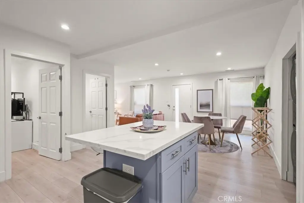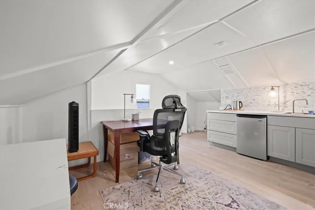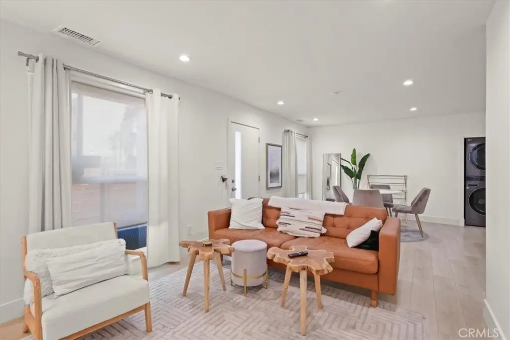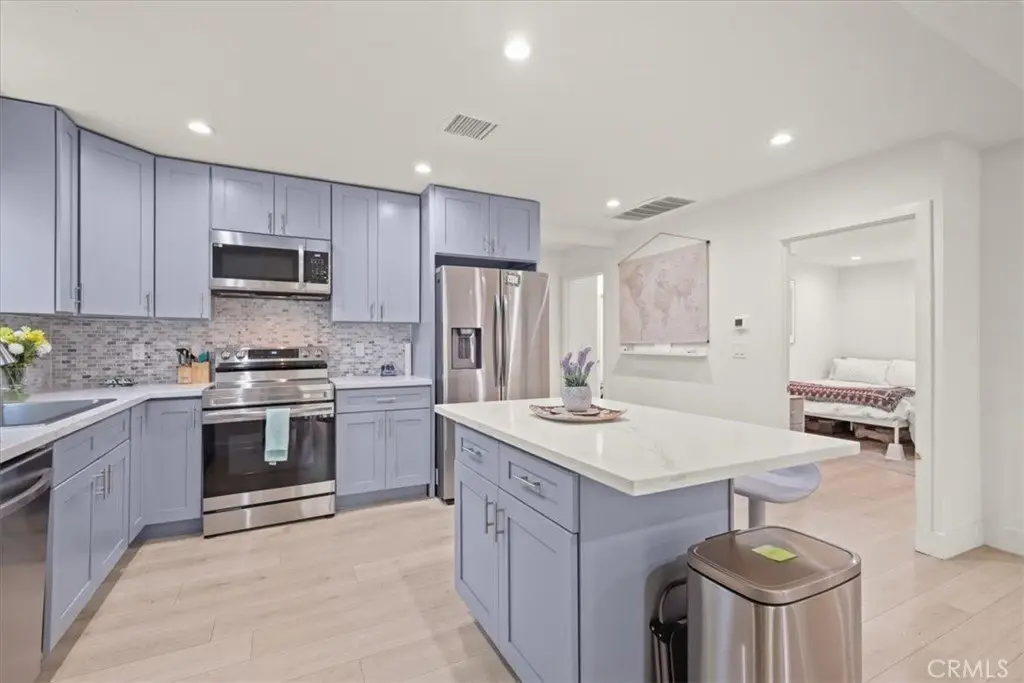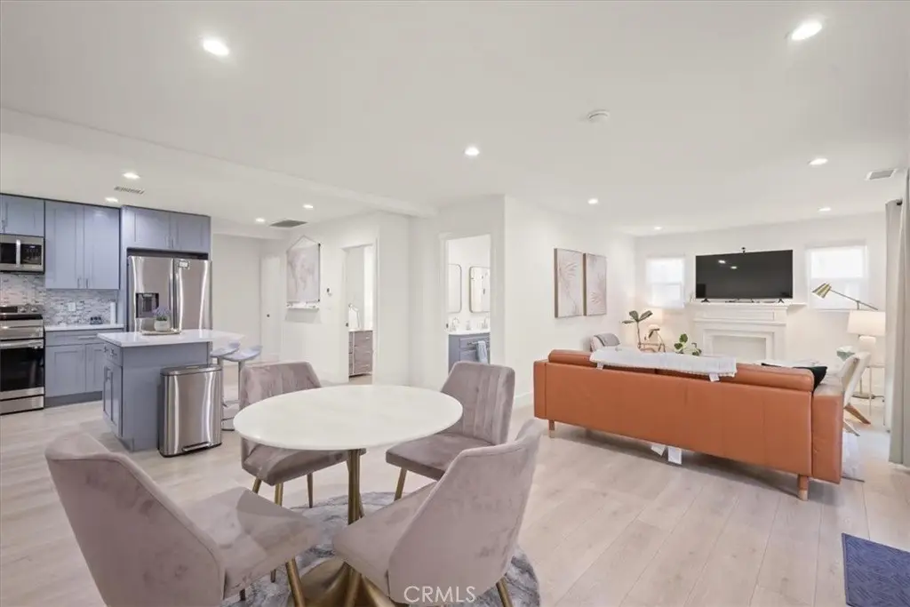 Welcome to this beautifully remodeled and fully fenced single story home, offering 3 bedrooms and 2 bathrooms, plus a private 1 bedroom, 1 bath attic conversion with its own entrance—perfect for guests, extended family, or short term rental income. Step inside to an open, light filled floor plan featuring a spacious living room with a fireplace, an inviting dining area, and an expansive kitchen designed for both style and function. The kitchen boasts a large center island, quartz countertops, abundant cabinetry, and stainless steel appliances including a stove, refrigerator, dishwasher, and microwave. The primary bedroom offers a private ensuite bath, while two additional bedrooms share a full hallway bathroom. Throughout the home, you’ll find durable vinyl plank flooring, recessed lighting, newer windows, central A/C and heat, a tankless water heater, and a convenient laundry closet. The upstairs converted unit provides added versatility with a comfortable living space, bedroom, kitchenette with dishwasher, and a stylish bathroom featuring a barn door. Can easily become part of the main residence. Outdoors, enjoy a private wood deck perfect for relaxing or entertaining, and a gated driveway with parking for up to three cars. Situated in a desirable Mid-Wilshire location, you’ll be minutes from Paramount Studios, Larchmont Village, Hollywood, the Wilshire Country Club, DTLA, Koreatown, and the 101 Freeway. Whether you’re seeking a move-in-ready residence with modern amenities or an investment opportunity with income potential, this home offers exceptional value in a prime location.