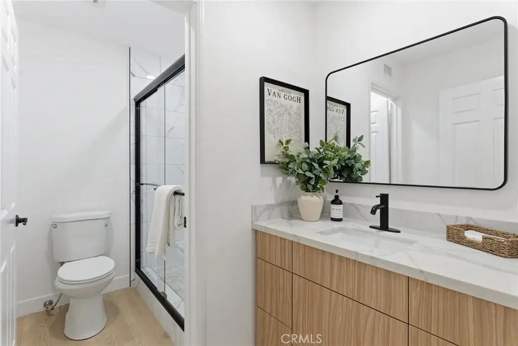 Sophisticated design and effortless comfort converge in this impeccable, newly remodeled 2-bedroom, 2-bathroom condo in the heart of Westwood. Flooded with natural light, this expansive condo boasts soaring ceilings, wide-open living spaces, and sleek modern finishes that exude understated elegance. A grand living and dining room are designed for both intimate gatherings and stylish entertaining. Floor-to-ceiling windows frame the residence in light, enhancing the sense of scale and openness throughout. The chef-inspired kitchen showcases brand new appliances, custom cabinetry and countertops. The luxurious primary suite is a private sanctuary, featuring a spa-like en-suite bath and a private balcony to enjoy your morning coffee or evening glass of wine. The generously sized second bedroom offers versatility for guests or a refined home office. Additional upgrades include new flooring, fresh paint throughout, new light fixtures, new bathroom cabinets and tile, in-unit laundry room with additional storage.  Building amenities include secured entry, 2 side-by-side parking spaces, on site guest parking, storage unit, and EV charger. A true turnkey retreat in a boutique building of only 15 units. This rare Westwood find is perfectly situated minutes from world-class dining, high-end shopping, Westwood Village, UCLA and Beverly Hills.