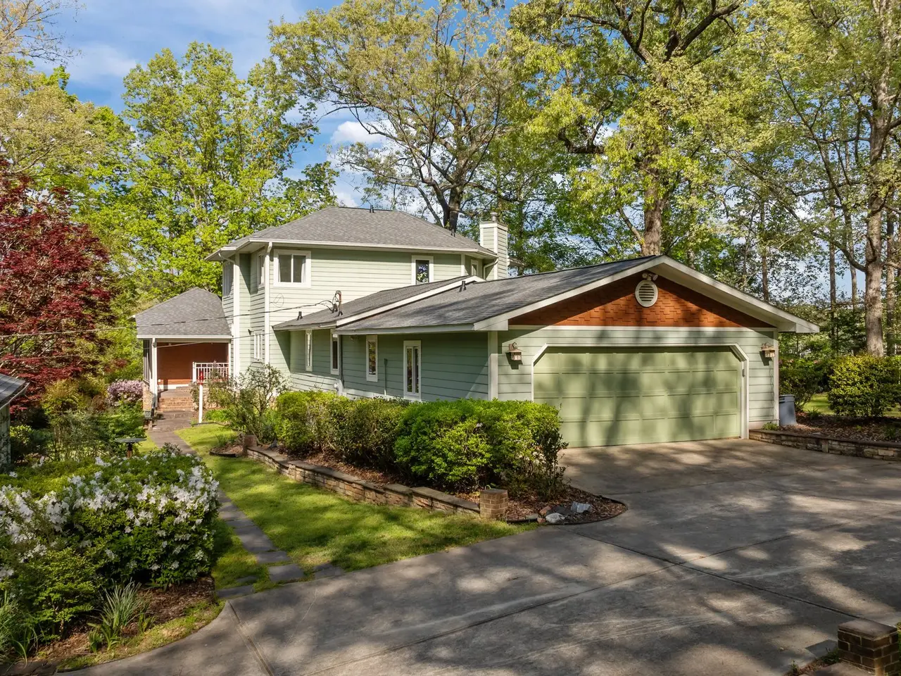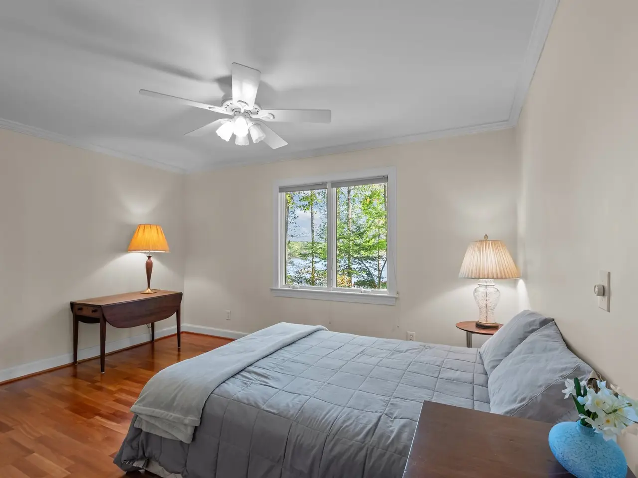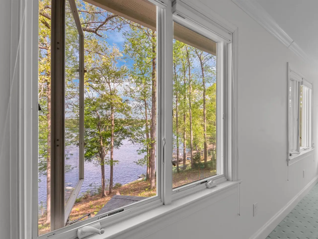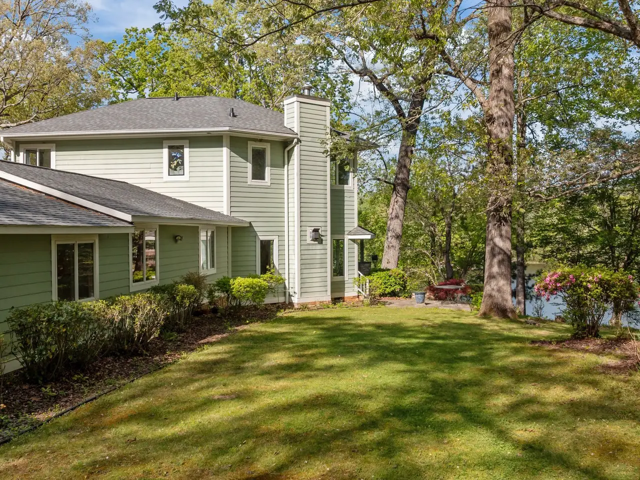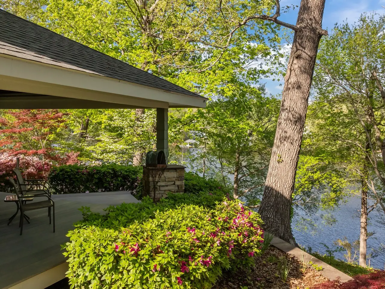 Waterfront living at its finest with this gorgeous 4-bedroom, 3-bathroom home situated on a beautifully landscaped expansive 1-acre lot! Enjoy panoramic lake views from so many rooms, just incredible! The grand living room features a stacked stone fireplace, and a breakfast area, complete with coffered ceilings, Anderson windows, and custom millwork galore. The spacious layout includes two main floor Bedrooms, one with an ensuite full Bathroom, a formal Dining room, a Home Office, as well a large Laundry room with ample storage cabinets. Upstairs you'll find two additional Bedrooms offering room for everyone. Outdoors, the property is a gardener's dream, with vibrant landscaping and serene lakefront vistas. The detached 1100 square foot Workshop with multiple rooms, two mini-split HVAC systems, and an additional third-car garage bay offers incredible space for billiards, hobbies, a playroom, and plenty of areas for storage.Additional highlights include a Brand-New Roof (2025) on both the Home and the detached 1100 square foot Workshop. All of this and it's in close proximity to the community entrance. Located in a gated community with top-tier amenities like boating, fishing, beaches, pickleball, and access to The River Golf Club just minutes away. Each residence also includes two free golf memberships!