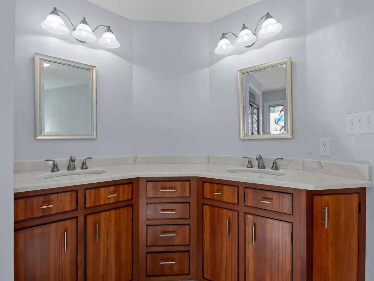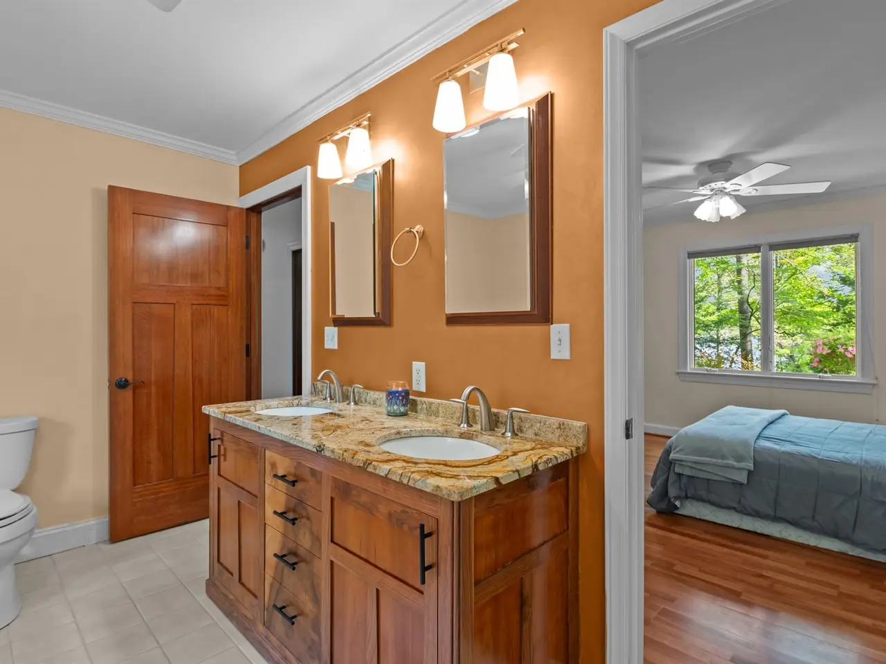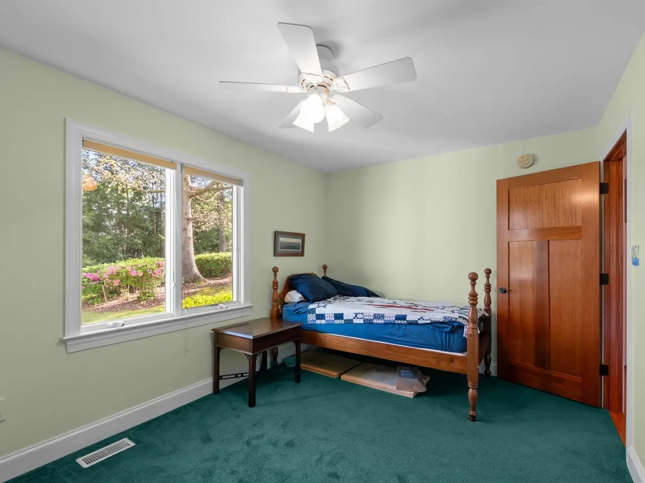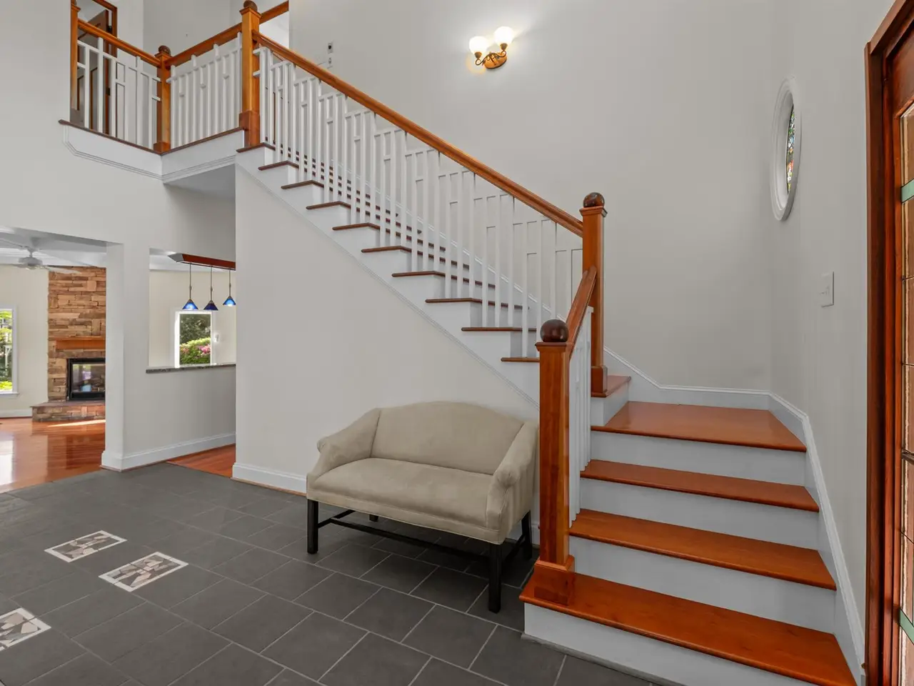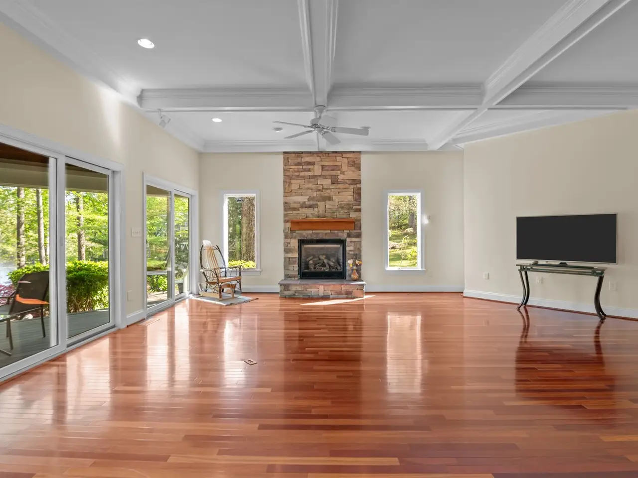 Waterfront living at its finest with this gorgeous 4-bedroom, 3-bathroom home situated on a beautifully landscaped expansive 1-acre lot! Enjoy panoramic lake views from so many rooms, just incredible! The grand living room features a stacked stone fireplace, and a breakfast area, complete with coffered ceilings, Anderson windows, and custom millwork galore. The spacious layout includes two main floor Bedrooms, one with an ensuite full Bathroom, a formal Dining room, a Home Office, as well a large Laundry room with ample storage cabinets. Upstairs you'll find two additional Bedrooms offering room for everyone. Outdoors, the property is a gardener's dream, with vibrant landscaping and serene lakefront vistas. The detached 1100 square foot Workshop with multiple rooms, two mini-split HVAC systems, and an additional third-car garage bay offers incredible space for billiards, hobbies, a playroom, and plenty of areas for storage.Additional highlights include a Brand-New Roof (2025) on both the Home and the detached 1100 square foot Workshop. All of this and it's in close proximity to the community entrance. Located in a gated community with top-tier amenities like boating, fishing, beaches, pickleball, and access to The River Golf Club just minutes away. Each residence also includes two free golf memberships!