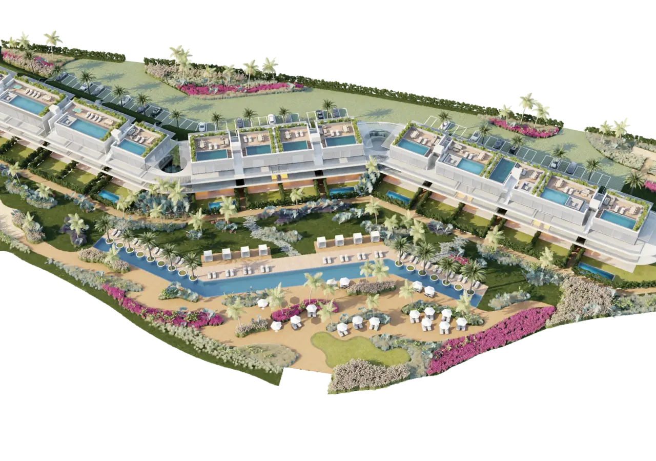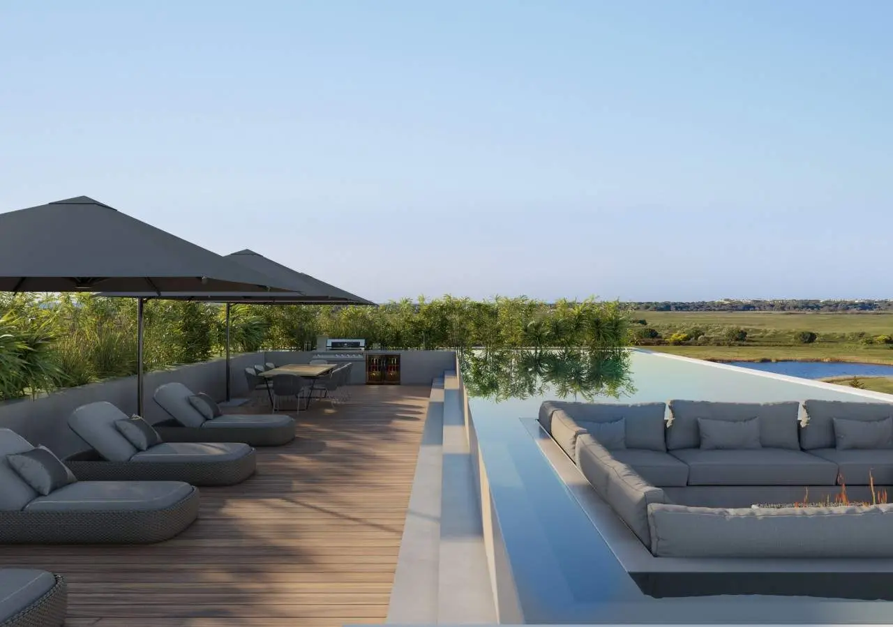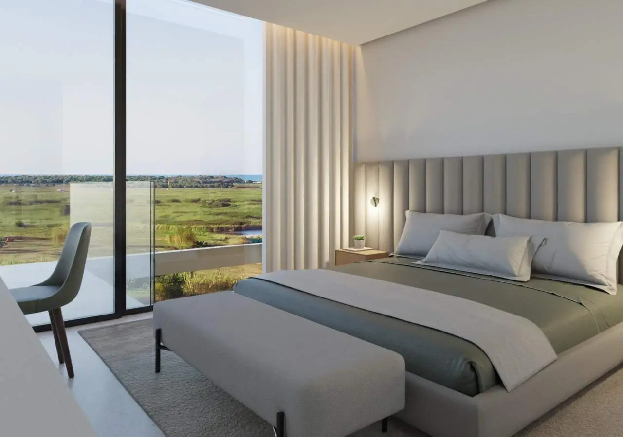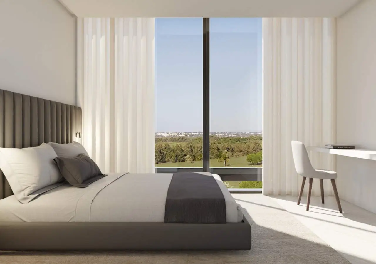 A gated community of 45 luxury apartments that aims to be among the best of its kind in Portugal. The property has an outstanding location in the Vilamoura Resort and presents a unique environment between water channels and golf courses, with the sea as a backdrop. Only 2 km from the center/marina of Vilamoura and 500 metres from three of the five Vilamoura golf courses. Everything to exchange your car for a bicycle or to enjoy a relaxing walk in complete harmony with nature. Thoughtfully planned for a balanced and sustainable use, this one-of-a-kind site has a building implantation area of only 3000 m2 on a plot of more than 22,000 m2, freeing up the space required to enjoy a large green area, which is uncommon today. The project itself is of a very contemporary architecture, with generous glazed surfaces, minimalist windows up to the ceiling, spacious balconies with dining area and lounge. CHARACTERISTICS:Area: 143 m2 | 1 539 sq ft Bedrooms: 3 Energy efficiency: A