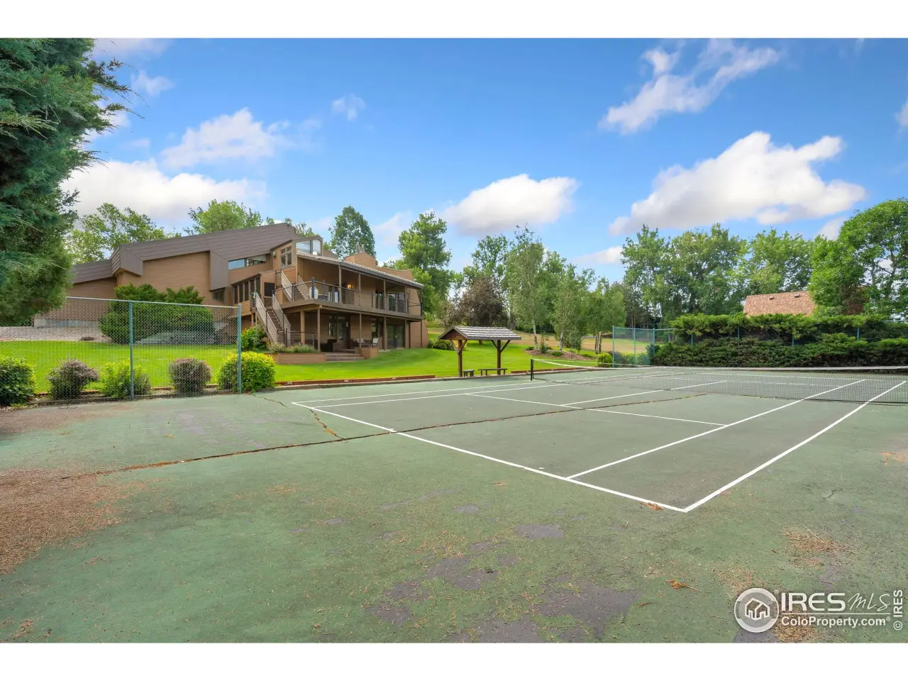 Welcome to Echo - Nestled against the stunning backdrop of Longs Peak, Echo is a one-of-a-kind, custom-designed home that artfully blends architectural beauty with natural surroundings and modern comfort. This 4-bedroom, 4-bath residence is thoughtfully crafted for both everyday living and stylish entertaining. Elegant herringbone parquet flooring flows into an expansive family room with a built-in wet bar. The formal dining room features custom buffet counters and cabinetry-perfect for hosting! An updated chef's kitchen offers abundant counter space, a large center island, double ovens, and panoramic mountain views that elevate every meal. Adjacent to the kitchen is a stunning two-story, south-facing atrium that functions as both a serene retreat and a passive solar heating source in the winter. A versatile main-floor office/bedroom includes an attached 3/4 bath, ideal for guests or work-from-home needs. Upstairs, the primary suite is a peaceful sanctuary with incredible mountain views and direct access to the upper solarium level. The spa-inspired bathroom features double vanities, a shower, and a jetted soaking tub room. Two additional bedrooms share a Jack-and-Jill bathroom and come complete with built-in dressers and desks. The walk-out basement is built for entertainment, leading to a patio that overlooks private tennis courts and lush landscaping. Included in the sale is a second lot featuring a separate one-car garage with a workshop area and a coveted Little Thompson Water Tap! Eco-Conscious Living at Its Finest, features three passive solar systems: A two-story solarium; Solar hot water panels; and a traditional Trombe wall. To keep things cool in the summer, mini-split systems provide efficient, zoned cooling. During the winter months, cozy up by one of two charming pellet stoves. Don't miss your opportunity to own this truly special home that balances nature, innovation, and timeless design. Call today to schedule your private tour of Echo!