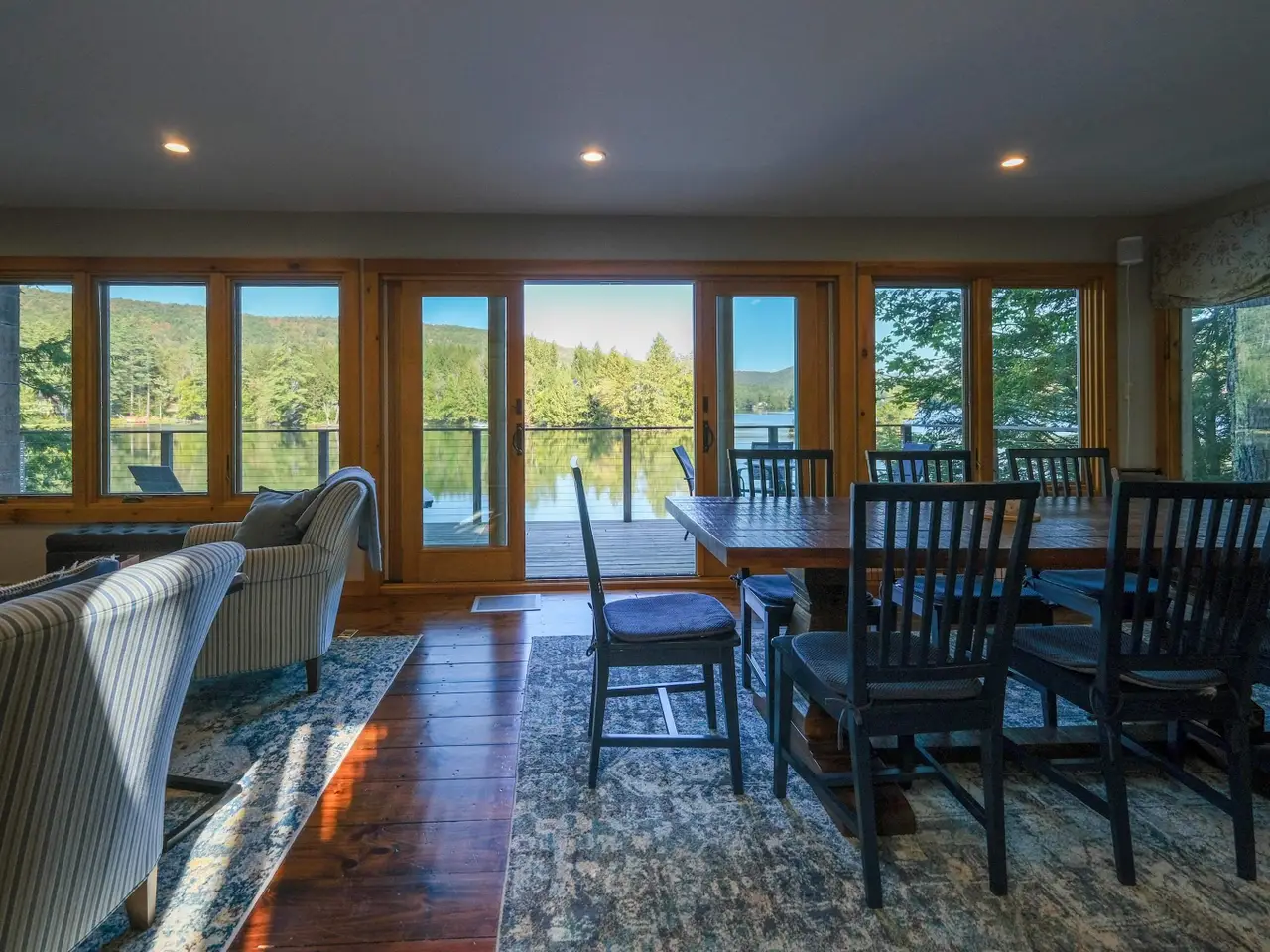• Wall of glass with lake views