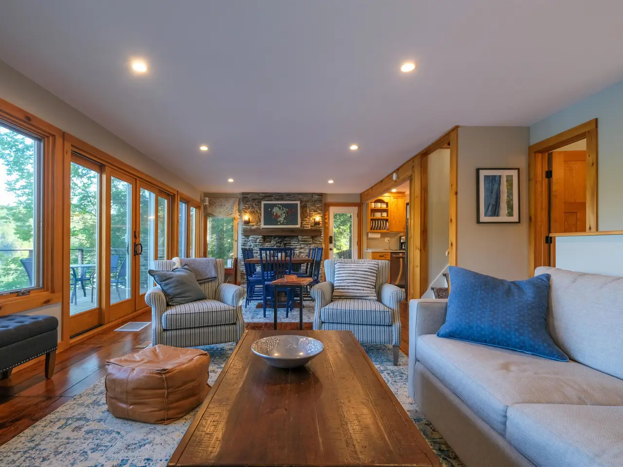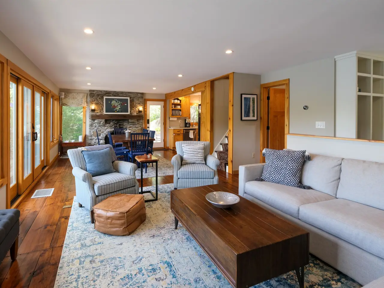 • Floor-to-ceiling stone fireplace