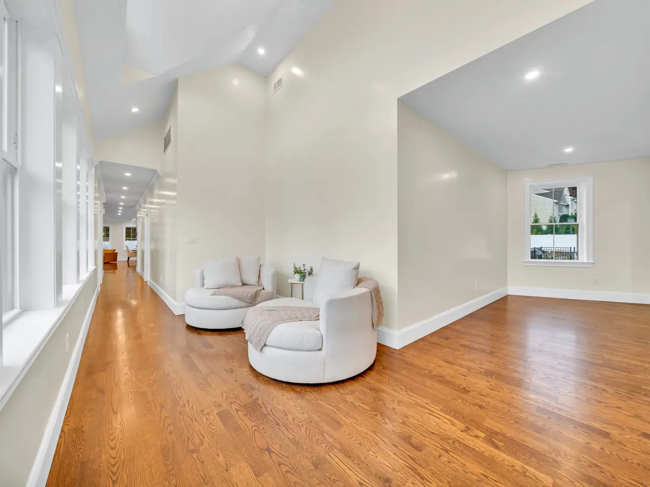 EXPERIENCE MODERN SOPHISTICATION IN THIS EXQUISITELY RENOVATED LYNNFIELD CONTEMPORARY! Set on nearly an acre, this 4-bedroom, 3 full & 2 half bath home offers over 5,200 sq. ft. of refined living space. The grand foyer opens to sun-filled rooms with hardwood floors, crown molding, and an inviting fireplaced living room that flows into the dining area and gourmet kitchen featuring custom cabinetry, quartz countertops, and premium Wolf appliances. The first-floor primary suite is a serene retreat with a spa-inspired bath, soaking tub, and double vanity. The finished lower level is perfect for entertaining with a wet bar, gym, and media room. Multiple washer and dryer hookups add flexibility for modern living. Outdoor highlights include an in-ground pool, patio, and deck for relaxation. Some exterior features, including the cabana and second garage, remain under construction. DON’T MISS THIS INCREDIBLE OPPORTUNITY TO OWN A LUXURY HOME IN LYNNFIELD! CHECK OUT THE BEFORE AND AFTER PHOTO!