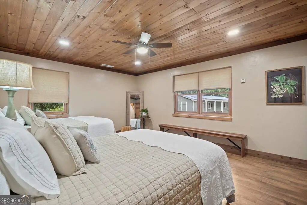 WOW! WELCOME TO YOUR VERY OWN COUNTRY SIDE PARADISE SURROUNDED BY HUNDREDS OF WOODED ACREAGE, JUST 12 MILES FROM DOWNTOWN MADISON. THIS IS SUCH A VERSATILE PROPERTY! SUITED FOR A SINGLE FAMILY HOME OR FARM, BUT, IF YOU'RE DREAMING OF A FAMILY RETREAT, FARM STAY, CORPORATE EVENT SPACE, WEDDING VENUE OR A QUIET "GET-A-WAY" THEN THIS IS FOR YOU! THE MAIN LODGE IS BEAUTIFULLY RESTORED WITH 4 BEDROOMS ON THE MAIN FLOOR. THE FOYER ENTRANCE HAS SOARING VAULTED CEILINGS & A BAR TO GREET YOUR GUESTS. THERE'S A LARGE STONE FIREPLACE IN THE FAMILY ROOM, AN EXTRA LARGE KITCHEN WITH ABUNDANT CABINETRY, AND A DREAMY LAUNDRY ROOM WITH SCENIC VIEWS. UPSTAIRS HAS TWO MORE BEDROOMS AND ADDITIONAL "FLEX" SPACES ATTACHED, PERFECT FOR GUESTS THAT NEED A LITTLE MORE SLEEPING ROOM. THE BEST PART! THERE ARE FIVE GUEST COTTAGES FIT FOR A POTTERY BARN AD! COTTAGES 1&2 ARE ATTACHED TO THE MAIN HOUSE JUST OFF THE PORCH. STEPS AWAY ARE COTTAGES 3&4 THAT ARE FULLY EQUIPPED WITH A LIVING ROOM, EN-SUITES & KITCHENETTES. COTTAGE 5 IS THE LARGEST & IT BOATS A LARGE LIVING AREA, EN-SUITE AND KITCHENETTE W/ TWO PATIOS. THE PROPERTY IS PERFECT FOR FRONT PORCH SITTING ON THE WRAP AROUND PORCH WHILE YOU ADMIRE MATURE OAK TREES AND THE SOUNDS OF WILDLIFE. THIS ALL SITS ON A PRIVATE 12 ACRES. YOU HAVE TO SEE IT IN PERSON TO EXPERIENCE!