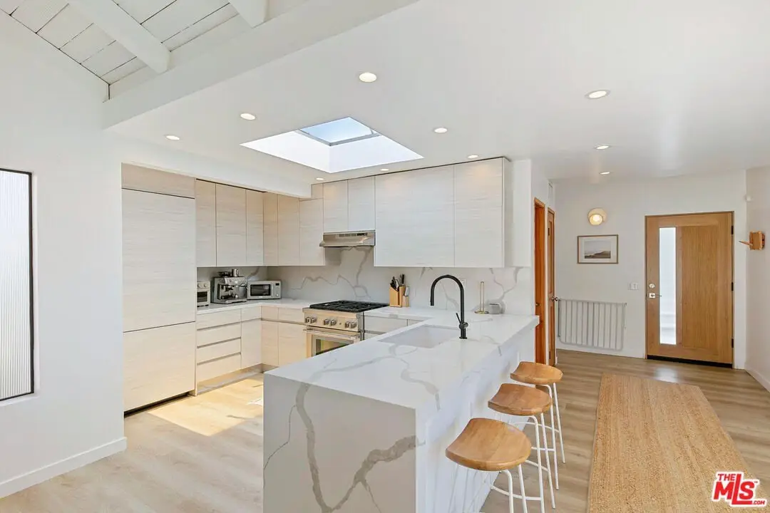 Incredible private Malibu retreat nestled in the hills of El Nido, just minutes from the beach.. This stylish home blends modern architecture with warmth and natural light. Vaulted ceilings, exposed beams, and expansive windows frame breathtaking ocean and mountain views. The open living area flows effortlessly from the cozy fireplace to a sunlit patio, perfect for lounging and entertaining. The chef's kitchen features new appliances, a center island and skylights that bring the outdoors in. The serene primary suite offers dual closets and a beautifully renovated en-suite bath. Two additional bedrooms provide flexibility for guests, a home office, or a nursery. A separate bonus room makes the perfect private office or creative space, and a detached studio serves as a perfect guest suite. Outside, enjoy peaceful garden spaces, a hammock strung between palms, and a private spa with hillside views. Located just minutes to Malibu's best beaches, hiking and dining. Offered for purchase or lease.