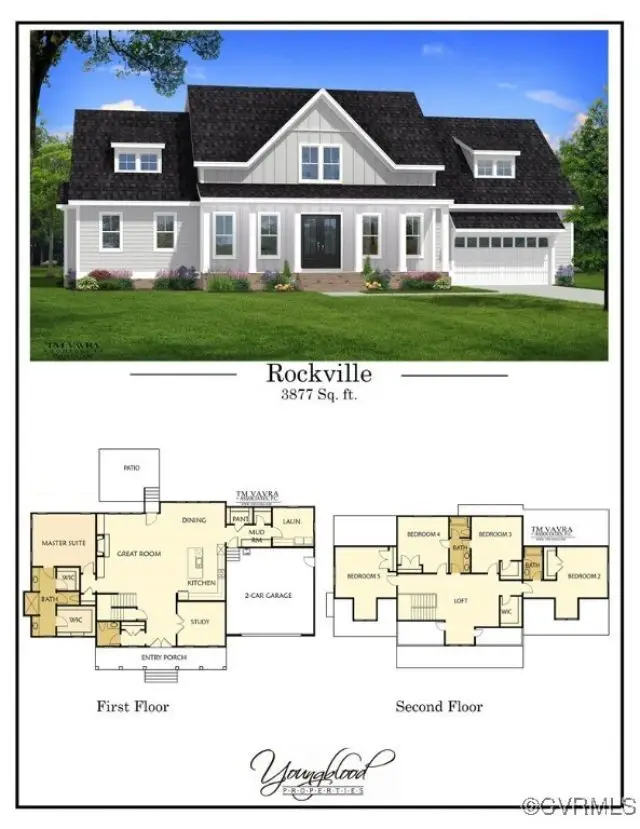 Everyone is looking for that unicorn... a beautiful new home on a nice TWO ACRE lot that is close to Short Pump. Well this unicorn actually exists! Located in about the most convenient spot in Manakin-Sabot that one could imagine and backing to hole 7 of the Sycamore Creek Golf Course, the Rockville plan, built by Youngblood Properties LLC, is so versatile with lots of flexible spaces. The first spacious FIRST FLOOR OWNER'S SUITE features massive dual walk-in closets and a luxury private bath with tiled shower. The great room is oversized for large furniture and opens directly to the kitchen and huge dining area. An office off of the foyer can easily be converted into formal dining room. The spacious kitchen as miles of countertop workspace and white cabinets, granite tops, stainless appliances, a huge island, tiled backsplash and much more. The large laundry room has plenty of space for an office area or tons of built in storage space. The second floor is a flexible as the first. At the top of the stairs is a large loft with a variety of uses. All four bedrooms have large closets and three have direct bath access. Plenty of storage. Enjoy the outdoors on the inviting front porch or enjoy the view of the golf course from raised covered patio on the rear. Don't miss your chance at a unicorn! This plan is currently UNDER CONSTRUCTION with a projected delivery date of late 2025. Home is now framed and walkable. BUY NOW WHILE YOU CAN STILL SELECT FINISHES!!