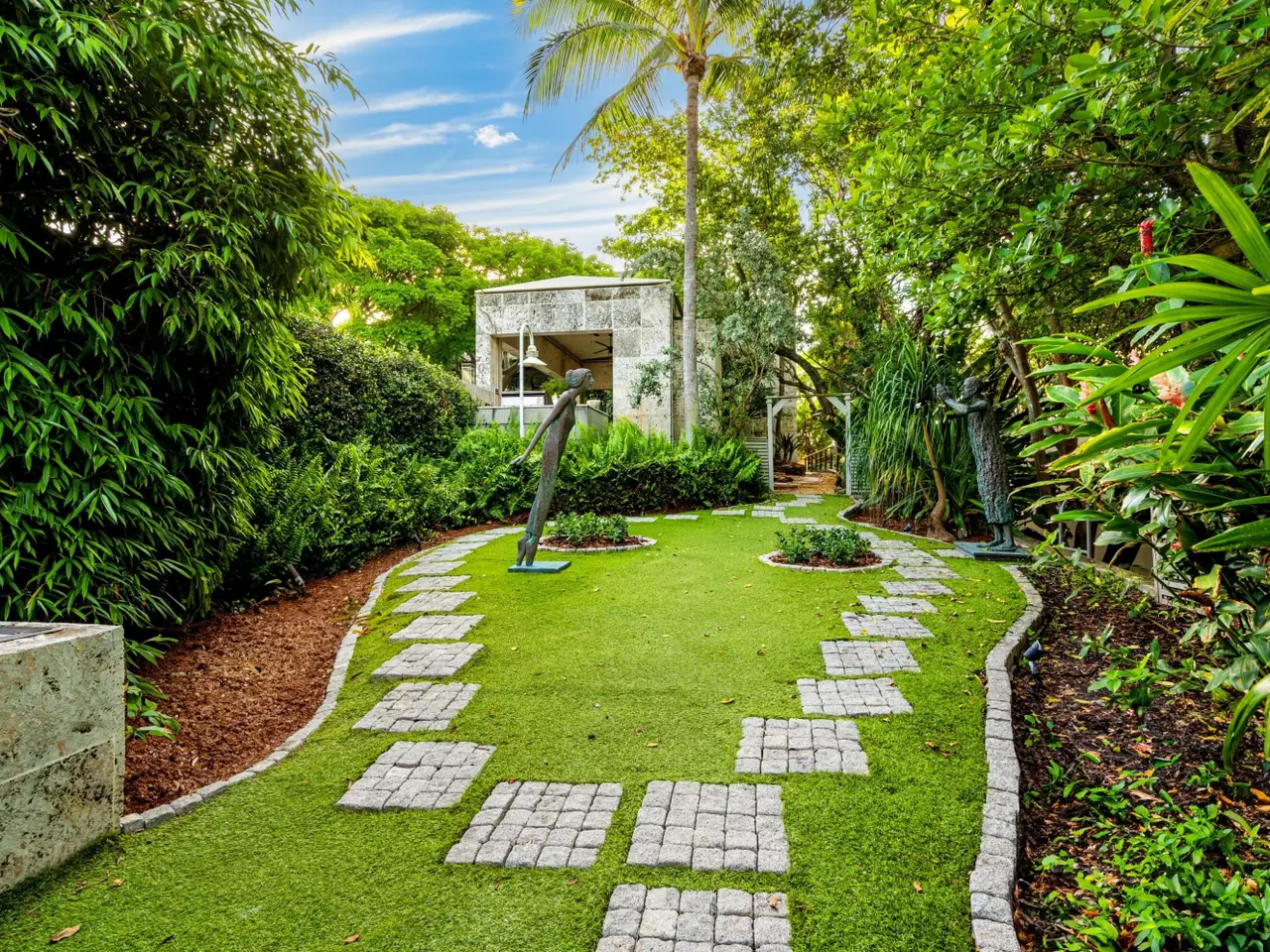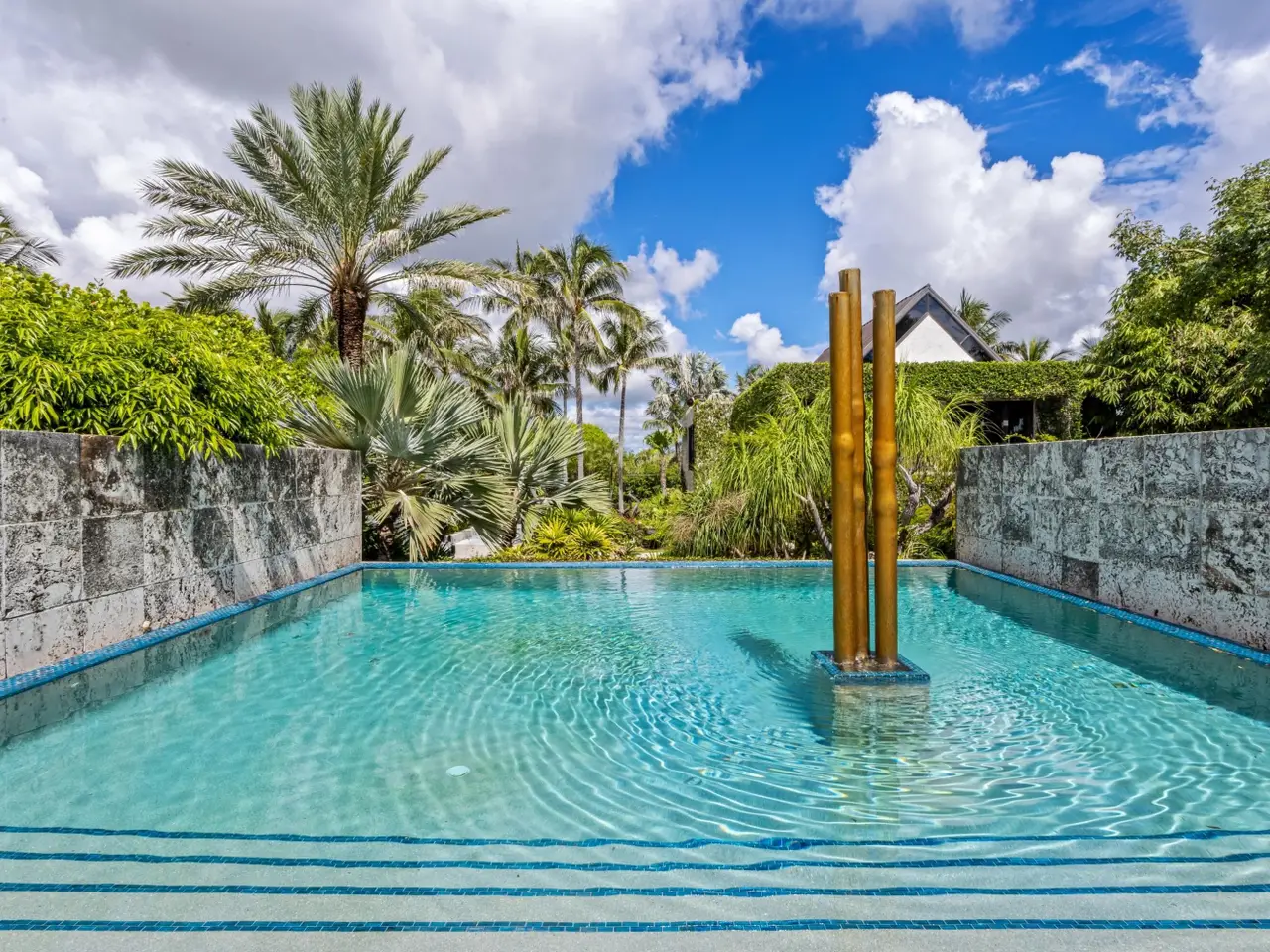 With renovations now complete, this high-elevation, coquina-clad estate presides over 150 feet both on the ocean and Intracoastal. A stunning collaboration between an award-winning architectural firm and renowned landscape architect, this luxe showcase captures the essence of opulence and excellence, with lofty ceilings, ocean-view window walls, a koi pond, sculpture gardens and cascading fountains.