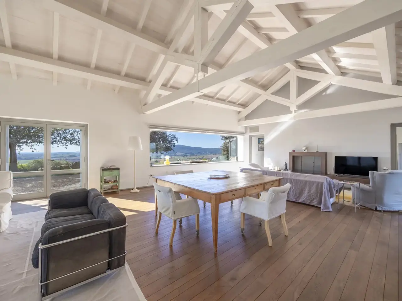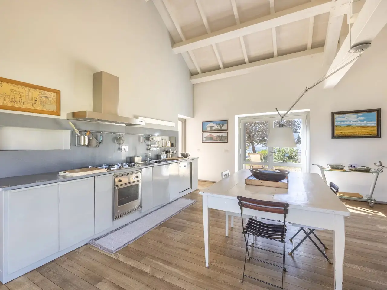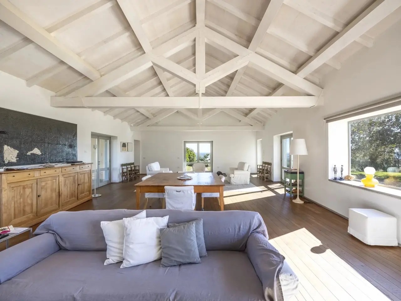 In one of the most authentic and unspoiled landscapes of Tuscany, among the gentle Maremma hills and just a few kilometers from Capalbio, stands this extraordinary villa, nestled within an enchanting olive grove. A residence that captivates with its dominant position, offering breathtaking views of the sea and the island of Giannutri: a panorama that changes color throughout the day, glowing fiery red at sunset.A haven of elegance and serenity, where every detail reflects perfect harmony between nature and architecture. The interior spaces blend harmoniously with the outdoors through pergolas and patios that extend the home’s living areas into the open air, creating a flawless continuity between inside and outside.Upon entering, a grand living room with trussed ceilings and large windows opening on three sides welcomes you with light and space. Here, the sitting area, fireplace corner, and dining area coexist in an atmosphere of refined conviviality. Adjacent lies the spacious eat-in kitchen with a large table—the beating heart of the house—inviting shared moments of taste and familiarity.From the living area, one accesses two extraordinary outdoor spaces: on one side, the panoramic garden with sea view; on the other, a private and scenic courtyard with pergola, swimming pool, and secluded garden—perfect for enjoying the Tuscan summer in total privacy.The elegant and functional sleeping area, includes a master suite with walk-in wardrobe and en-suite bathroom, two additional double bedrooms, a second bathroom, and a charming room in the tower ideal as a fourth bedroom or a study with a view. The two wings of the villa are connected by a bright glass hallway that could become a splendid library or art gallery.Built with high-quality materials and a contemporary taste that harmonizes beautifully with tradition, this property is a true gem of the Maremma—a place of the soul where the peace of the countryside meets the beauty of the sea.The property is accessed through a gate that opens onto a private driveway winding through the olive grove.An exclusive retreat for those seeking authenticity, nature, and timeless beauty.