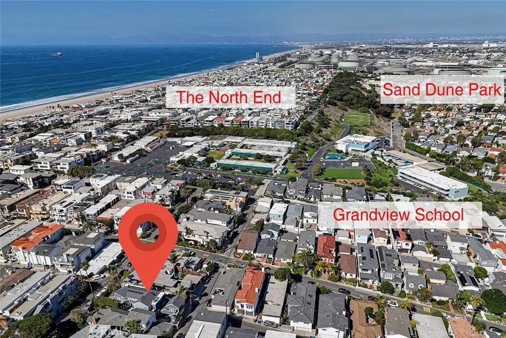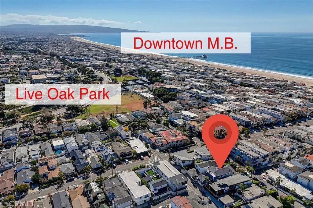 This exceptional home sits on an oversized, street to alley lot offering multiple outdoor areas and indoor/outdoor living spaces rarely found in sand section lots. The many skylights and high ceilings drench this home in natural light both upstairs and downstairs. The living room is welcoming, large and sunlit. The very spacious dining room features a floor to ceiling cooled wine storage. The kitchen features granite counters, stainless appliances, family dining and a breakfast bar all opening to a family room perfect for gathering at the end of the day. There are 4 bedrooms, all upstairs, including a primary suite with built-ins, remodeled bath and walk-in closet, plus 3 bedrooms and another full bath. Above the 2 car garage is a "flex" room with its own 3/4 bath and storage - might be a 5th bedroom, office, gym, a guest suite or even used for additional income if converted to an ADU (with city approval - BTV). The choice is yours. This home is ideally situated in the middle of the sand section, granting easy and convenient access to award winning Grandview School, making it effortless for families with school aged children. Multiple parks (including a dog park), and our stunning beach are only minutes away, inviting you to enjoy fun, sun, sand and The Strand at your leisure. You are also minutes to downtown MB, with its array of shops and restaurants, as well as the boutique stores of North MB. For commuters, freeway access and LAX are minutes away. Multiple updates, upgrades and improvements, (new roof, fresh paint (interior and exterior), refinished floors and more) ensure this home is beautifully maintained and move-in ready. So park your car. This wonderful beach town is waiting for you to call it home.
