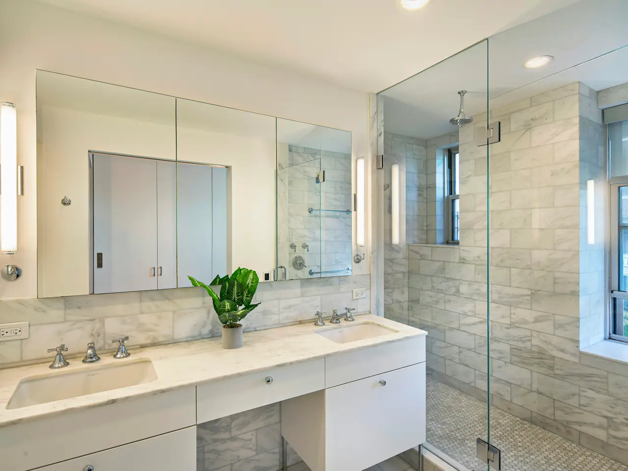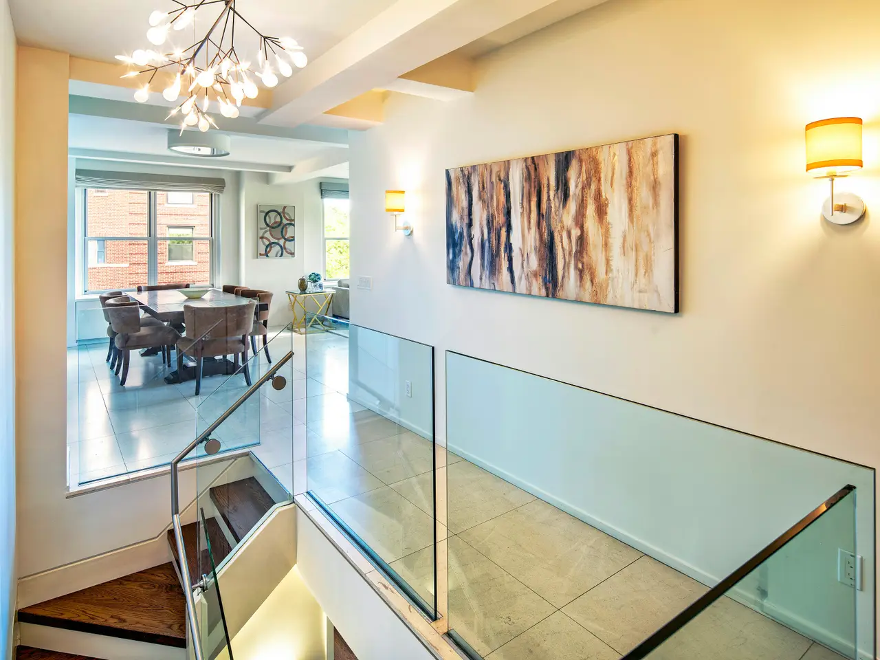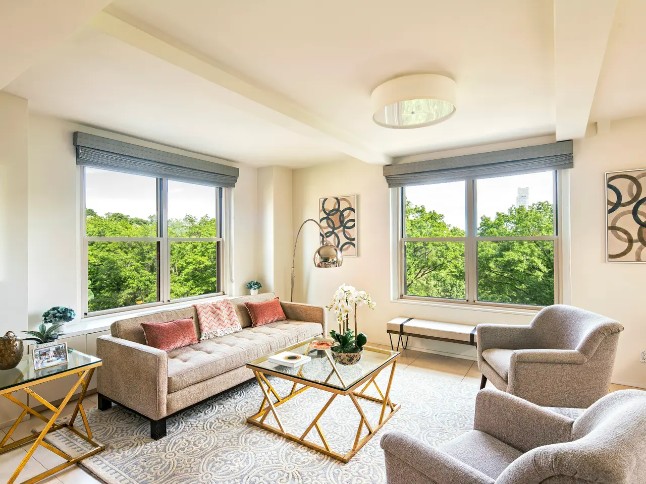 Direct Central Park VIEWS through 14 large windows in this approximately 2400 square foot, 4-bedroom, 3-bathroom duplex. Every inch of this home is flooded with natural light, as every room offers Park views! This sun-drenched corner duplex is a seamless combination of two "A'-lines, thoughtfully reimagined to create a spacious, "house-like" layout. Enter on the 6th floor to the open floorplan incorporating a Park facing corner living and dining room with an adjacent eat-in kitchen on the Park. Also, on this level is a gracious Park facing den or 4th bedroom, and full bathroom, making it an ideal private guest bedroom. The expansive kitchen has excellent storage via endless cabinets, top-of-the-line stainless steel appliances including Viking stove & Sub-zero refrigerator, and a large island/breakfast bar for casual dining while taking in the bucolic Central Park views! The expansive living and dining area boasts bright northern and eastern exposures, making it perfect for entertaining. Completing this level is a hidden washer/dryer and wet bar. Descend downstairs via a sleek floating glass staircase to a spacious landing with elevator access. The 5th floor has 3 generously sized bedrooms, an office nook, and 2 full bathrooms, including an en-suite bathroom for the primary suite. The expansive corner primary bedroom offers stunning Central Park views, built-in closets, a large dressing room with additional storage, and a spa-like, windowed bathroom. This luxurious bathroom features a large rain shower, heated floors, a double vanity, 3 mirrored medicine cabinets, and a separate water closet. The 2 additional bedrooms on this floor also face the Park and are well-appointed, each with large closets and sharing a windowed bathroom. This beautiful contemporary home is the best blend of clean lines and prewar charm, all with stunning views of Central Park and plenty of room to spread out! 410 Central Park West is a full-service building with 24-hour doorman, excellent live-in Super, storage (as available), gym ($20 per user per month), bike room and common laundry. 80 percent financing and pets are allowed! Live directly across the street from Central Park, moments away from shopping at Columbus Square and transportation.