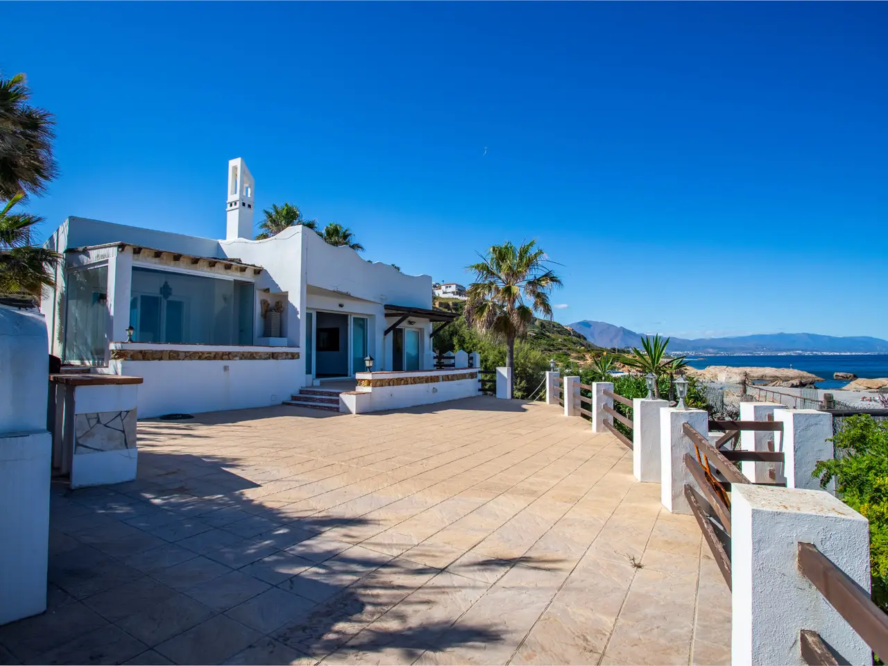 This stunning villa is located in Chullera Baja, built on a rock on the beachfront, it is a unique and magical place to live. With direct access to the beach, this property offers incredible panoramic views of the Mediterranean Sea, the Rock of Gibraltar, and the African coast. With a plot of 1,307 square meters, this villa is situated in a privileged environment. Imagine waking up every day listening to the waves of the sea and feeling the gentle breeze of the Mediterranean. The villa has a private pool and a spacious private garden, where you can enjoy the Mediterranean climate and moments of relaxation. It also has a barbecue area, perfect for enjoying outdoor meals with family and friends while enjoying the beach views. Inside, the villa offers a spacious living room with a fireplace and large windows overlooking the sea. The kitchen is fully equipped and has all the necessary appliances. The three bedrooms of the villa have en-suite bathrooms, providing privacy and comfort to its occupants. The villa also has a rooftop solarium, where you can enjoy panoramic views of the sea and beautiful sunrises on the beachfront. It also has a wine cellar, perfect for wine lovers, and a game room with a toilet next to the pool. With a southeast orientation, this villa enjoys natural light throughout the day. It is also close to golf courses, shops, restaurants, and the harbor. The surrounding environment of this villa is a unique opportunity to live surrounded by nature and tranquility. Don't miss the opportunity to live in this incredible luxury villa by the sea and book a visit with us.