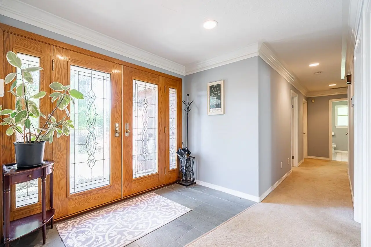RARE & AMAZING Opportunity to Own this RIVER FRONT Property in Town! You’ll Fall in Love The moment you drive through the Gate of this Executive Style River Front Home. Massive Updated 3485 Sqft 5 Bdrms, 3 Baths, All One Level Custom Designed Home w/ 4 CARS HEATED GARAGE on almost 2.5 Acres of Landscaped Yard & Forest Retreat, Truly an OUTDOOR OASIS & INDOOR DREAM! Huge, Bright Chef’s Kitchen w/Large Ctr Island, Quartz Countertop & Gas Cooktop, Built-in Oven & Microwave, Tons of Cabinets. Massive Master Bd w/High Vaulted Ceiling, A Sitting Room w/Dual Sided Fireplace, Big Walkin Clst + Huge Spa-liked Ensuite w/Deep Jetted Tub & Dble Massage Showers. Relax in Nature in Your Own Massive Landscaped Bkyd, 2 Big Gazebos, Fire Pit, Outdr BBQ, Dining & Entertaining Areas OVERLOOKING THE RIVER.