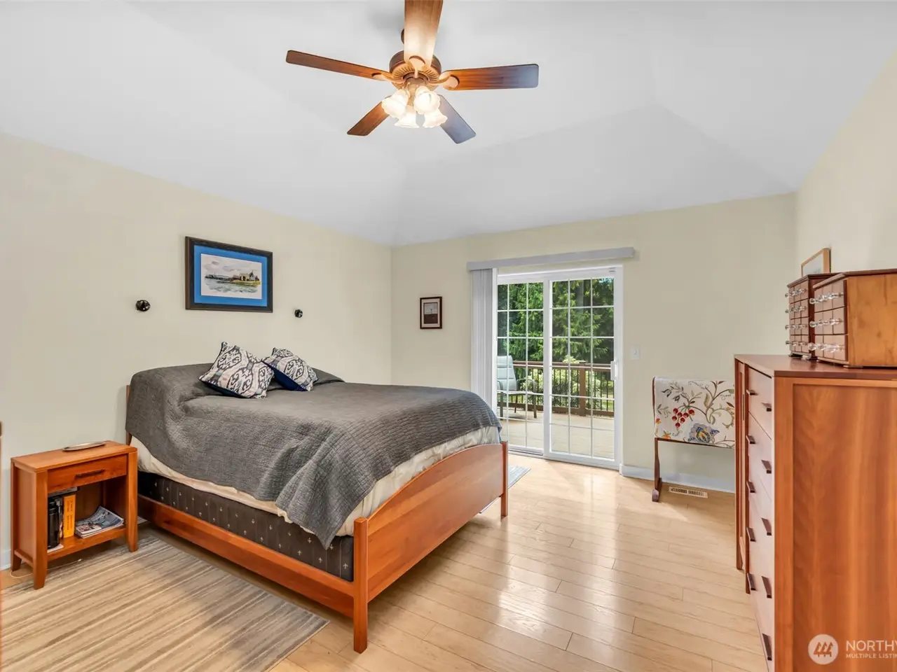 Stunning custom home on a quiet private road, set on over an acre! This four bed, 2.5 bath home with office and den offers 2,450 square feet of well-designed living space. The chef's kitchen opens to a spacious living room with a river rock fireplace and abundant natural light. Main floor primary suite features a walk-in closet, 5-piece bath, and deck access--perfect for morning coffee. Upstairs you'll find three additional bedrooms (1 non-conforming) and a full bath. Enjoy the expansive deck and fenced backyard, ideal for entertaining, gardening, or pets. Air conditioning, three-car garage, RV/boat parking, and easy access to Highway 18! Close to everything but feels miles away.