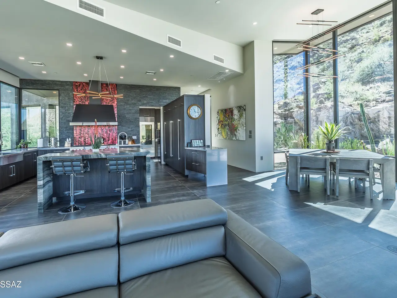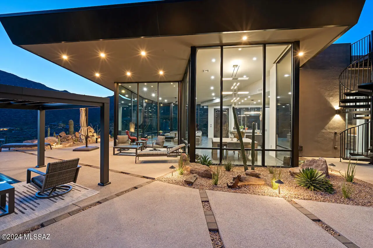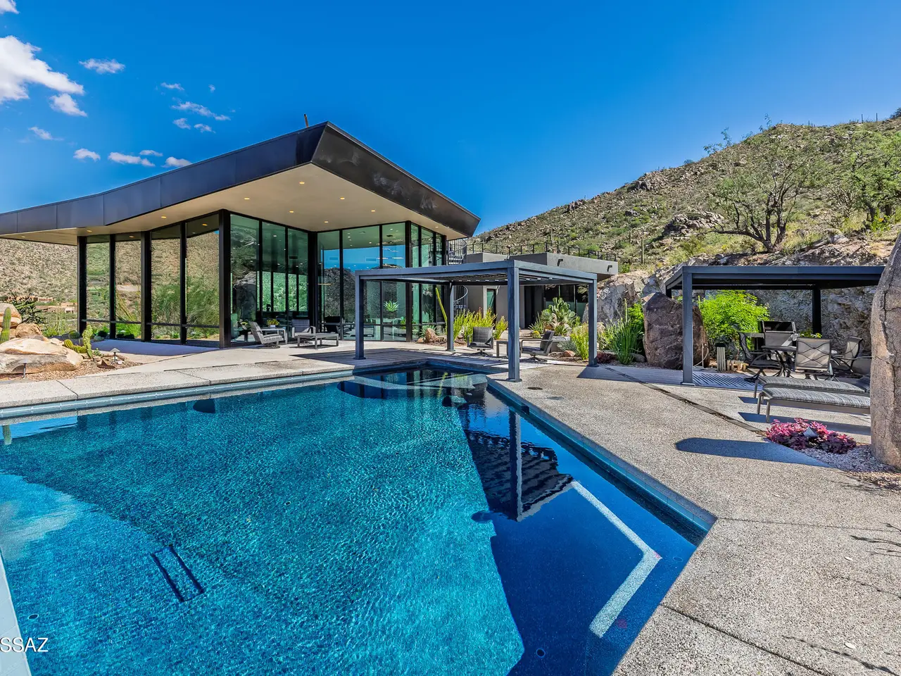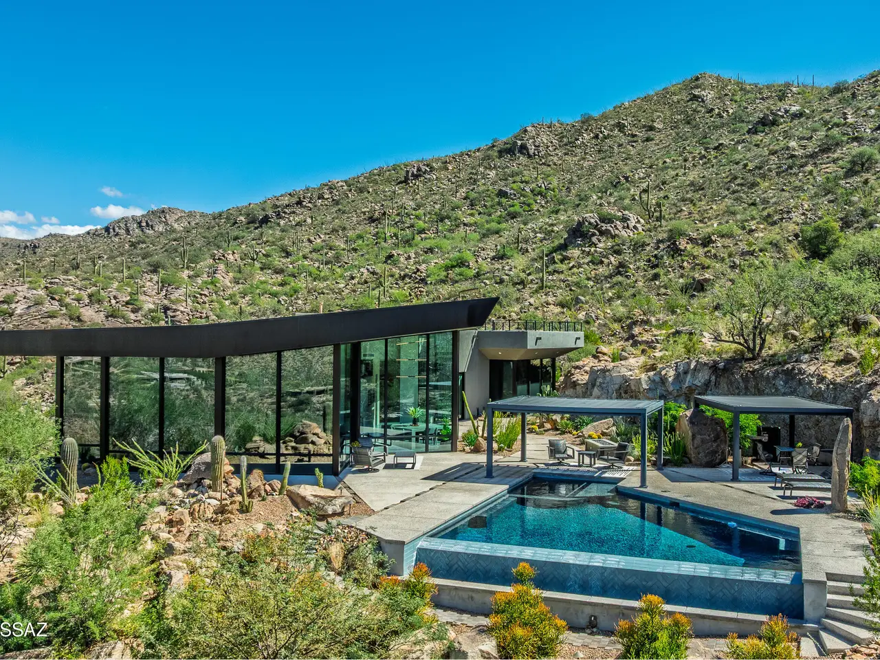 Come visit this custom Desert Modern residence within the man-gated community of Canyon Pass at Dove Mountain. Situated on a gentle rise above other neighboring homesites, this 9+ acre residence is positioned within large Sonoran Desert rock outcroppings providing unobstructed views in all directions. The 'open floor plan' was designed by Mark Soloway w/high ceilings + oversized floor to ceiling glass panes. The residence provides unlimited views yet creates a feeling of privacy and exceptional solitude. High end finishes throughout this custom masterpiece include Subzero/Wolf appliances, Lutron shades and comes fully furnished including a baby grand piano, artwork and electronic accessories. A stylish glass pneumatic elevator provides access to and from the lower level which contains