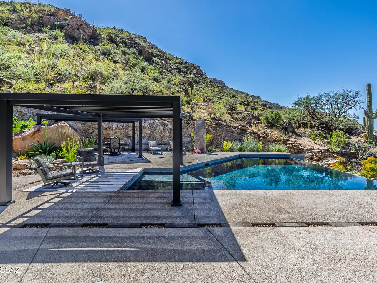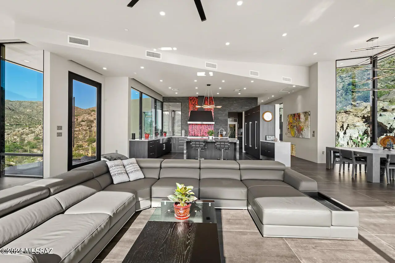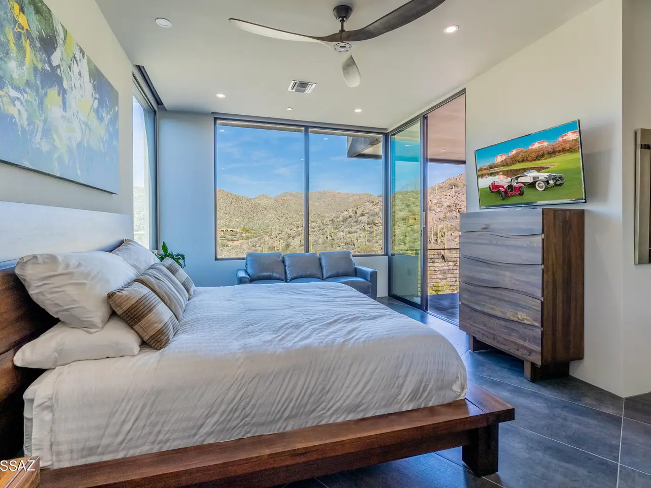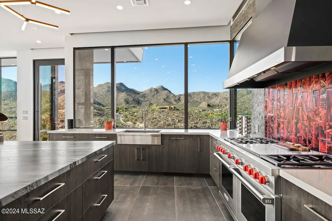 Come visit this custom Desert Modern residence within the man-gated community of Canyon Pass at Dove Mountain. Situated on a gentle rise above other neighboring homesites, this 9+ acre residence is positioned within large Sonoran Desert rock outcroppings providing unobstructed views in all directions. The 'open floor plan' was designed by Mark Soloway w/high ceilings + oversized floor to ceiling glass panes. The residence provides unlimited views yet creates a feeling of privacy and exceptional solitude. High end finishes throughout this custom masterpiece include Subzero/Wolf appliances, Lutron shades and comes fully furnished including a baby grand piano, artwork and electronic accessories. A stylish glass pneumatic elevator provides access to and from the lower level which contains
