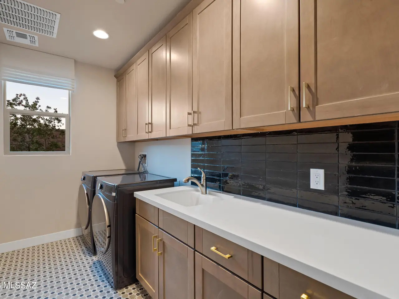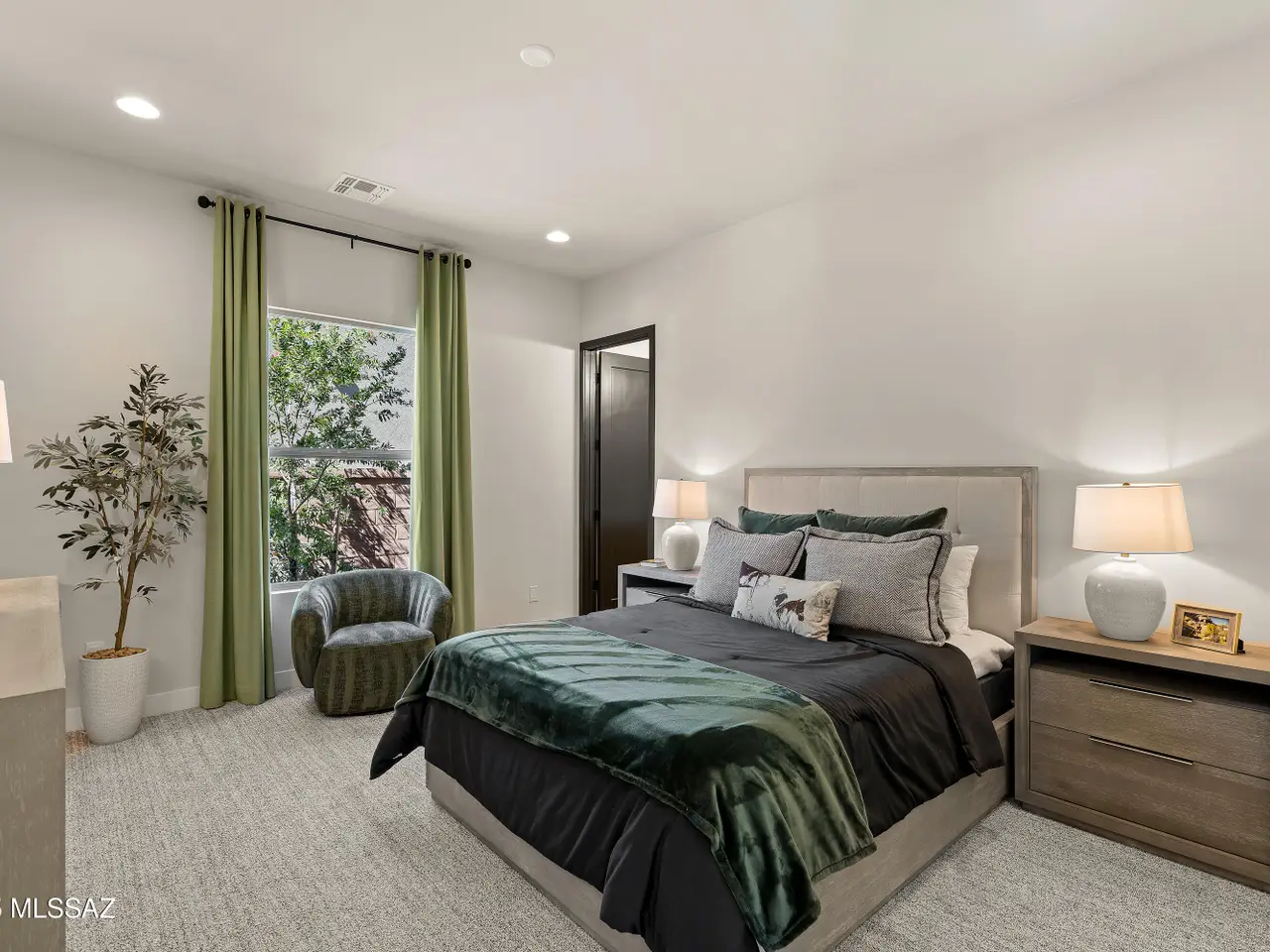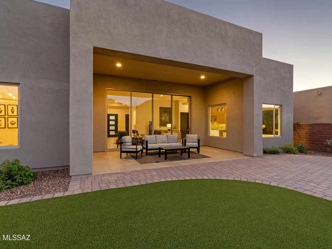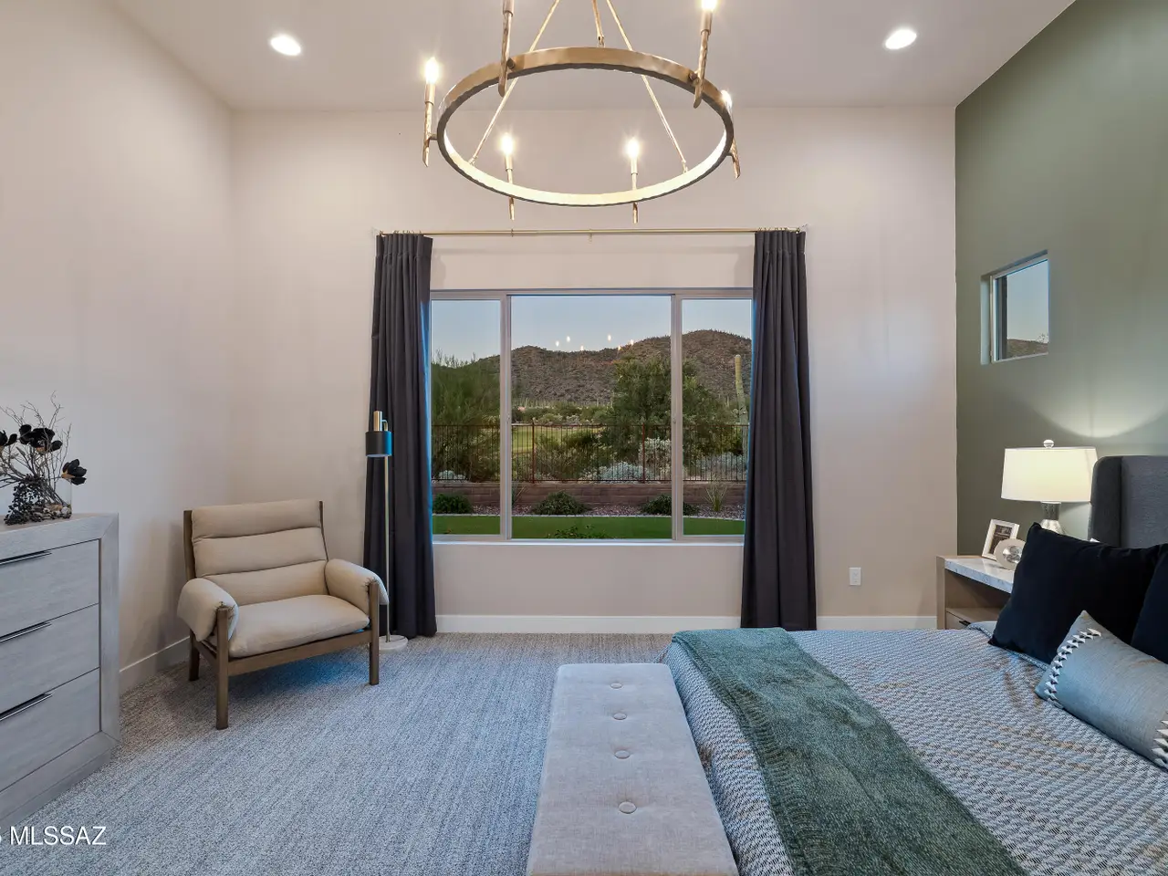 Located in the gated community of Boulder Bridge Pass, this former Acacia model by Fairfield Homes offers luxury living on the Dove Mountain Golf Course. The home features three spacious bedrooms, each with its own en suite bath, plus a dedicated office and a versatile teen retreat. The elegant great room centers around a gorgeous fireplace, soaring 12-foot ceilings, and a multi-panel sliding door that opens to a private covered patio. The gourmet kitchen boasts quartz countertops, a large island, and premium stainless steel appliances, along with a generous pantry featuring walk-in storage. The primary suite captures breathtaking mountain and golf course views and includes a spa-inspired bath with high-end finishes. The modern exterior with stone accents complements the Tortolita Mountain backdrop, while the low-maintenance yard offers turf and a built-in barbecue perfect for outdoor entertaining. Additional highlights include a three-car garage and designer finishes throughout.