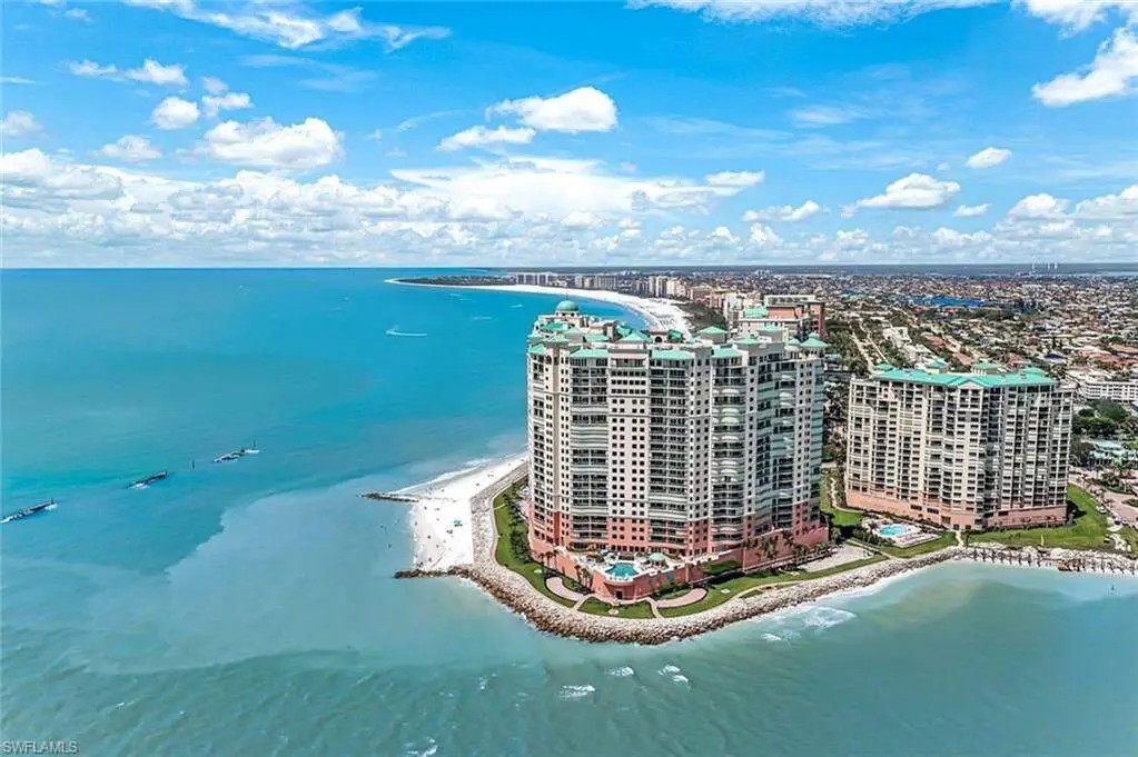 Perched above the shimmering Gulf waters, this exceptional 3600 a/c sq ft, 3-bedroom, 3.5-bath residence offers expansive living and family room areas, a spacious den, and soaring 11-foot ceilings-available only in select units. Floor-to-ceiling impact sliders and windows frame the breathtaking panoramic views of the Gulf of America, the 10,000 Islands, and Marco Island. Designed for both comfort and elegance, this home features a rare private 2-car air conditioned garage located directly under the building-an uncommon and highly sought-after convenience. With luxurious open living spaces and sweeping water views, this residence is a true coastal retreat.