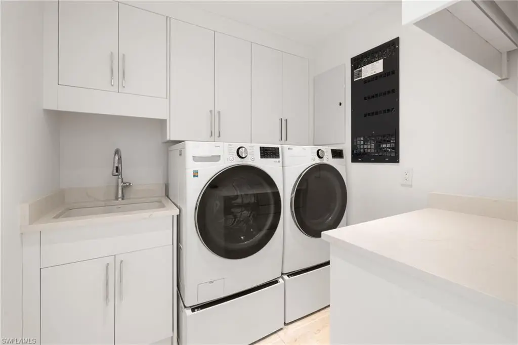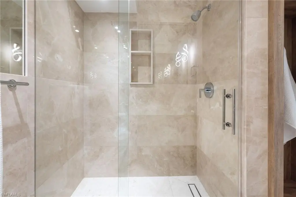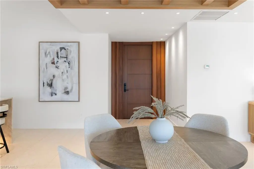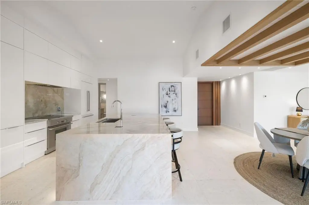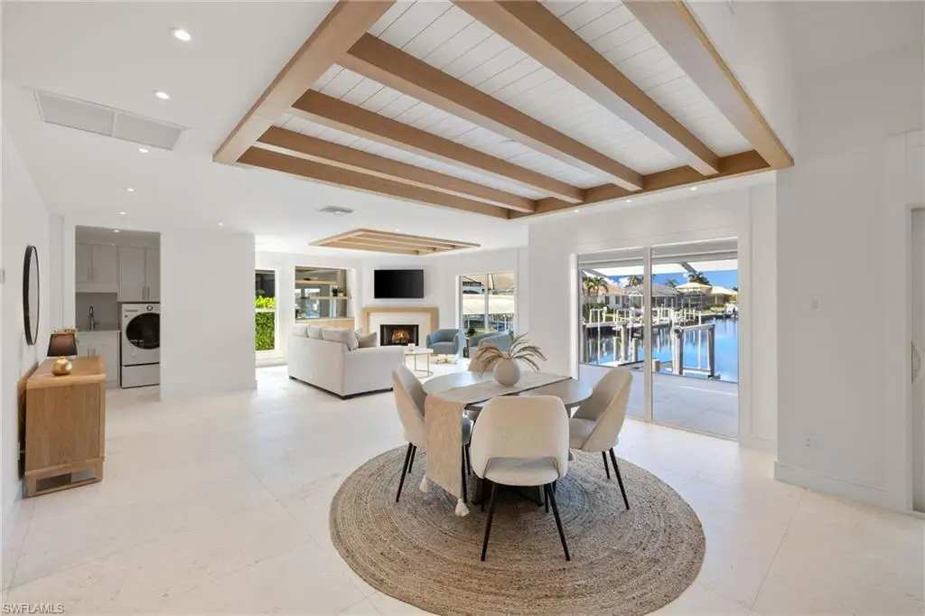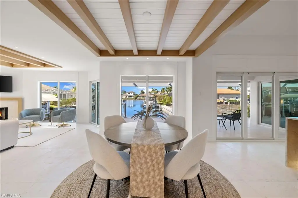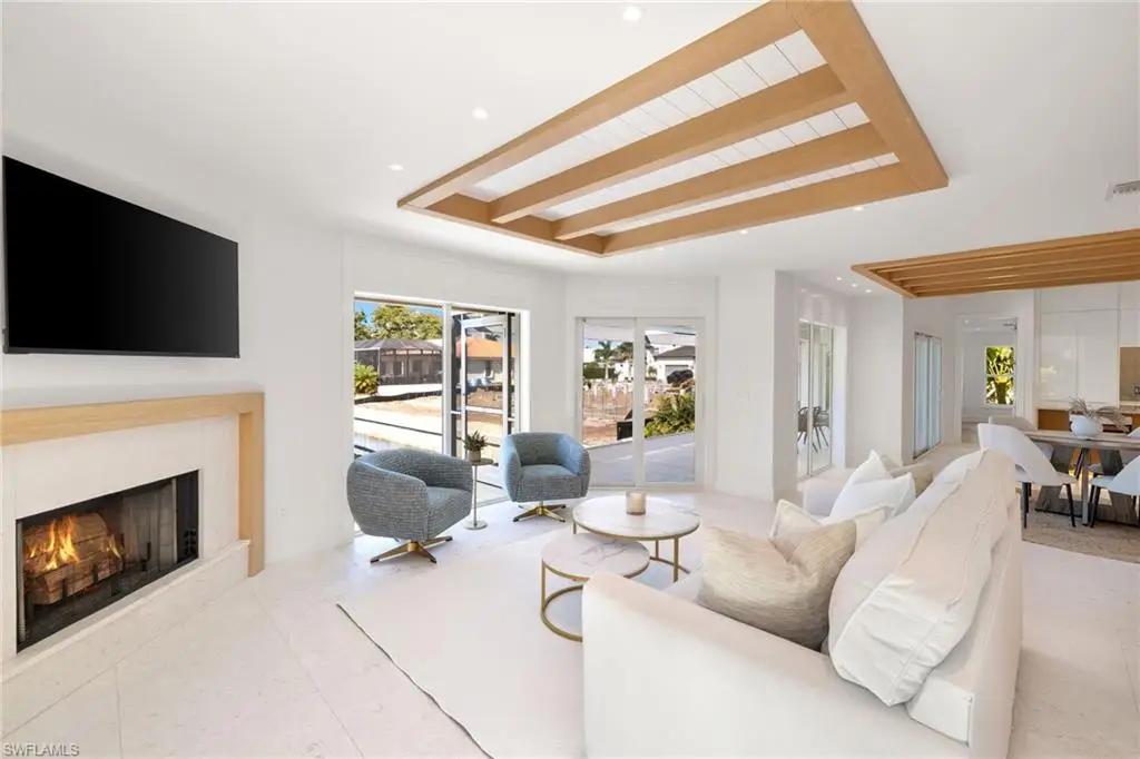 Completely renovated in 2024, this gulf-access residence at 72 N Barfield blends fresh modern design with effortless Marco Island boating. Set on an oversized 0.34-acre corner lot, the single-level home offers 3 bedrooms, 2 baths and approximately 1,727 square feet of light-filled living space. An open great room with creamy marble floors, wood-beam ceilings and a sleek fireplace draws your eye to wide canal views through walls of impact-rated glass. The magazine-worthy kitchen showcases custom cabinetry, a dramatic Taj Mahal quartzite waterfall island, integrated appliances and generous bar seating that keeps everyone connected. The serene primary suite lives like a private retreat with a custom walk-in closet and spa bath featuring an expansive walk-in shower, floating vanity and designer finishes. Two guest rooms share an equally refined bath for visiting family and friends. Outdoors, sliders open to newly completed living and dining areas with both screened and open-air spaces that step down to a new dock and liftùjust a short boat ride to open water. Recent permitted work includes full interior and exterior remodels, decking/screen enclosure, site improvements, dock and a newer flat tile roof, delivering a truly turnkey waterfront home with peace of mind.