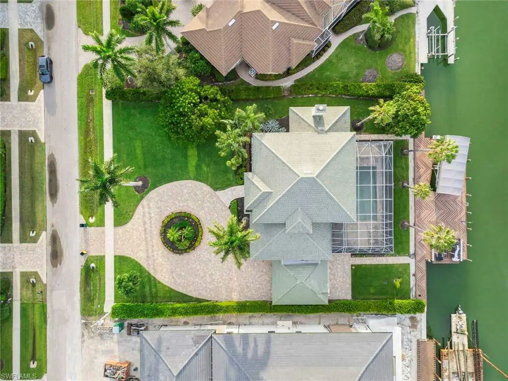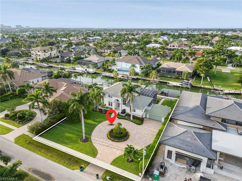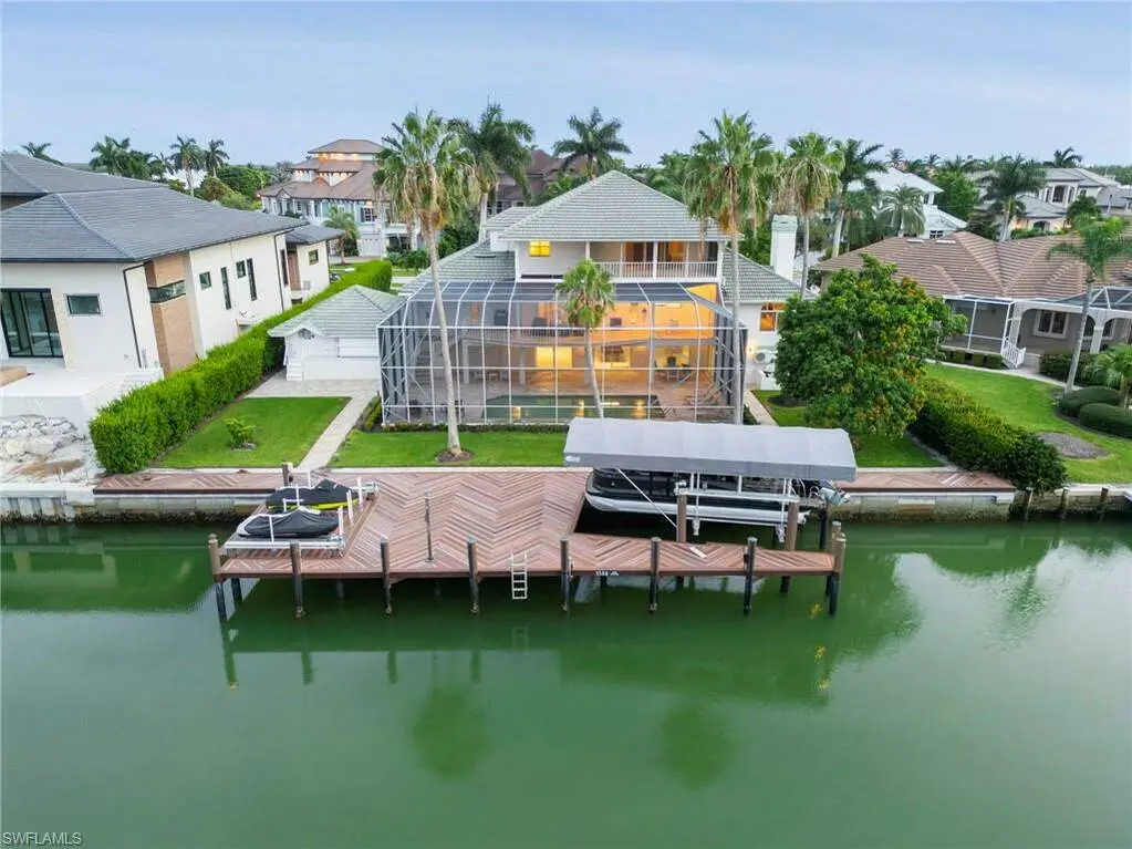 Located in the exclusive Marco Island Estates, this stunning four bedroom/4.5 bath two-story home situated less than 800 feet to open water, providing direct deep-water access to the Gulf of Mexico and the 10,000 Islands fishing paradise. Each of the four spacious bedrooms features an ensuite bathroom, while a private elevator ensures easy access to all floors. The home's heart is the newly remodeled kitchen, equipped with custom cabinets, a gas stove, and an inviting eat-in area that flows into the family room, where a cozy gas fireplace sets the perfect atmosphere. Step outside to your private backyard oasis, complete with a gas-heated pool and a breathtaking composite dock featuring a 12,000-pound lift, three-jet ski platform, waterway canopy, and a brand new seawall (2021). A pontoon boat and two Sea-Doo jet skis are included, making this the ultimate waterfront lifestyle. Other features include an oversized garage/workshop, a basement with ample storage and a bonus game room, hurricane-impact windows and doors, a hidden safe, drop-down TV in the master suite, Wi-Fi-enabled garage doors, a 1,000-gallon buried LP tank with Wi-Fi monitoring, and a Ring camera system. Turnkey and ready to move in, this property is an incredible investment, surrounded by magnificent homes on one of the best streets in the Estates.